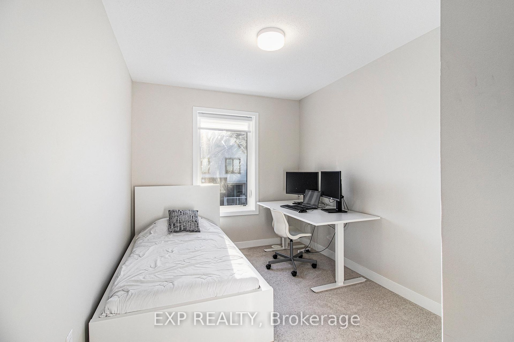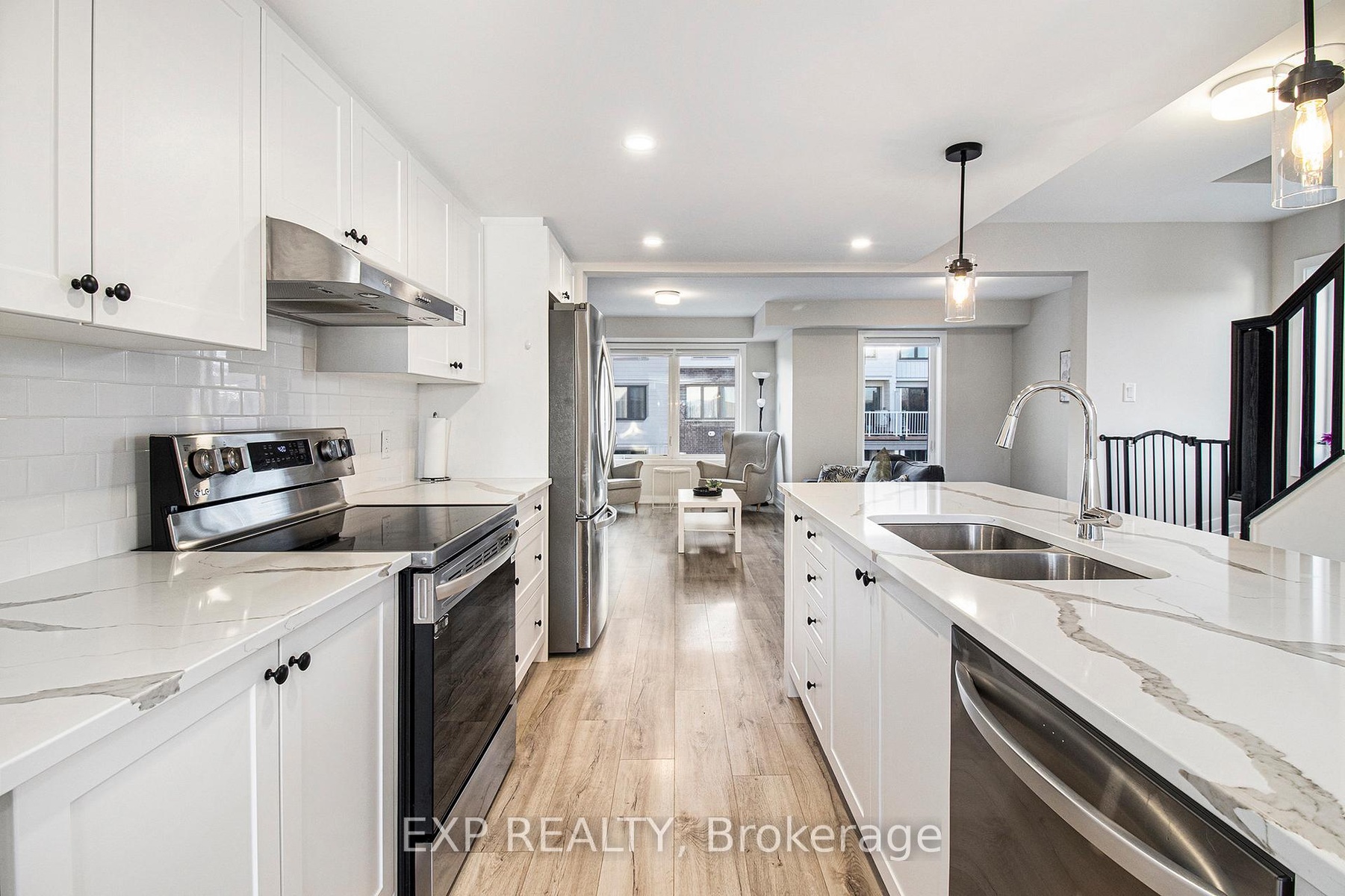 This stunning 2024 Mattamy-built 3-storey Bedford end-unit townhome offers the perfect combination of modern design, comfort, and functionality in a highly desirable west Ottawa location. Over $42.000 design and structural upgrades (such as guest suite). Situated on a premium corner lot, this home stands out with windows on three sides, creating an exceptionally bright and airy living space filled with natural light throughout the day. The ground floor features a versatile guest suite complete with a full bathroom and patio door access to the backyard-a perfect retreat for guests, in-laws, or use as a private home office. The second level showcases an inviting open-concept living and dining area with southwest exposure, providing warm afternoon sunlight and views of a nearby historic building.The modern kitchen is beautifully appointed with quartz countertops, pots and pans drawers, and upgraded cabinetry. Recessed pot lights and a clean white palette give the space a bright, elegant, and contemporary feel. A smart thermostat adds to the home's comfort and energy efficiency.The third floor features a spacious primary bedroom and a private ensuite bathroom, offering a quiet space to unwind. Additional bedrooms are well-sized and designed to maximize comfort and privacy. A convenient laundry area is also located on the upper floor for everyday ease. With two parking spaces (one garage and one exterior driveway), this home offers both practicality and flexibility. Built in 2024, it comes with the remainder of the Tarion Warranty, ensuring peace of mind for years to come.Set on a quiet street in a family-friendly and growing community, residents will enjoy nearby walking paths, green spaces, and parks ideal for outdoor activities. Located just minutes from Highway 417, public transit, top-rated schools, Centrum Shopping Centre, Canadian Tire Centre, and Tanger Outlets, this home combines modern living with exceptional convenience.