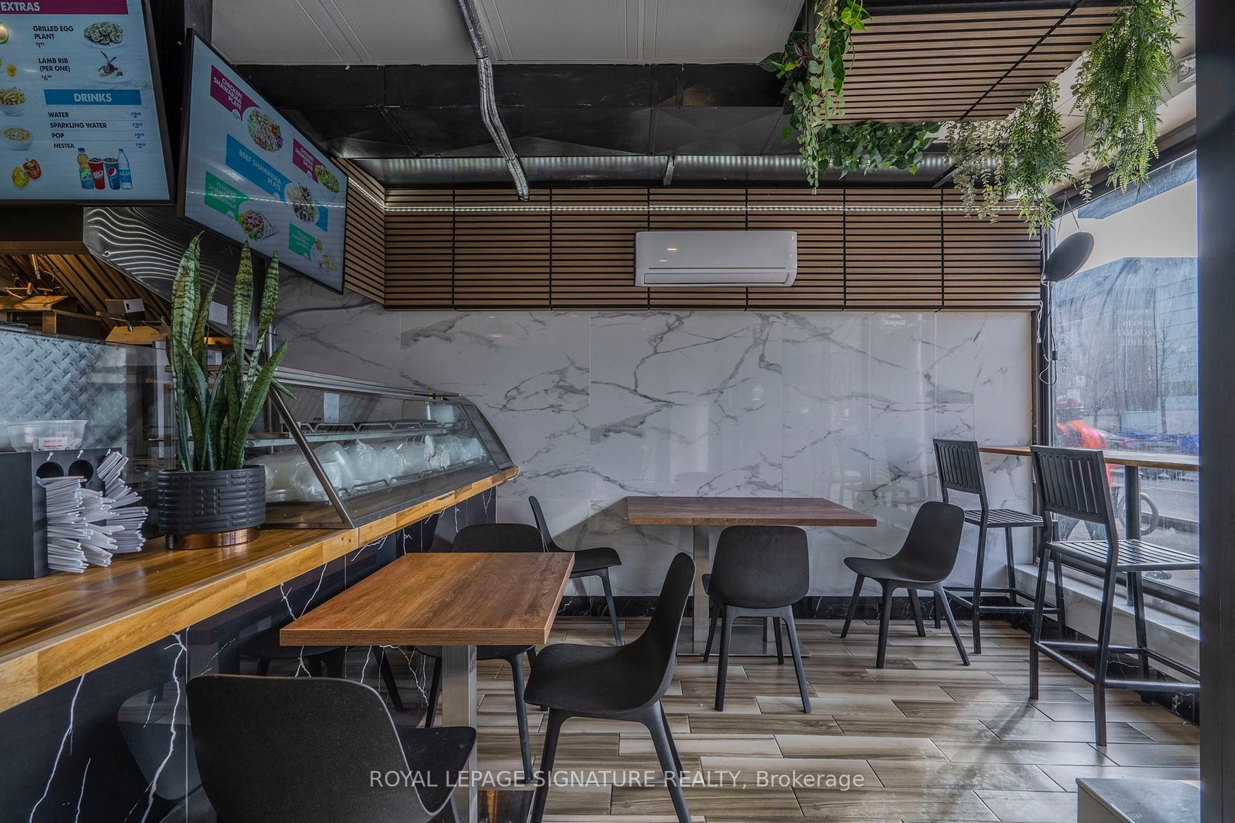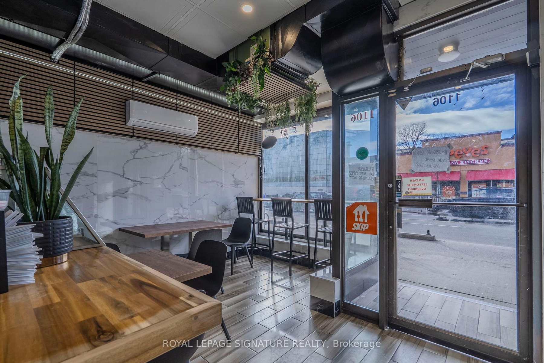 Turnkey Fully Fixtured Restaurant in Prime Bloorcourt Location - 1106 Bloor Street West,Toronto Step into a fully operational restaurant in the dynamic heart of Toronto's Bloorcourt Neighborhood. Located at 1106 Bloor Street West, this well-established turnkey opportunity isideal for anyone looking to capitalize on the area's vibrant foot traffic, eclectic food scene,and loyal local customer base.Currently outfitted for a high-performing shawarma operation, the space features a fully equipped commercial kitchen with a powerful exhaust hood, refrigeration units, multiple prep stations, and a modern front-service counter designed for efficient service and customer engagement. The restaurant's open-concept layout offers a warm and inviting environment, ideal for both quick bites and casual dine-in experiences. Though currently operating as a shawarma restaurant, the adaptable layout and comprehensive infrastructure make this space equally well-suited for a variety of culinary concepts-including Indian street food, Korean BBQ,Vietnamese pho, Mexican taqueria, or a gourmet burger joint.The open-concept interior allows for flexible reconfiguration to match your brand identity, andthe location benefits from constant foot traffic due to its proximity to the subway,residential zones, and local businesses. Whether you're an experienced restaurateur or a savvy entrepreneur, this space offers the perfect foundation to bring your culinary vision to life in one of Toronto's most eclectic and food-savvy districts.