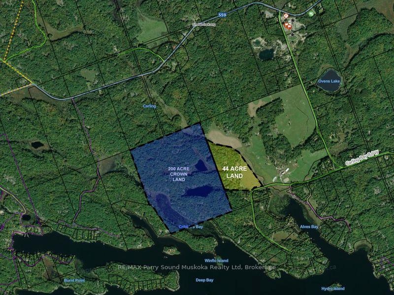 ABSOLUTELY SPECTACULAR RARE ACREAGE FIND! 44+ Acres, Large portion of Private Lake to enjoy, Private driveway installed, Private cleared area ready to build. Or choose another excellent spot near the lake to Create your Dream Build. 400-amp hydro service already installed with two exterior panels, each positioned at potential build locations - ideal for future home, shop or guest cottage setup. Abutting 200 acres of Crown Land for unmatched privacy and endless exploring. Private hiking / ATV trails, Stunning views of the natural landscape, Mins to Georgian Bay for boating & endless exploring. This is an all-season mecca; Snowmobile trails, Cross country ski, Experience your own Private Retreat Location just 20 mins to Parry Sound. Must be seen to be appreciated!
