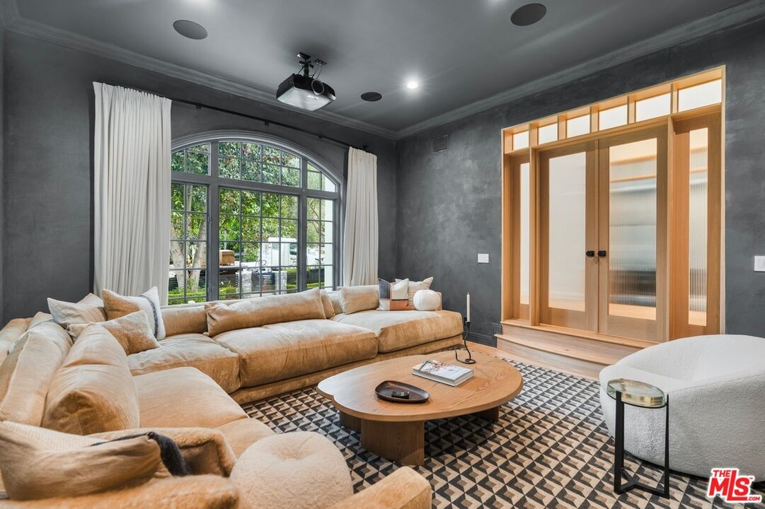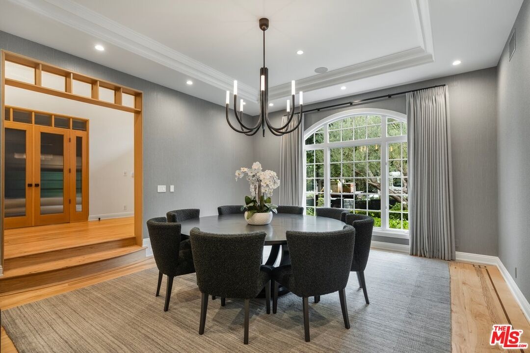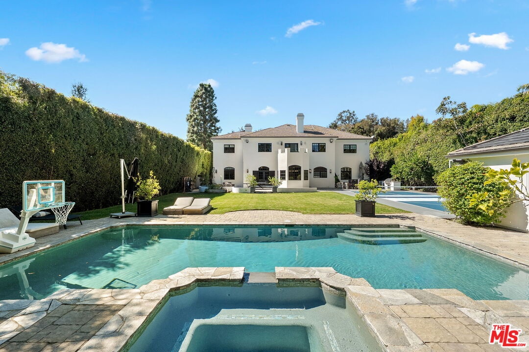 Located on one of Brentwood's most desirable streets, Homewood Road, this newly reimagined estate combines refined design with relaxed California living. Extensively renovated by the current owner, the residence offers approximately 6,800 sq. ft. of living space on an expansive 18,359 sq. ft. flat lot. A grand double-door entry opens to a light-filled foyer with soaring 23-ft ceilings, setting the tone for the home's bright and open layout. The main level features a formal dining room with garden views, a dedicated theater, and a stunning great room where a double-island chef's kitchen flows seamlessly to the family room and outdoors. The kitchen is outfitted with custom wood cabinetry, marble countertops, professional-grade appliances, and a walk-in pantry. A breakfast nook surrounded by windows overlooks the pool and gardens. Two spacious bedrooms and a full laundry room complete the main floor. Upstairs are four en-suite bedrooms, each with walk-in closets, including a luxurious primary suite with private sitting area, office, and dual walk-in closetsone currently used as a fitness studio. The resort-style backyard offers a sparkling pool and spa, multiple lounging areas, lush landscaping, and a generous lawn. Additional highlights include a private pickleball court and a fully permitted two-bedroom, one-bath guest house with its own laundry. Situated within the Kenter Canyon Elementary district and surrounded by Brentwood's finest estates, this exceptional property embodies timeless elegance, modern comfort, and an desirable place to call home.