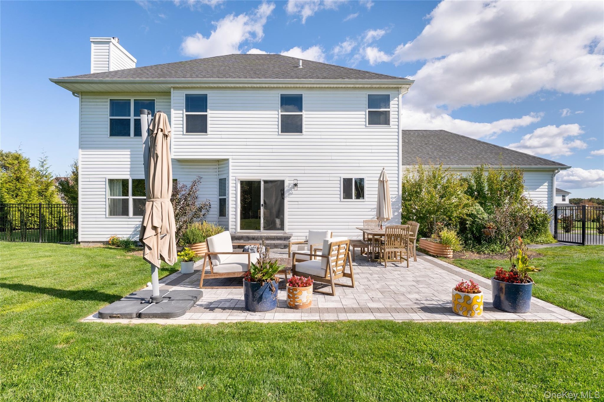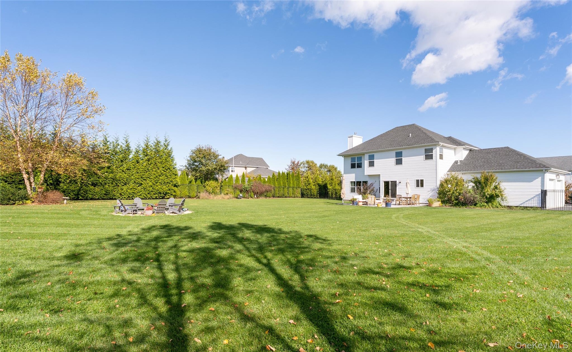 Stunning 2400 sq ft Jamesport model set on a beautifully landscaped .71-acre lot in a desirable North Fork location close to beaches, award-winning vineyards, farms, dining, shopping, and golf. Built in 2017 and offered for the first time, this home blends timeless design with modern comfort. Step inside to find gleaming hardwood floors, soaring ceilings, and an abundance of natural light. A gracious two-story foyer opens to the formal living and dining rooms, adorned with detailed moldings, perfect for entertaining. The family room features a gas fireplace and flows seamlessly into an open, eat-in kitchen showcasing white cabinetry, quartz countertops, a tiled backsplash, stainless-steel appliances, and a convenient breakfast bar. Additional main-level highlights include a pantry, first-floor laundry room, powder room, and interior access to the two-car garage.