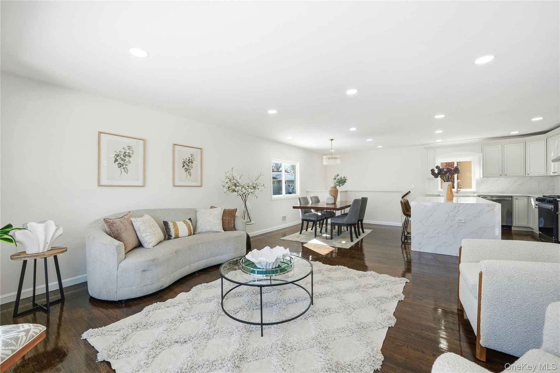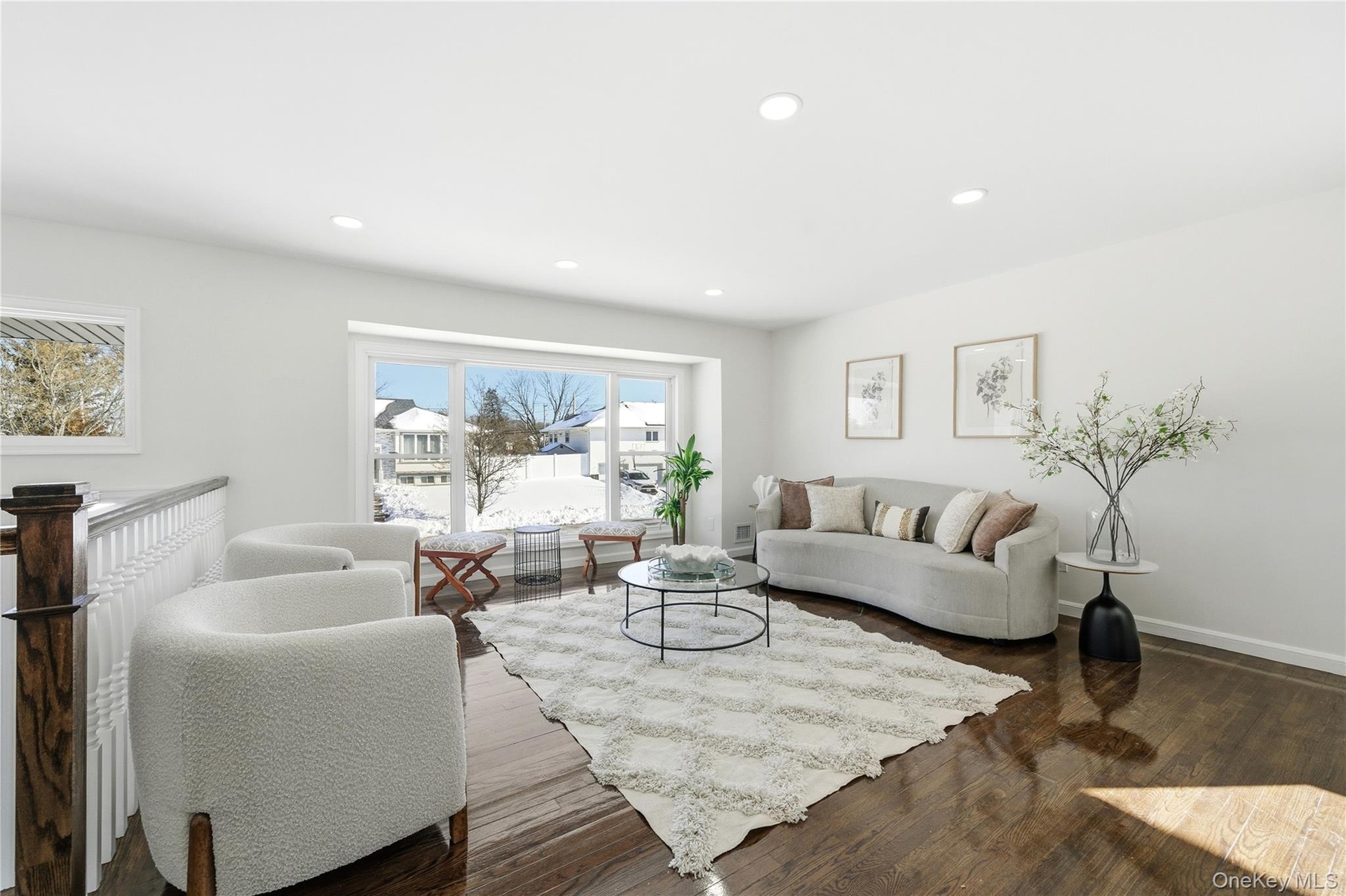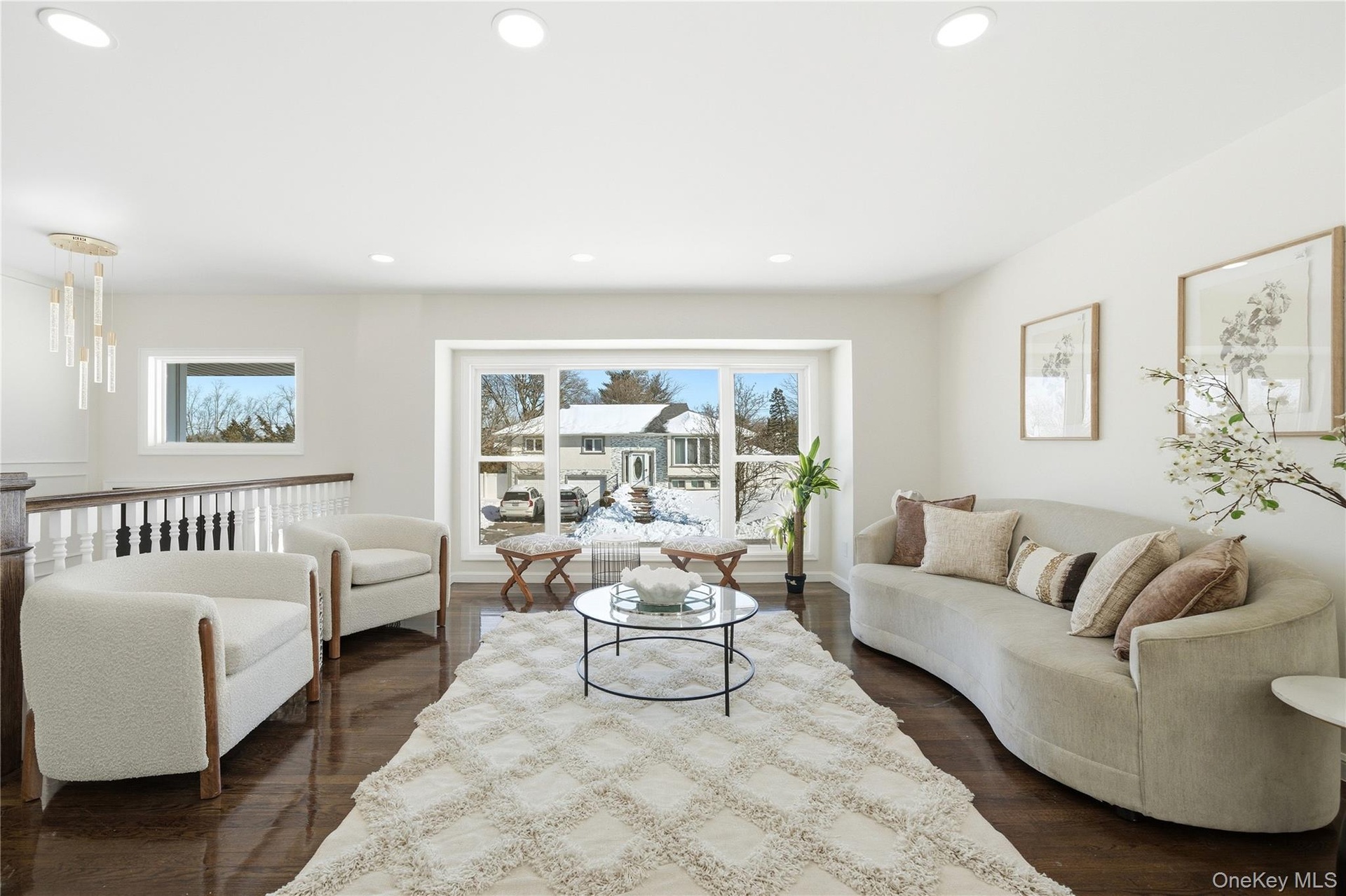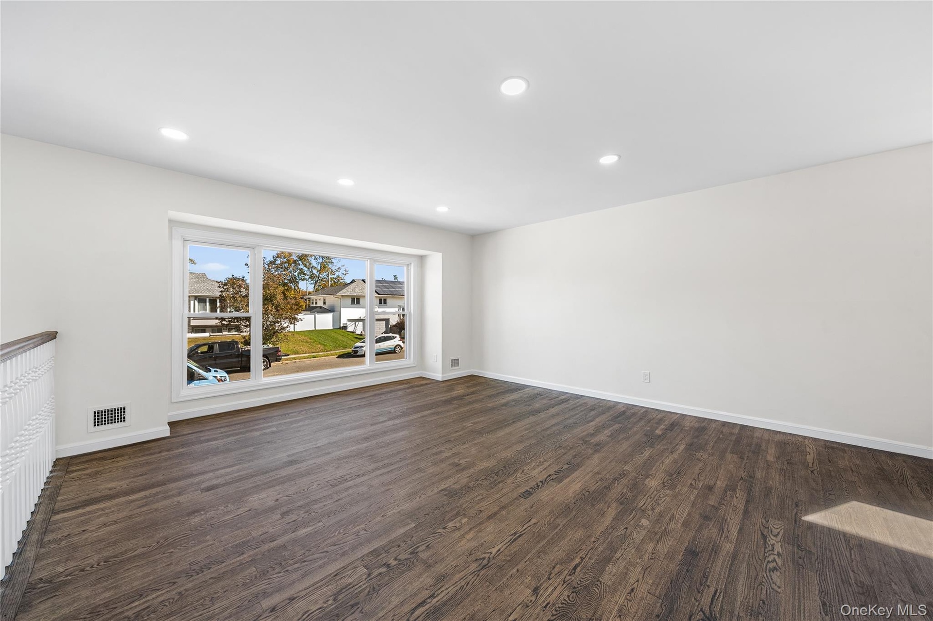 - Unfurnished living room featuring recessed lighting and dark wood-style floors