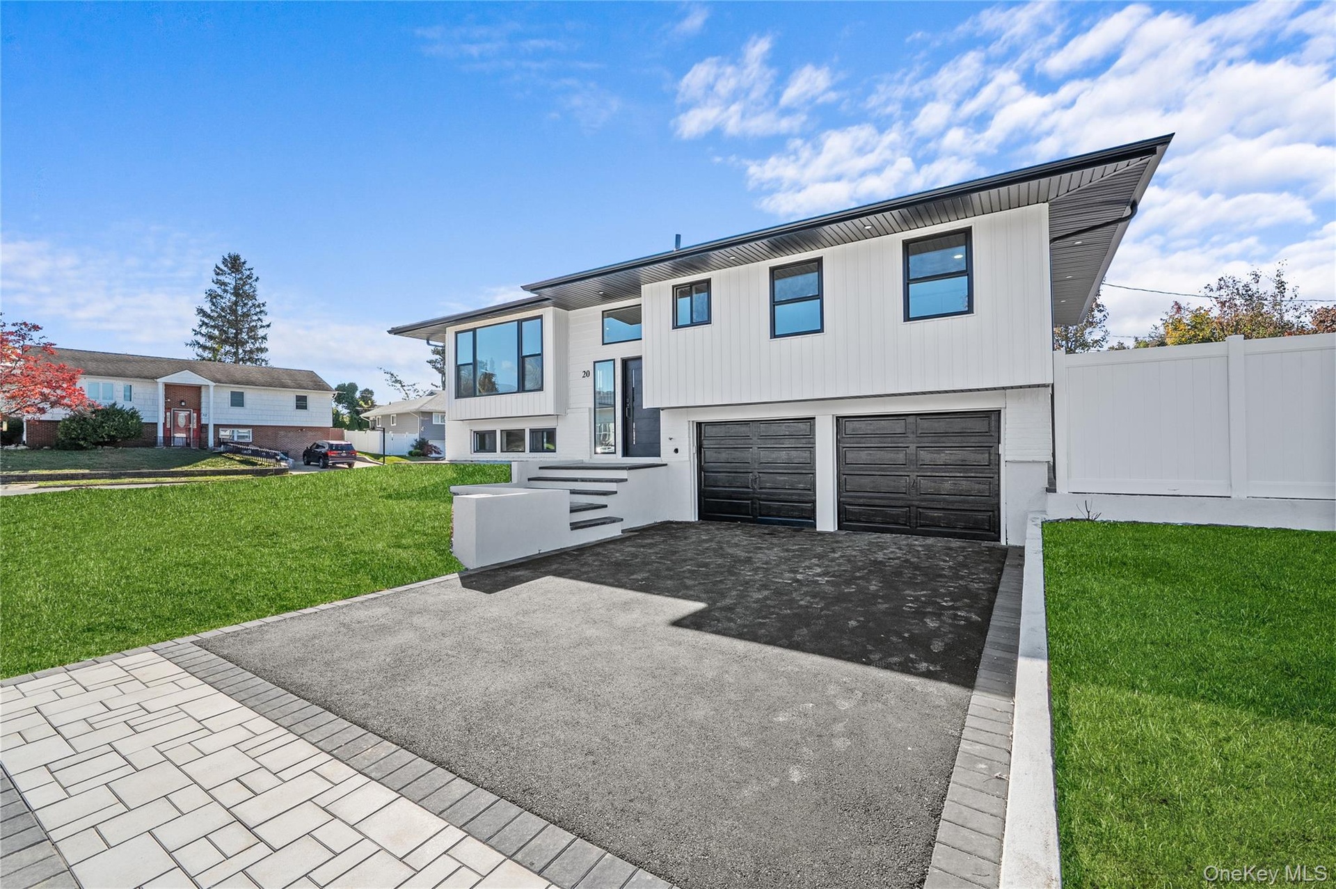Step into contemporary elegance with this stunning modern high ranch that perfectly blends style, comfort, and functionality. Featuring four spacious bedrooms, two designer bathrooms, and a two-car garage, this home offers the perfect retreat for today’s modern lifestyle.