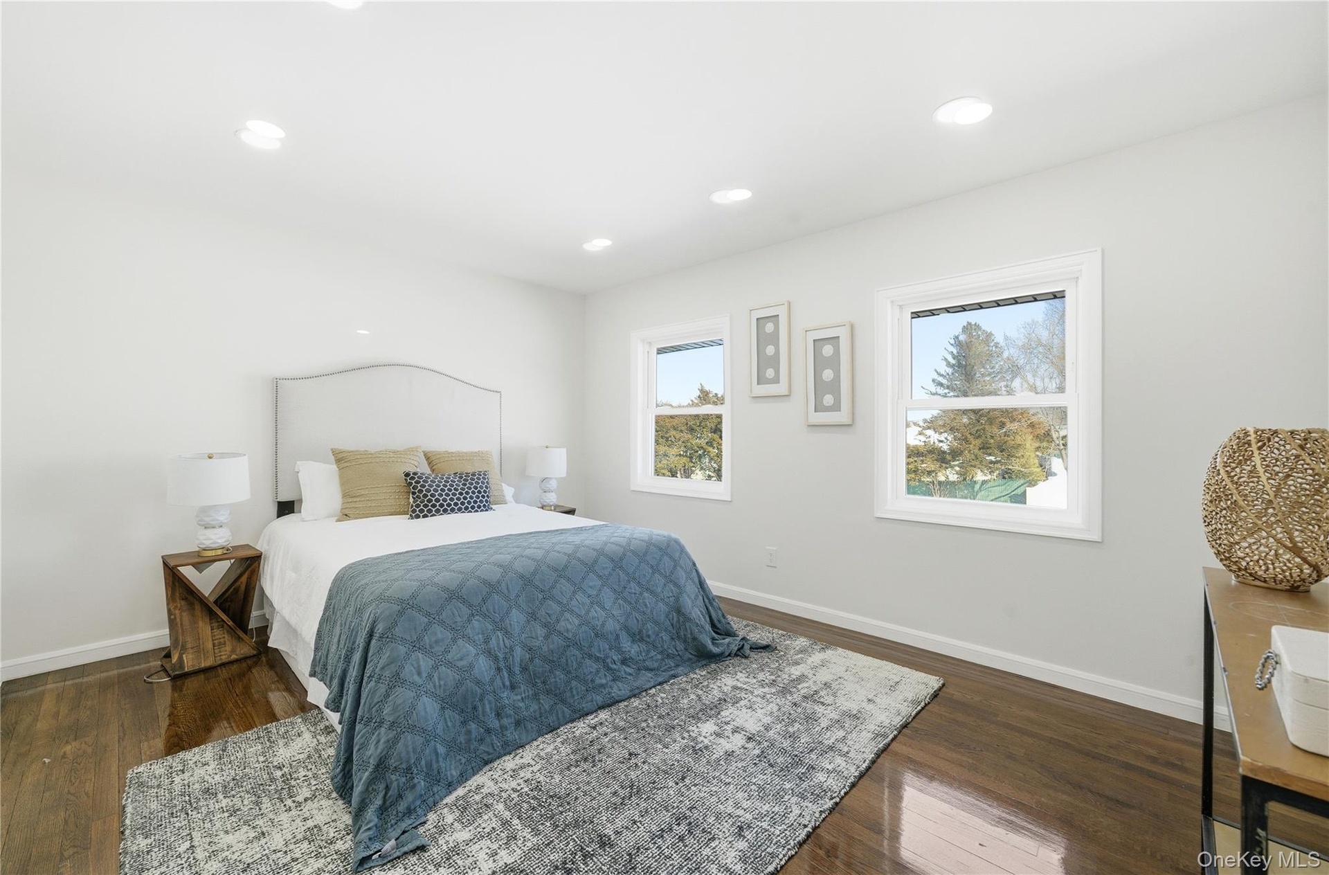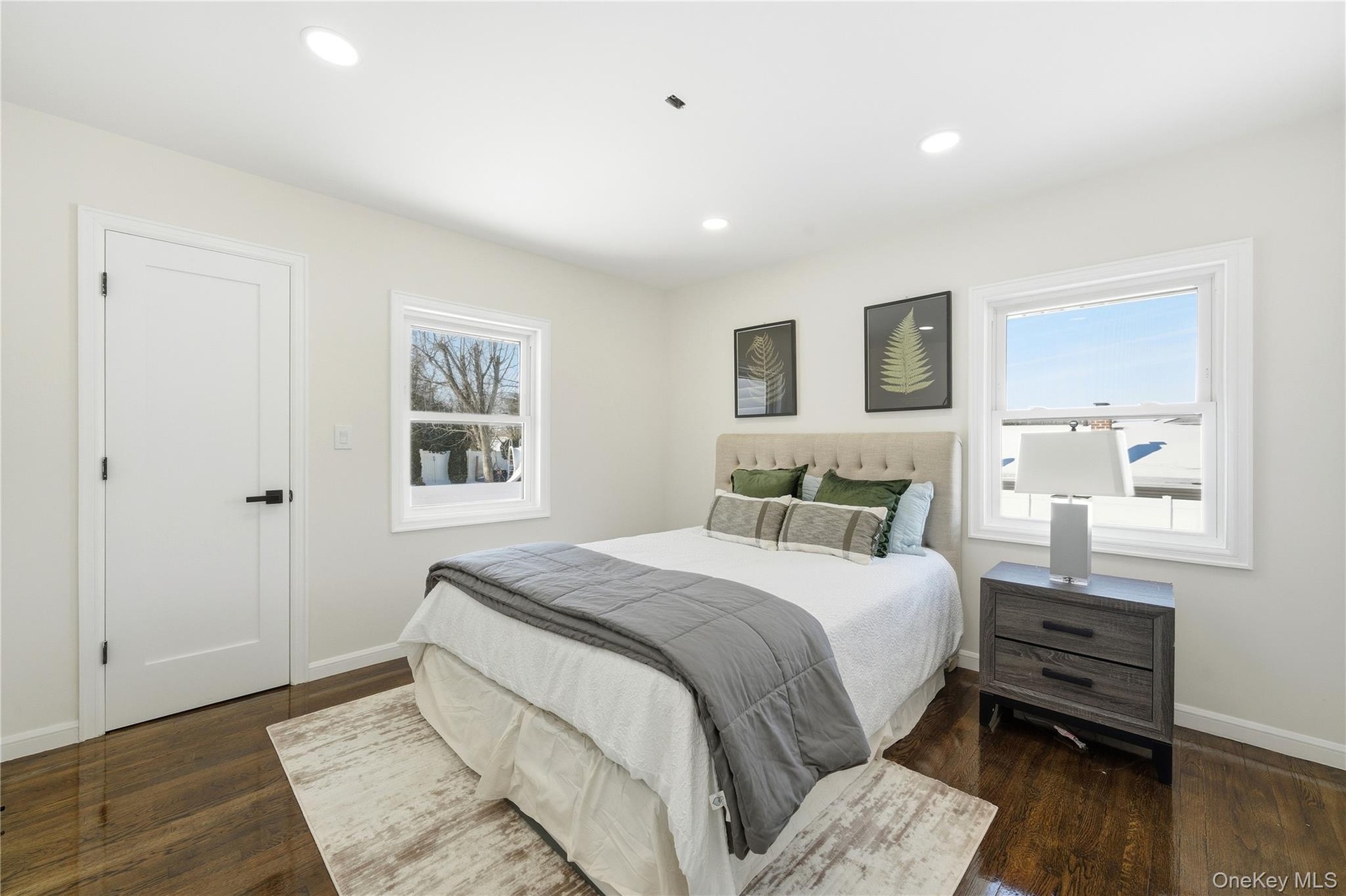 - Unfurnished bedroom featuring recessed lighting, dark wood-style floors, and a closet