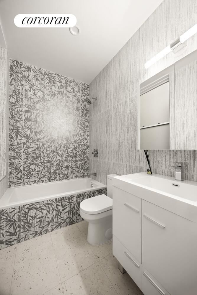 Each bathroom offers its own distinctive spa-like experience-one featuring a deep soaking tub framed by designer tile accents, the other showcasing a sleek glass-enclosed rain shower and modern vanity-providing thoughtfully varied layouts to suit different moods and moments.