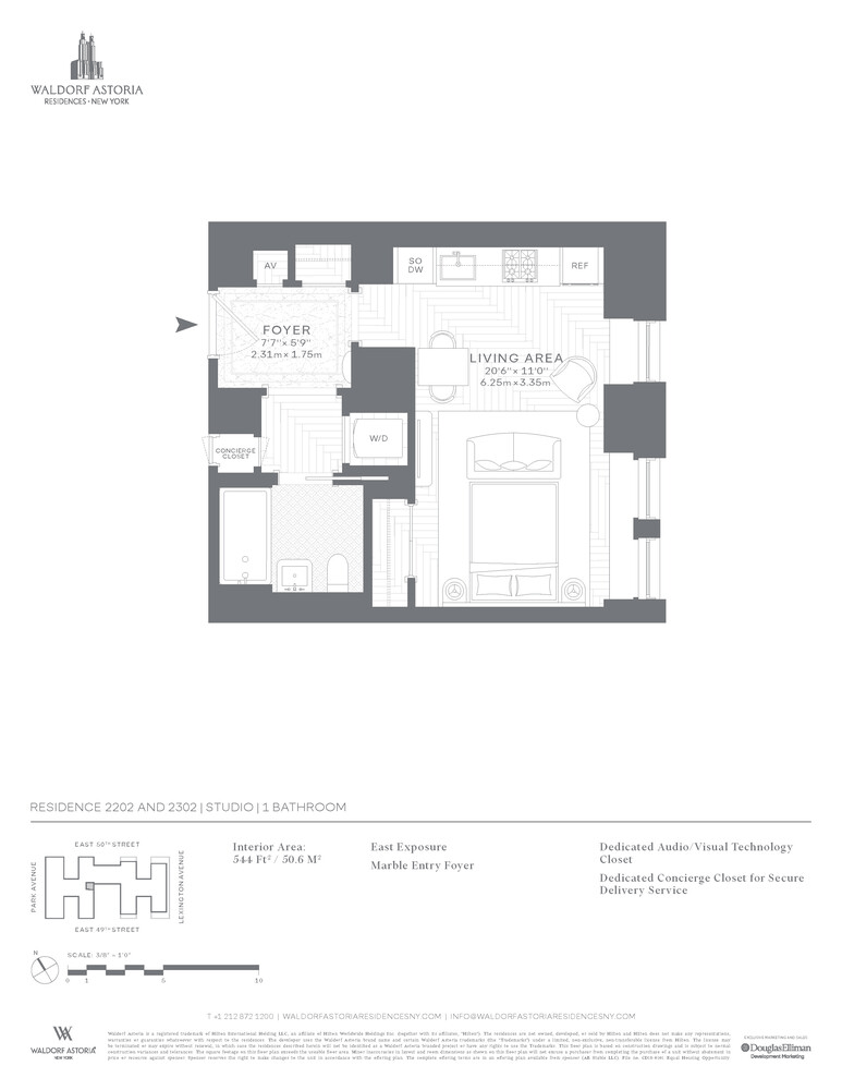 Own a piece of the legacy at Waldorf Astoria Residences New York. Residence 2202 is a proportionately designed studio offering sun-filled eastern exposure.