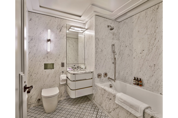 Designed by internationally acclaimed designer Jean-Louis Deniot, residences combine modern comfort with signature features such as a dedicated Concierge Closet and keyless entry with opulent details like ceiling coves, herringbone floors, oversized custom-paneled doors, spacious walk-in closets, and grand entry foyers with marble floors and brass inlays.