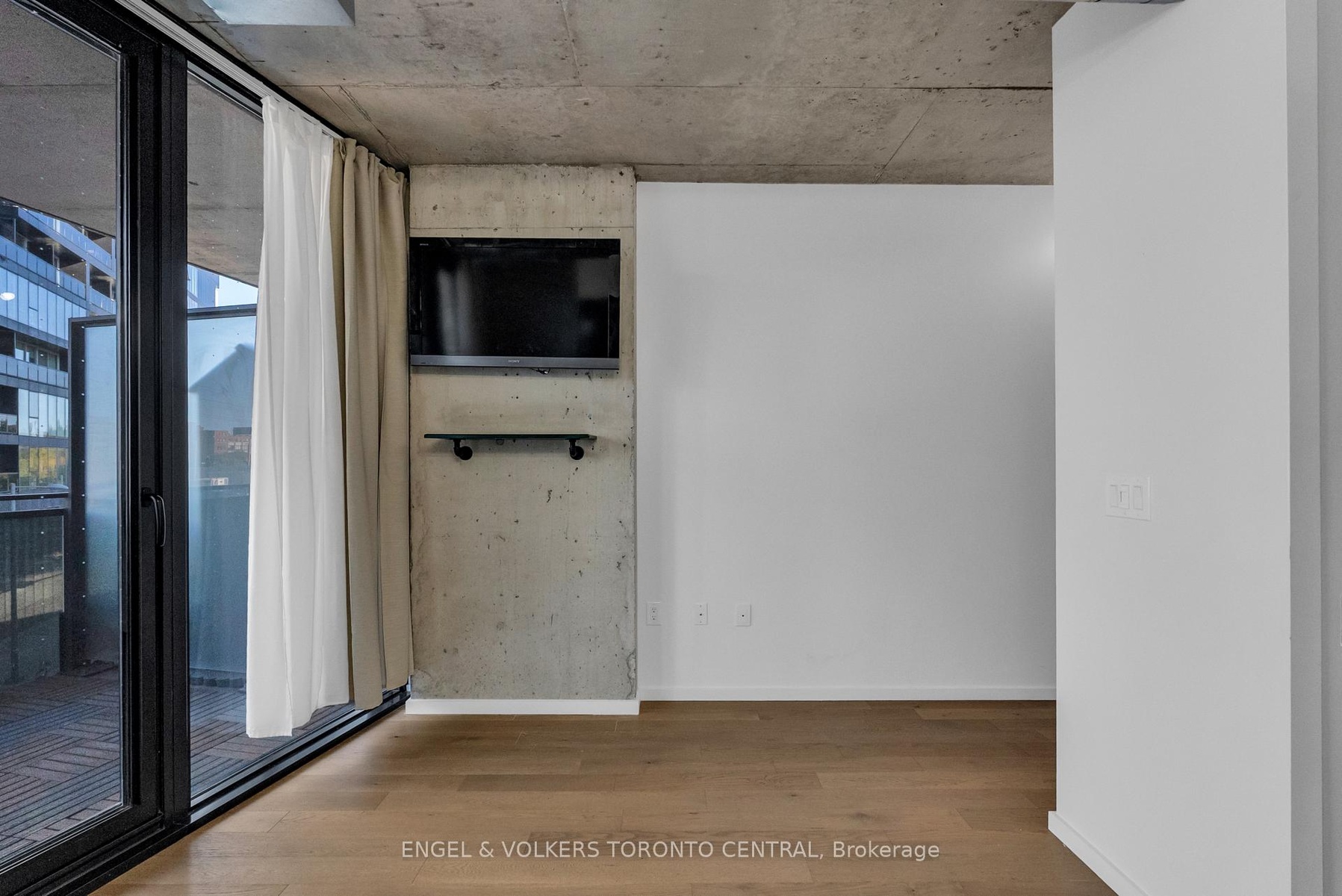 Welcome to this 1 bedroom stylish space that offers an east-facing exposure and fills the space with warm morning light through floor-to-ceiling windows. The open-concept layout, with expose concrete ceiling, large terrace and contemporary finishes make smart use of every inch-perfect for first-time buyers, young professionals, or savvy investors alike. Enjoy the convenience of two secure bike racks, ideal for urban living. Nestled in a modern, less-than-5-year-old building, residents have access to exceptional amenities including a fully equipped gym, children's playroom, outdoor BBQ area, and guest suites for visiting family and friends. Steps from Corktown Commons, Riverside, the DVP, and the Distillery District, this location offers effortless access to transit, parks, and Toronto's downtown core.