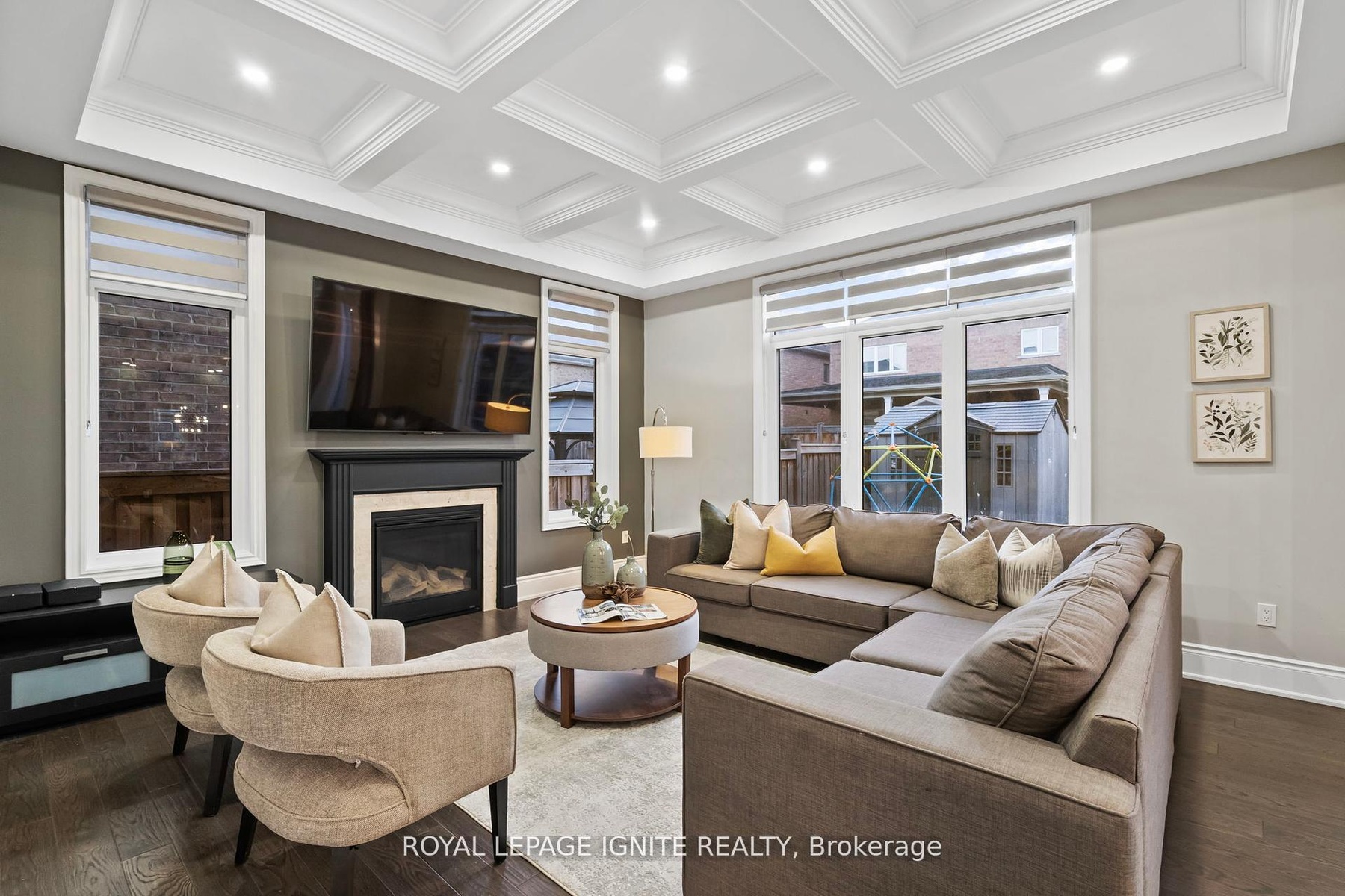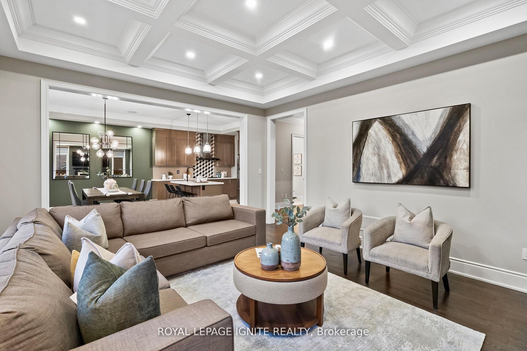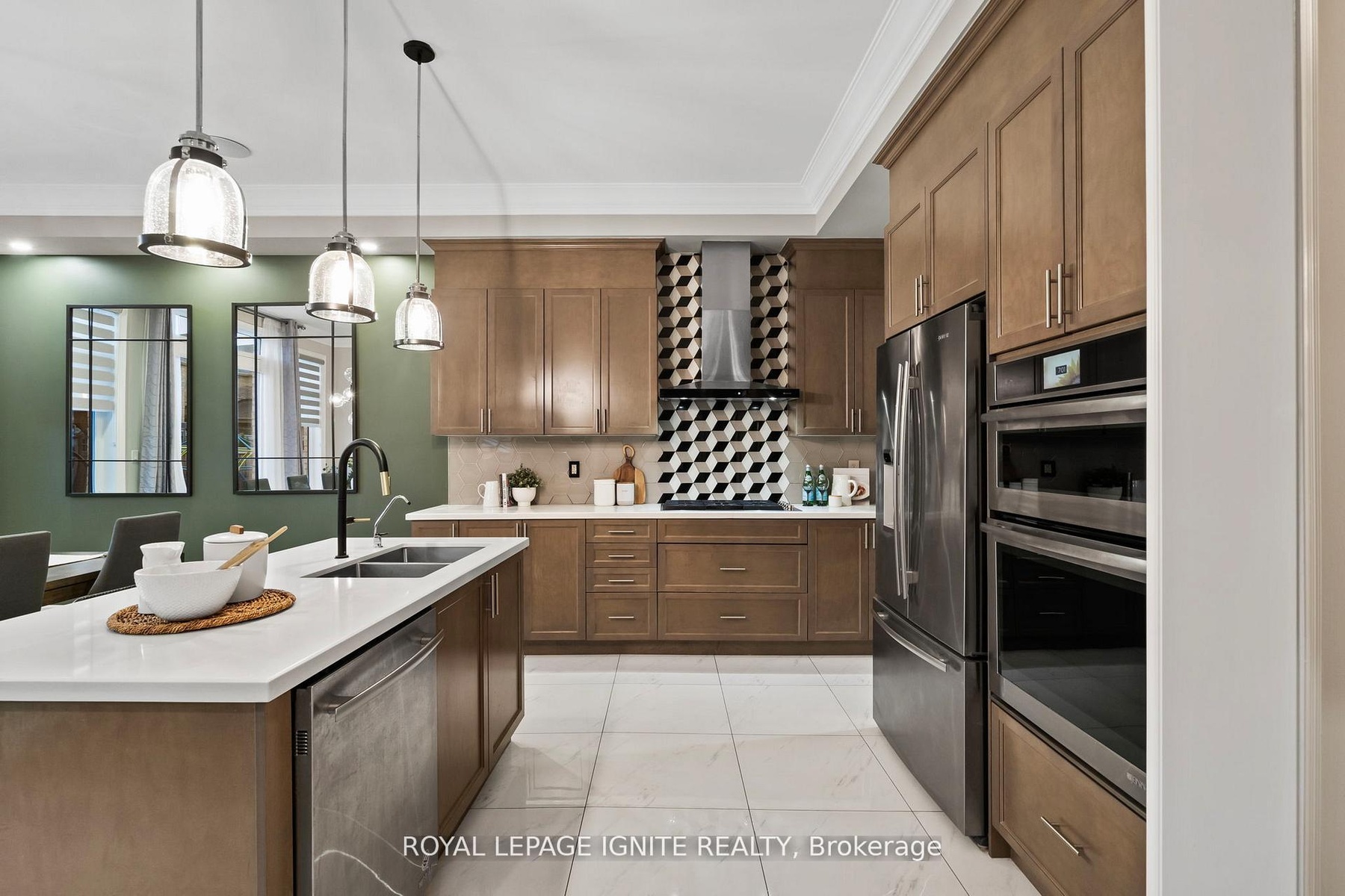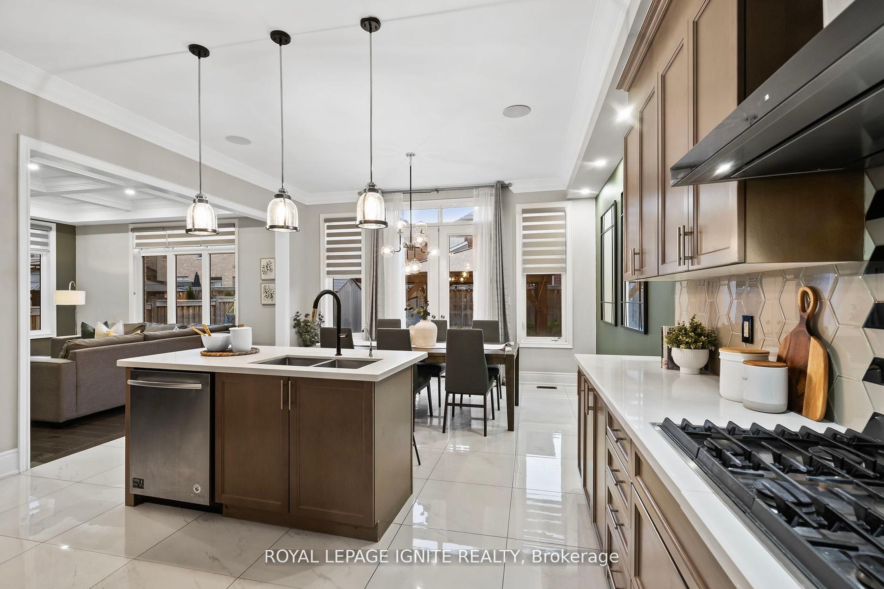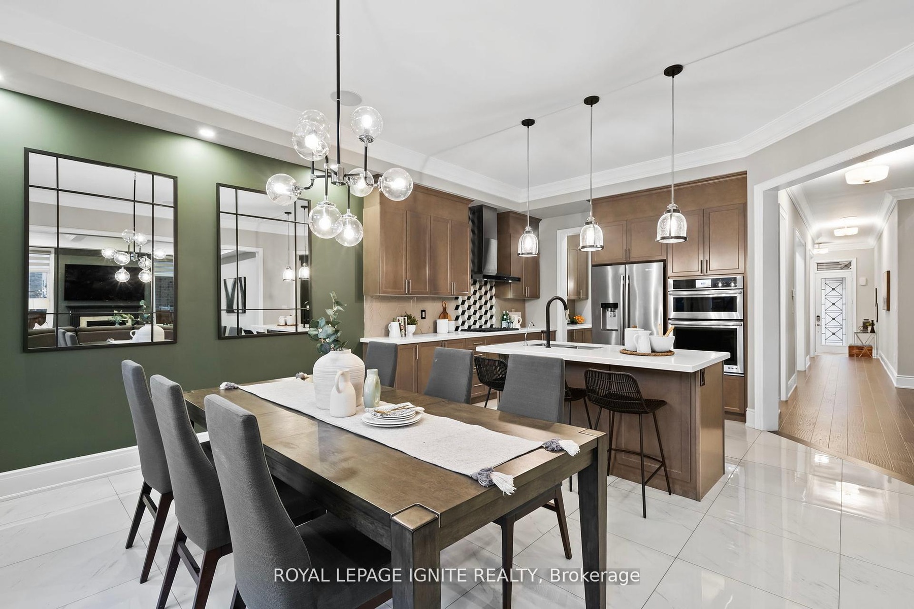 Welcome to this exquisite 4+2 bedroom, 5-bathroom detached home offering over 4,500 sq. ft. of elegant living space in the prestigious Green Valley Estates. One of the largest models in the community, this meticulously maintained residence showcases 10-ft ceilings on the main floor, hardwood flooring, smooth ceilings, custom molding on both main and second levels, pot lights throughout, and grand double wrought iron entry doors. The upgraded gourmet kitchen features extended cabinetry, a walk-in servery, premium Jenn Air appliances, and a large centre island with breakfast bar-perfect for family gatherings and entertaining. The professionally finished basement with a separate entrance provides excellent potential for extended family or rental income. Additional highlights include Bose ceiling speakers, zebra blinds, interlocked front and backyard with gazebo, exterior pot lights, backyard storage, security cameras, and a fully fenced yard. The luxurious primary suite offers his and hers walk-in closets with custom organizers and a spa-inspired 6-piece ensuite. No sidewalk-extra parking and outstanding curb appeal. Ideally located near Hwy 400, GO Station, top-rated schools, parks, shopping, and all amenities.