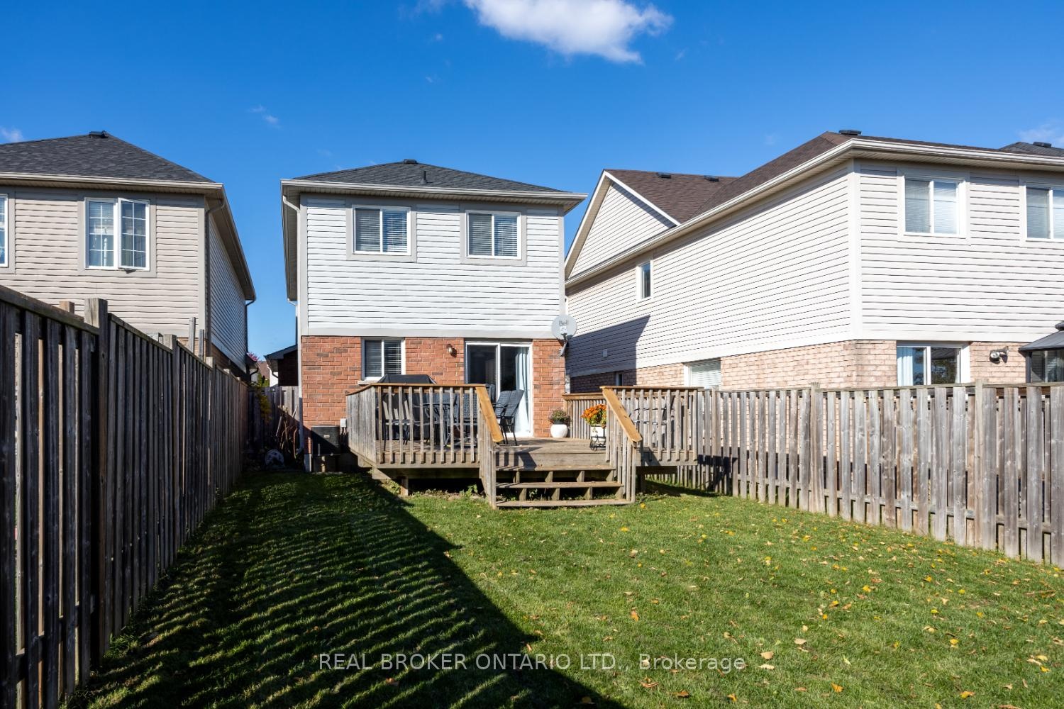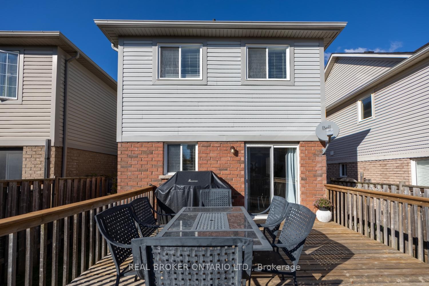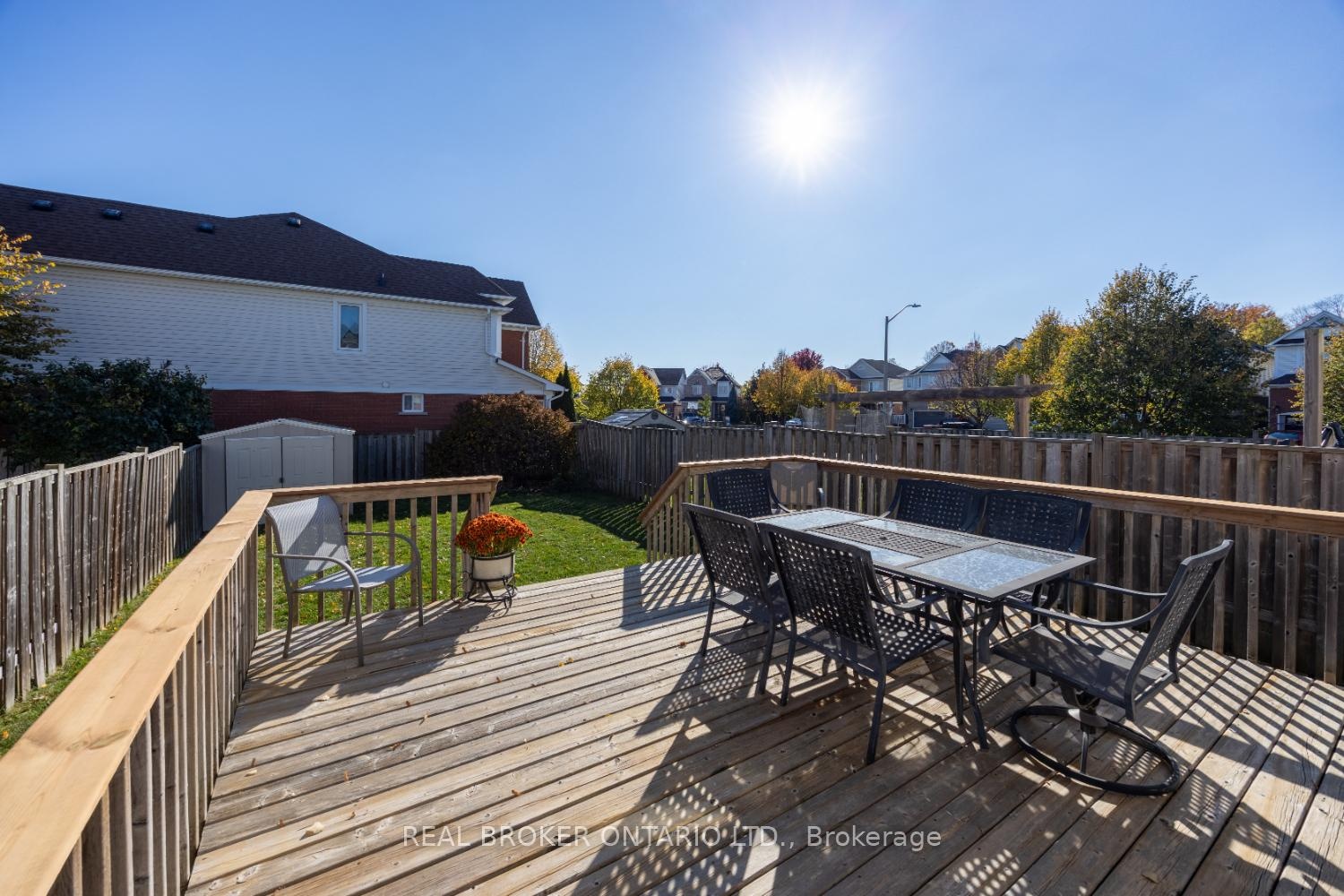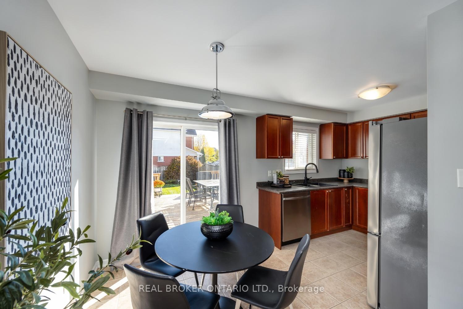This lovely, 3 bedroom residence is ideally located close to amenities, schools, transit and parks, offering both comfort and convenience. A covered front porch invites you into the tiled foyer with a handy closet for coats and shoes. The sun-filled, eat-in kitchen features tile flooring, stainless steel appliances, and a walk-out to deck, ideal for barbecuing. The living room boasts hardwood flooring, pot lighting and a cozy corner gas fireplace, creating a warm and inviting atmosphere. A separate dining area with hardwood flooring and a large window provides an ideal space for family gatherings. Upstairs, the spacious primary bedroom includes a walk-in closet and semi-ensuite access with an updated vanity. The second bedroom also offers a walk-in closet, while the third bedroom provides great flexibility for guests, a nursery, or a home office. Step outside to a large, fully fenced backyard featuring a deck for relaxing or entertaining, and a shed for extra yard storage. The unfinished basement with above grade windows, is ready for your finishing touches, adding extra living space, a recreation room, or a home gym.This charming home is move-in ready and waiting for you.