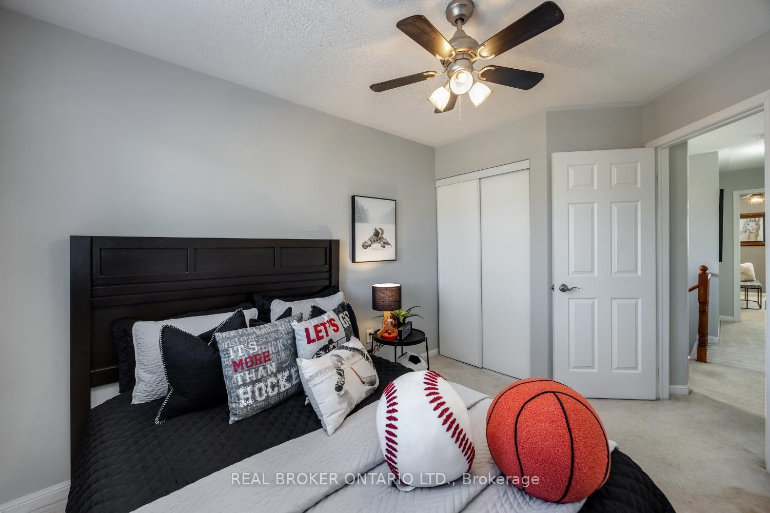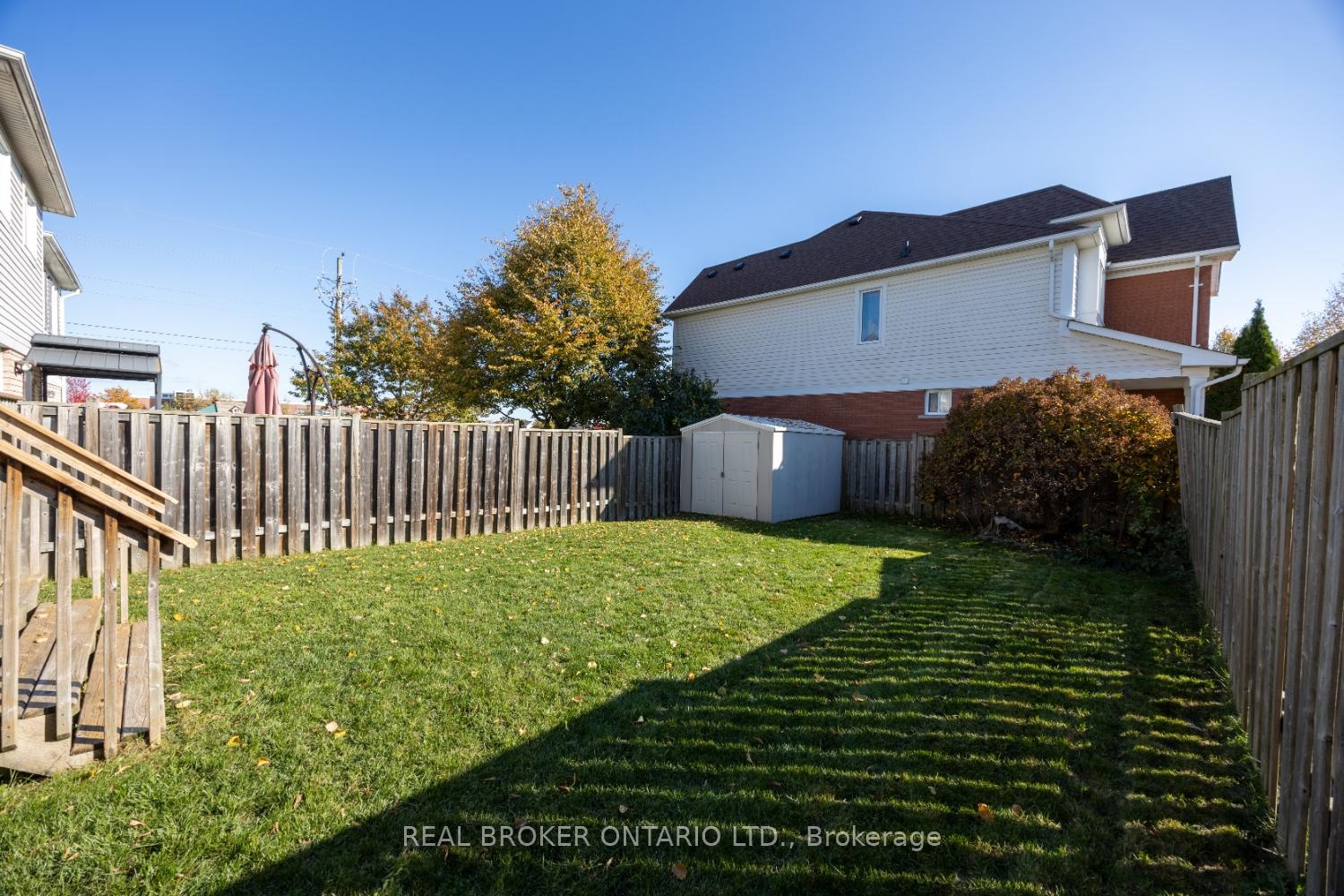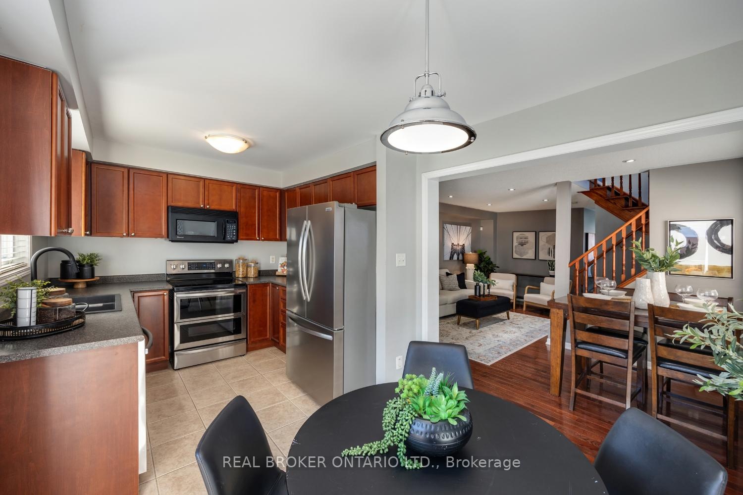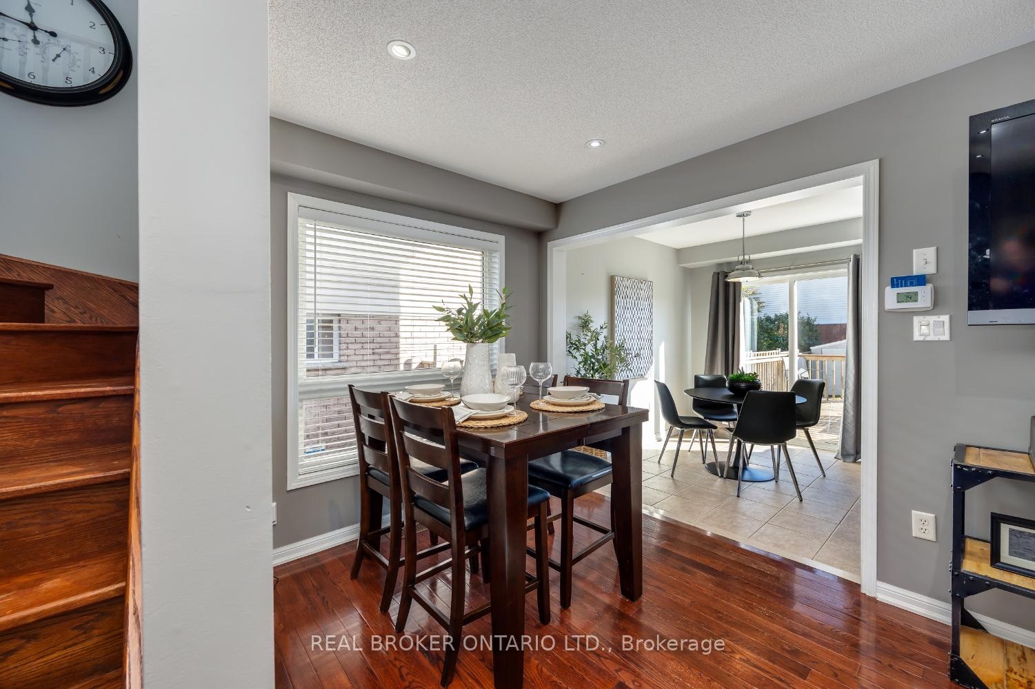 This lovely, 3 bedroom residence is ideally located close to amenities, schools, transit and parks, offering both comfort and convenience. A covered front porch invites you into the tiled foyer with a handy closet for coats and shoes. The sun-filled, eat-in kitchen features tile flooring, stainless steel appliances, and a walk-out to deck, ideal for barbecuing. The living room boasts hardwood flooring, pot lighting and a cozy corner gas fireplace, creating a warm and inviting atmosphere. A separate dining area with hardwood flooring and a large window provides an ideal space for family gatherings. Upstairs, the spacious primary bedroom includes a walk-in closet and semi-ensuite access with an updated vanity. The second bedroom also offers a walk-in closet, while the third bedroom provides great flexibility for guests, a nursery, or a home office. Step outside to a large, fully fenced backyard featuring a deck for relaxing or entertaining, and a shed for extra yard storage. The unfinished basement with above grade windows, is ready for your finishing touches, adding extra living space, a recreation room, or a home gym.This charming home is move-in ready and waiting for you.
