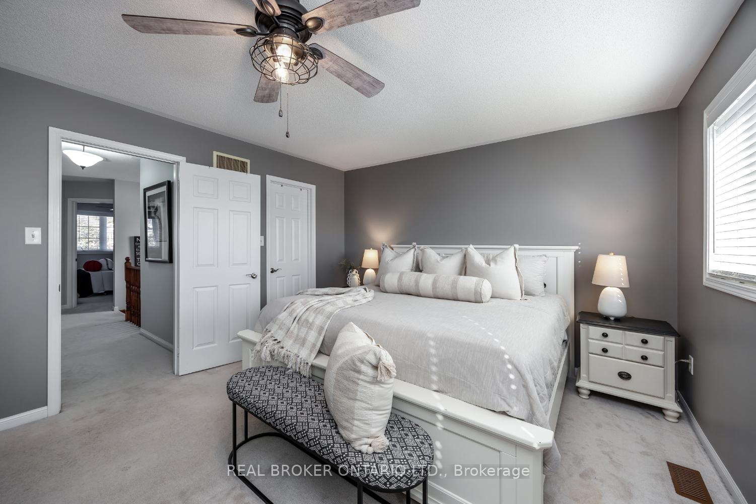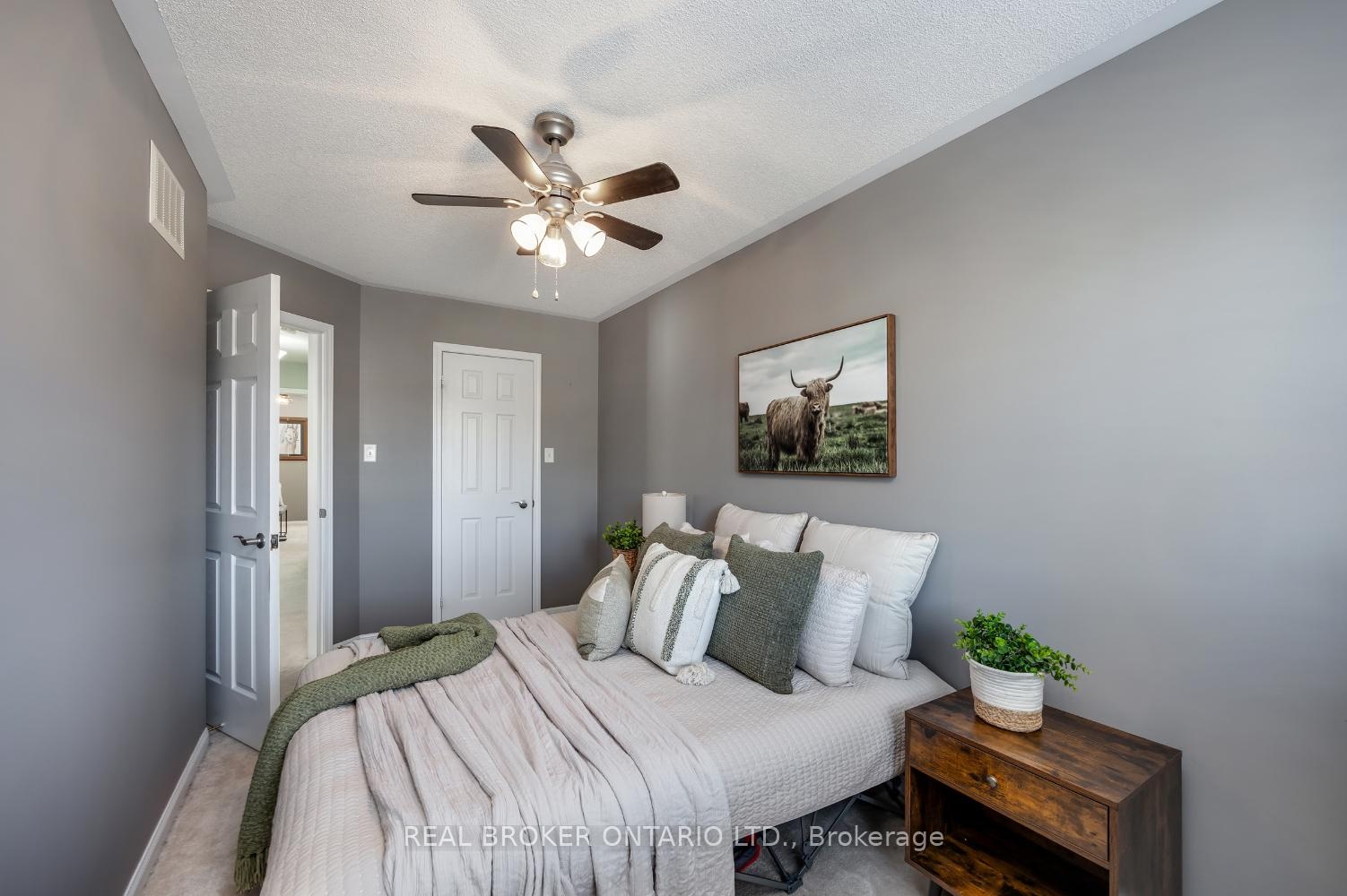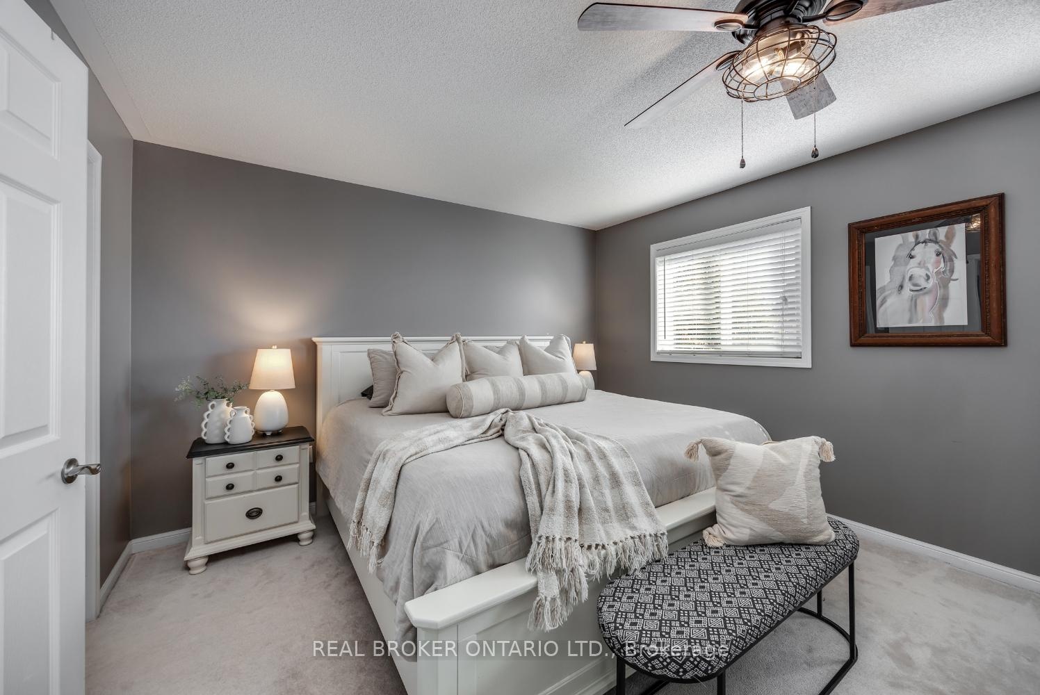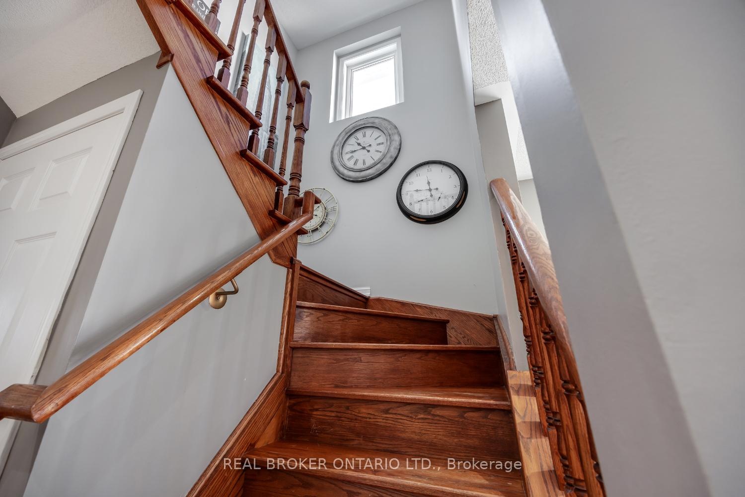 This lovely, 3 bedroom residence is ideally located close to amenities, schools, transit and parks, offering both comfort and convenience. A covered front porch invites you into the tiled foyer with a handy closet for coats and shoes. The sun-filled, eat-in kitchen features tile flooring, stainless steel appliances, and a walk-out to deck, ideal for barbecuing. The living room boasts hardwood flooring, pot lighting and a cozy corner gas fireplace, creating a warm and inviting atmosphere. A separate dining area with hardwood flooring and a large window provides an ideal space for family gatherings. Upstairs, the spacious primary bedroom includes a walk-in closet and semi-ensuite access with an updated vanity. The second bedroom also offers a walk-in closet, while the third bedroom provides great flexibility for guests, a nursery, or a home office. Step outside to a large, fully fenced backyard featuring a deck for relaxing or entertaining, and a shed for extra yard storage. The unfinished basement with above grade windows, is ready for your finishing touches, adding extra living space, a recreation room, or a home gym.This charming home is move-in ready and waiting for you.