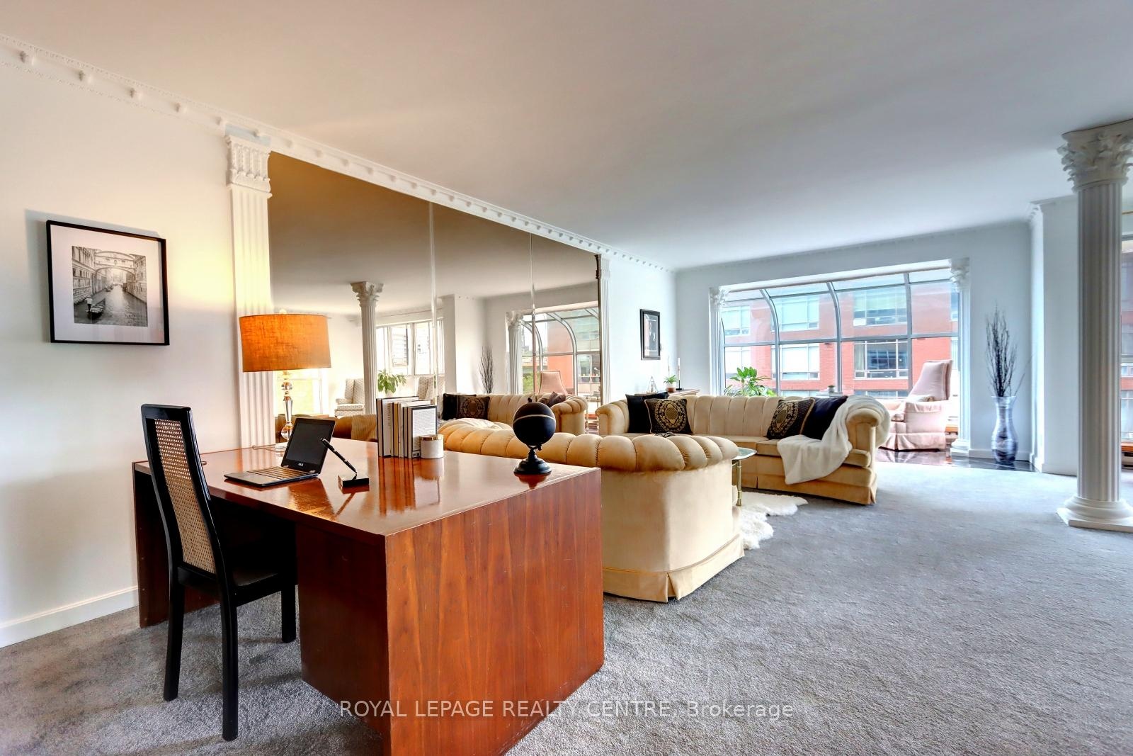 Fantastic Waterfront Location! Welcome To Prestigious Kings Landing! Boasting A Whopping 1,723 Square Feet. This Oversized, Spacious Unit Certainly Offers Room To Roam! Features A Huge Primary Bedroom With Separate Dressing Room, Sitting Room & 5pc Ensuite With Soaker Tub/Stand Alone Shower. Large Kitchen With Independent Breakfast Area. Massive Living & Dining Rooms Overlooks Expansive Enclosed Balconies. Ensuite Laundry/Storage Area. Comes With Underground Parking Spot & Generous Size Locker. 24 Hr Security/Concierge Service. Located Steps From Lake Ontario & Downtown Toronto. Walk, Bike, Or Take Transit, Leave The Car At Home. This Wonderful Unit Is Certainly An Entertainers Delight!! Recently Painted Through-Out & Brand New Broadloom Has Been Installed May/June 2025.
