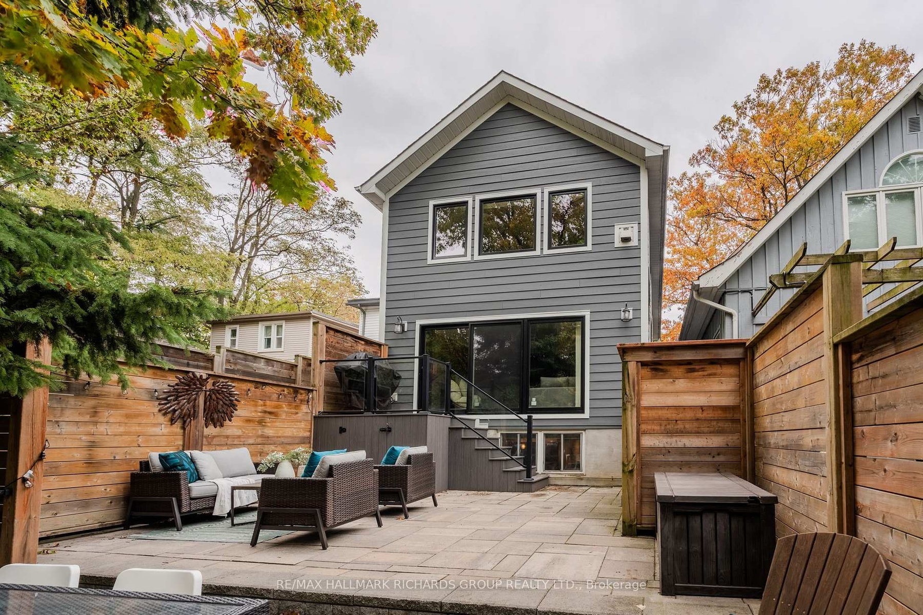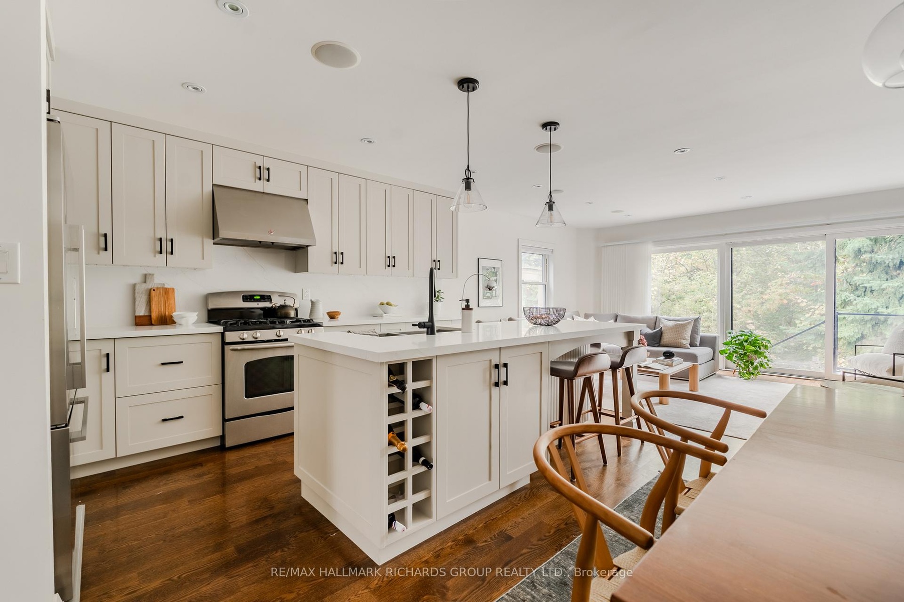 A bright, welcoming family home surrounded by nature and community. Built in 1995 and thoughtfully cared for through every chapter, this detached home sits within the highly regarded Courcelette PS and Malvern CI districts. The open-concept main floor is filled with natural light, where living and dining spaces flow easily into a kitchen designed for both cooking and connection. The adjoining family room opens to a private deck with ravine views - a peaceful, treehouse-like escape with the city just beyond the trees. Upstairs, the primary suite is a calm retreat with vaulted ceilings, a fireplace, a walk-in closet, and an ensuite bath. Two additional bedrooms offer space for family or guests. The lower level features a high-ceilinged rec room with a wet bar and a separate entrance - perfect for movie nights, visitors, play, or a home office. Originally renovated in 2012 and continuously updated, including newer kitchen counters and backsplash, exterior siding, windows, furnace, AC, central vacuum, and more. Two-car parking, standout curb appeal, and flexible living spaces complete this east-end gem. Walk to Queen East, Kingston Village, and the lake in minutes. Enjoy nearby cafés, boutiques, and transit, while your private ravine setting framed by mature trees offers a rare sense of calm in the city. A home built for family, connection, and everyday comfort - ready for its next chapter.