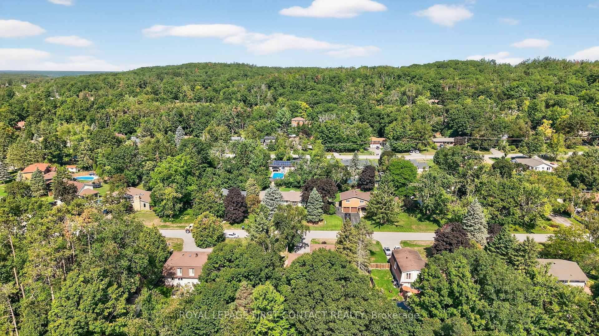 Midhurst home on a quite very low traffic street. 4 bedroom, 2 1/2 baths, 2473 sq ft finished, double garage with inside entry on a large treed private 97 ft x 176 ft level useful lot. Septic replaced in 2009. Open concept eat-in kitchen with stainless steel appliances, overlooks the family room with gas fireplace and walkout to the private backyard. Windows and front door have been replaced. Hardwood floors on main and bedroom levels. Primary suite with double closets and ensuite bath. Original owners, pride of ownership! Midhurst community has trails, Willow Creek, pharmacy/general store, churches, school, community center, tennis & rink all in the village. Golf & skiing nearby, Snow Valley minutes away.