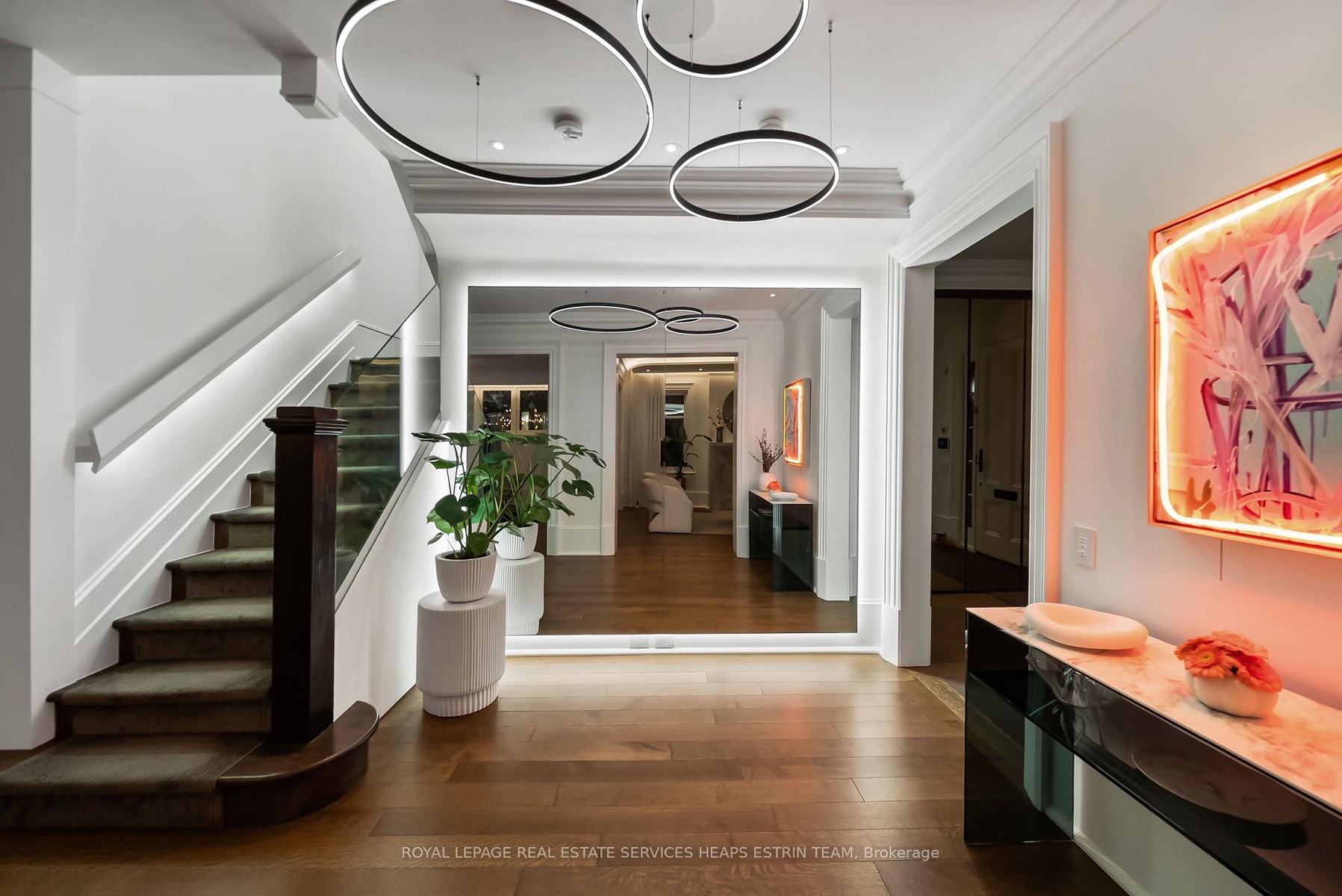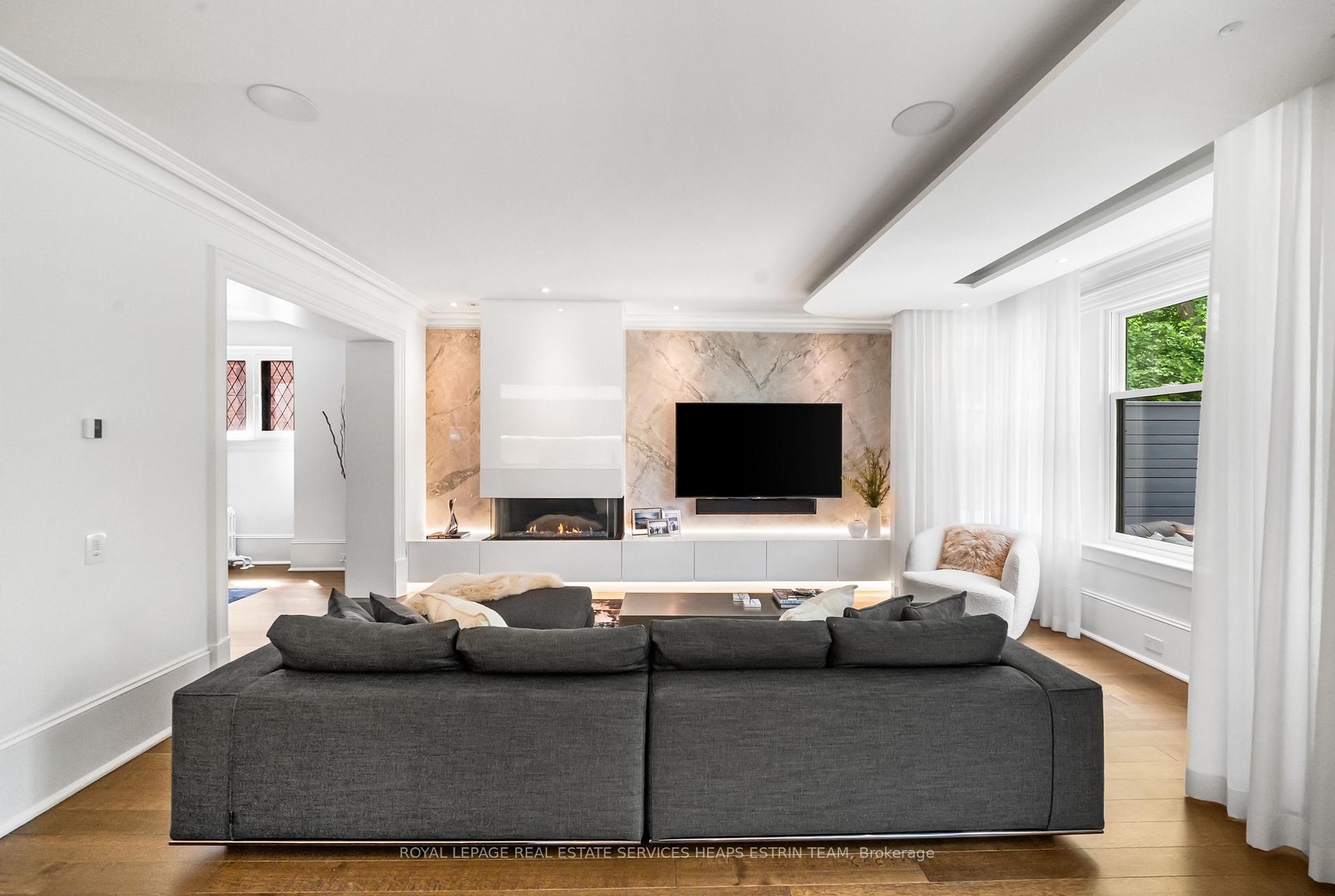 A rare blend of heritage charm and modern sophistication, 150 Douglas Drive is a bespoke residence that perfectly captures the essence of Rosedale living, refined, timeless, and deeply connected to nature. Meticulously redesigned by renowned architect Johnson Chou, this home exudes warmth and intention. Interiors are elevated by sculpted ceilings with ambient lighting, in-floor radiant heating, and fully integrated Control4 smart home technology, including fully automated lighting and irrigation systems. Built-in sound spans most of the home and outdoors, complemented by a home theatre system in the family room.The living room is anchored by a striking quartzite fireplace, while the elegant dining room stuns with a custom wine feature. The Poliform kitchen is a dream for the home chef, complete with a large island, premium appliances, and a sunlit breakfast area overlooking the backyard oasis. The adjacent family room offers a relaxed and inviting space to unwind.Outside, a resort-style backyard awaits with a heated Bonavista pool, waterfall feature, and expansive composite deck. A cabana, pergola with built-in television, fire table, and curated lighting create a private outdoor retreat.Upstairs, the primary suite offers vaulted ceilings, dual walk-in closets, and a spa-inspired ensuite. Two additional bedrooms and a stylish family bath complete the second floor. The third floor features a large bedroom and a flexible second room that can serve as either a den or an additional bedroom, along with a full bathroom.The lower level offers excellent ceiling height, a separate entrance, recreation room, office, bedroom, full bath, and bright laundry with pet shower. Additional features include heated front pad and walkways, and a wide mutual drive with backyard access.Beautifully situated on a prime stretch of Douglas Drive, just steps from Chorley Park, ravine trails, and Summerhill shops.