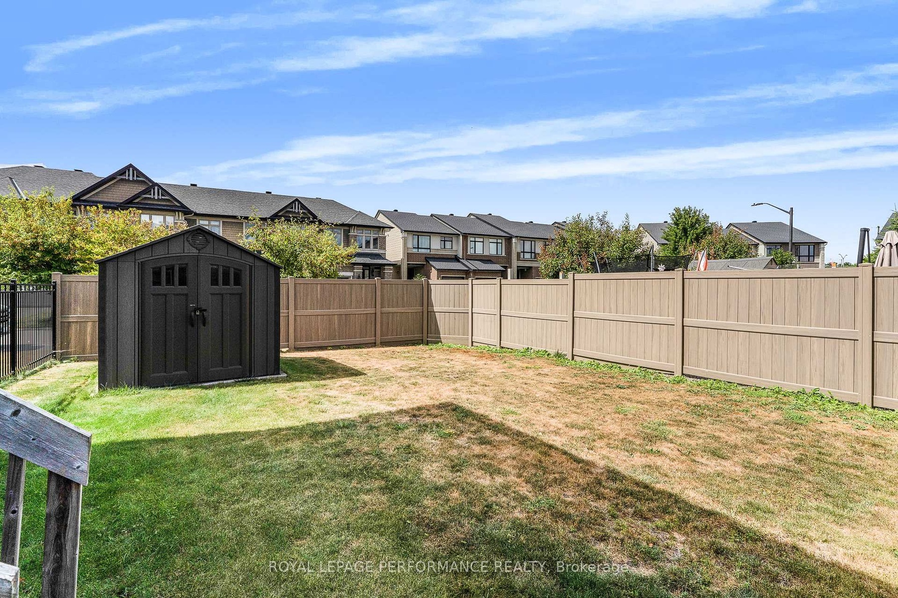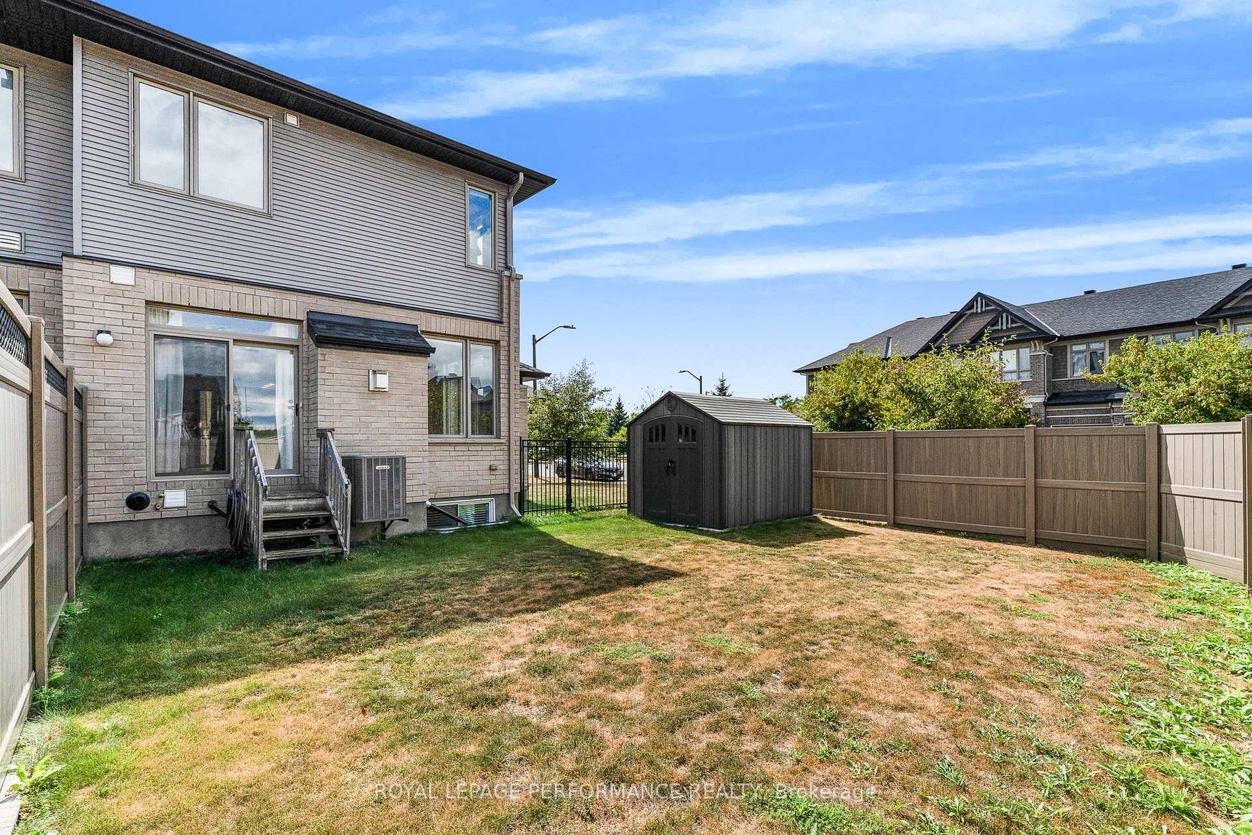 Stunning End Unit on a Prime Corner Lot Just Minutes from Manotick! Welcome to this beautifully maintained Sonoma Model offering over 2,033 sq ft of finished living space and the feel of a detached home all with the convenience of a double car garage. Situated on a spacious corner lot, this home features a fully fenced backyard, perfect for entertaining, gardening, or relaxing, complete with a handy storage shed. Step inside to discover a bright and open main floor layout highlighted by pristine hardwood flooring and a cozy gas fireplace. The heart of the home is a gorgeous chefs kitchen with sleek quartz countertops, abundant cabinetry, and a walk-in pantry thats sure to impress. Upstairs, you'll find 3 generously sized bedrooms and a versatile loft area that could easily be converted into a 4th bedroom. The primary suite spans the rear of the home, offering a luxurious ensuite and an expansive walk-in closet. A second full bath and laundry complete the upper level. The finished basement adds even more space with a large recreation room ideal for a family room, home office, gym, or play area plus two large storage/utility rooms.All of this in a fantastic location within walking distance to shopping at Earl Armstrong & River Road, as well as parks, schools, and recreation. Don't miss this opportunity to own a spacious, stylish home in a family-friendly community. Book your showing today!