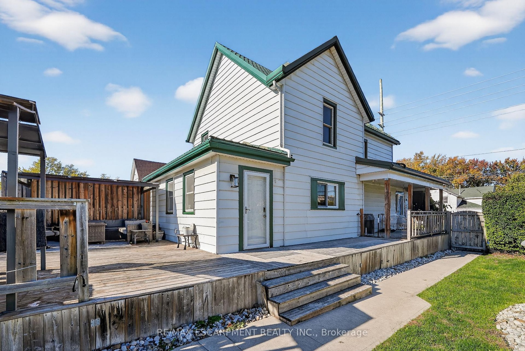 MODERN LIVING, SMALL-TOWN HEART ... 261 Gilmore Road in Fort Erie sits on a large, L-SHAPED corner property that radiates curb appeal with its classic wrap-around porch and thoughtfully updated interior. RENOVATED in 2021, this 2-storey home strikes the ideal balance between modern convenience and timeless character, offering space for both relaxation and entertaining. Step through the welcoming foyer into a bright, OPEN CONCEPT living and dining area, where pot lights and LVP flooring create a warm and inviting flow. The L-shaped layout maximizes both light and space, leading into a stylish kitchen featuring a peninsula breakfast bar w/stone countertop, sleek black stainless steel appliances, and a large pantry - an everyday chef's kitchen in both design and practicality. Just off the back MUDROOM, the MF laundry and 3-pc bath add everyday ease, while a main floor den offers flexibility as a third bedroom or home office. Upstairs, find two spacious bedrooms, including a spacious bedroom with LOFT ACCESS and another with a large closet, complemented by a modern 3-pc bath. The lower level provides ample storage, a cellar, and two crawl spaces for utilities. Step outside to your private, fully fenced BACKYARD OASIS, featuring an above-ground pool, hot tub, and hard-top gazebo on a wrap-around deck - perfect for summer evenings under the stars. A flagstone firepit and garden pond complete this SERENE RETREAT. With a U-shaped driveway accommodating up to six vehicles, practicality meets pleasure at every turn. Recent updates include metal roof & metal siding plus a 2021 furnace & A/C and for peace of mind. Ideally located near parks, the library, Fort Erie Racetrack, golf & country clubs, and the Peace Bridge, this home offers the best of small-town living with modern style and unbeatable convenience. CLICK ON MULTIMEDIA for video tour, drone photos, floor plans & more.