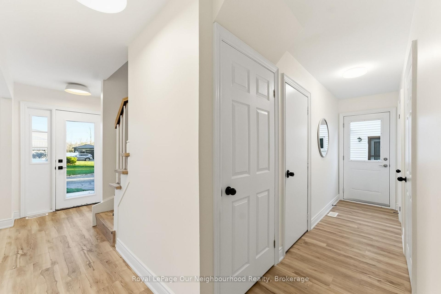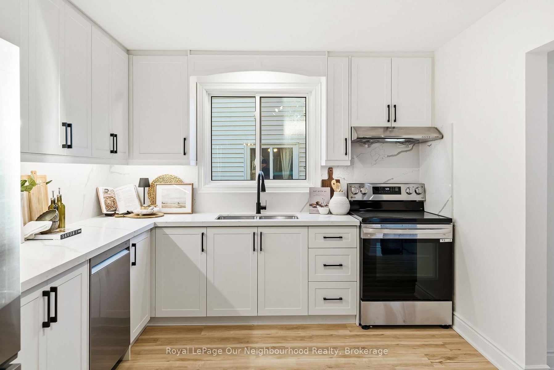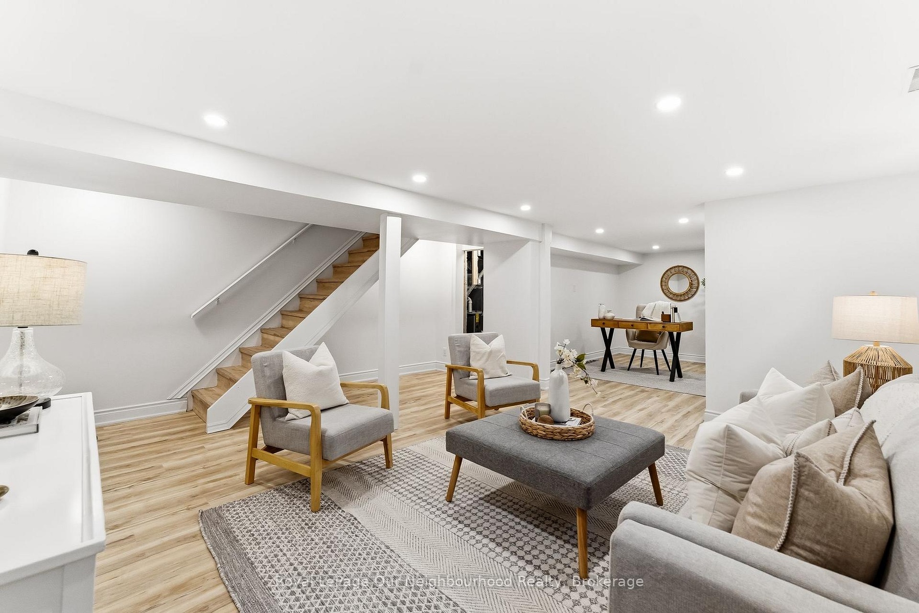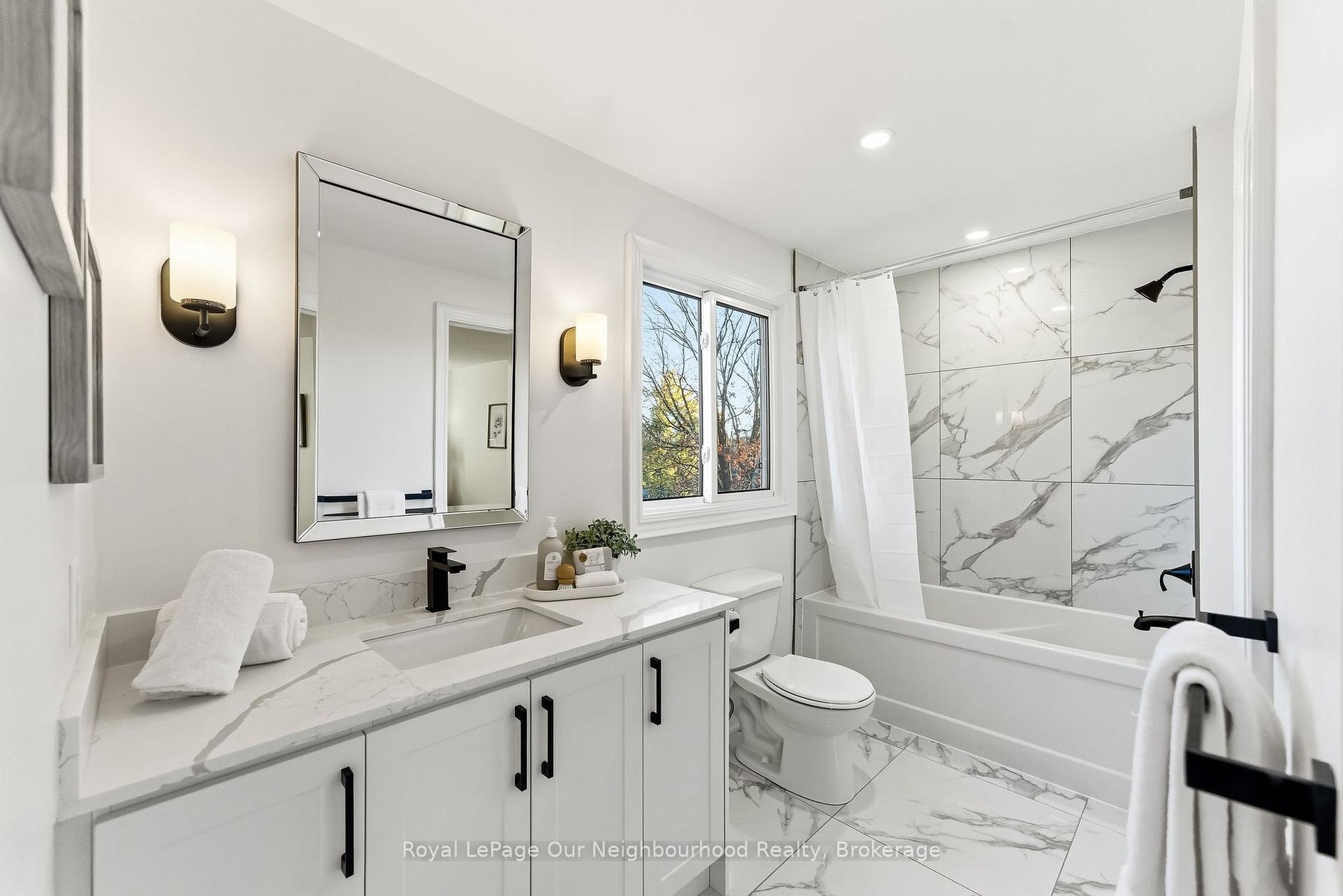 Freshly updated and ready for your family! This exceptionally clean home combines modern design, comfort, and value - a true showstopper on a budget. Ideally located in East Peterborough, close to parks, dog parks, Little Lake, Beavermead Park, the Otonabee River, shopping, and quick access to Hwy 115. Step into the bright white kitchen featuring quartz countertops and backsplash, a hidden walk-in pantry, and brand-new stainless-steel appliances - perfectly designed for both daily living and entertaining. The open-concept living area showcases a waffle ceiling with LED lighting and durable vinyl click flooring, adding both style and practicality. You'll fall in love with the stunning sunroom, highlighted by laminated wood beams, floor-to-ceiling windows, and a cozy gas fireplace - creating a warm, light-filled retreat to enjoy year-round. Upstairs, the primary bedroom offers two separate closets and direct access to a beautifully renovated 4-piece bathroom featuring sconce lighting over a quartz countertop vanity, pot lights, and 24"x24" Carrara-style ceramic tiles throughout - an elegant, spa-like space designed for relaxation. The finished lower level provides a spacious recreation room ideal for a family area, home gym, or office. With modern updates, low-maintenance finishes, and timeless character throughout, this home delivers true move-in-ready comfort.