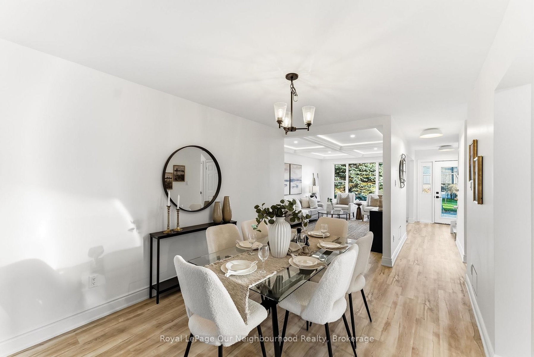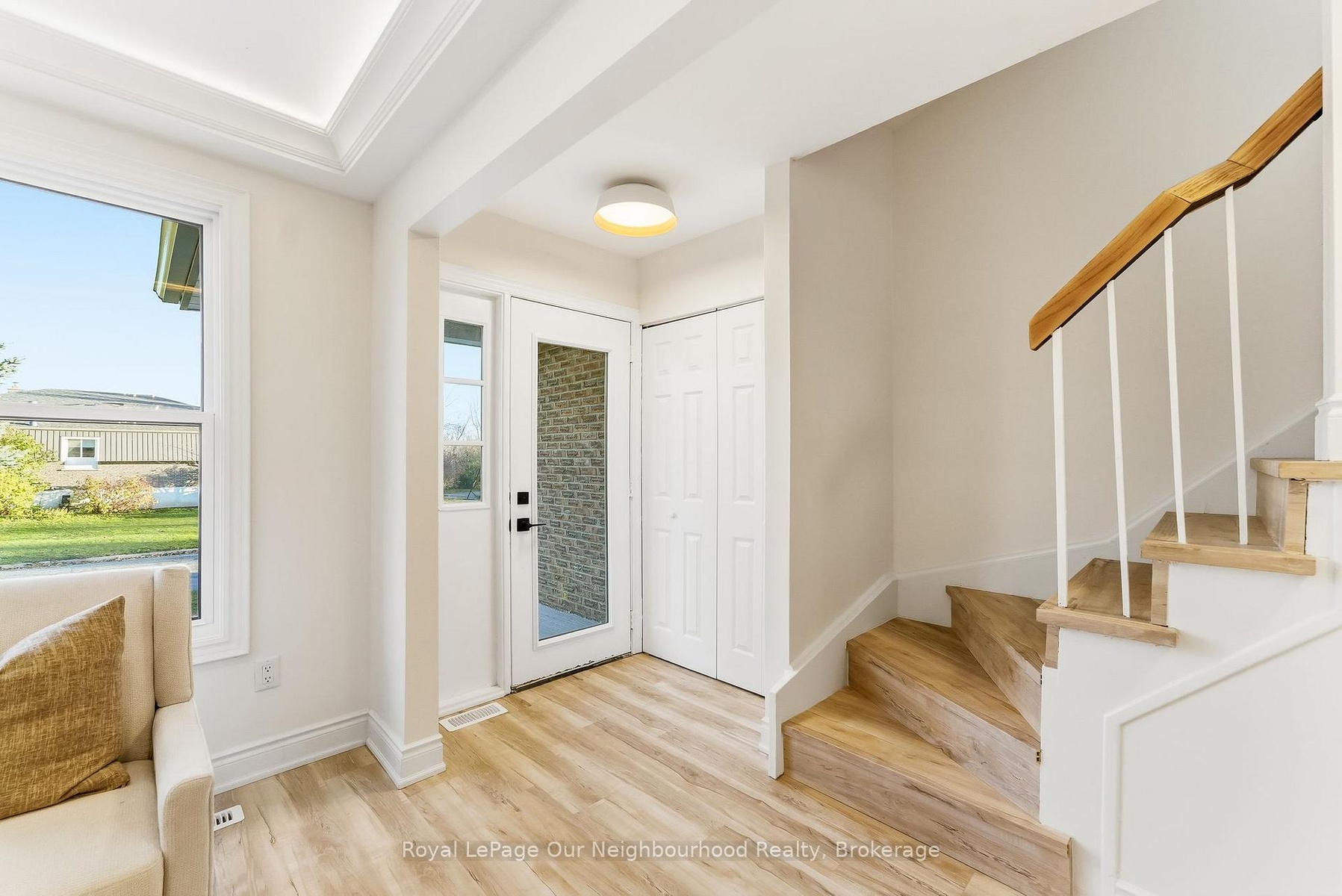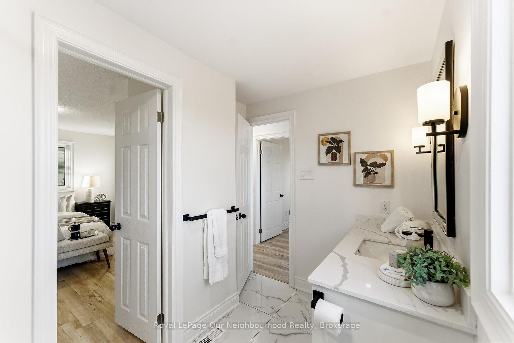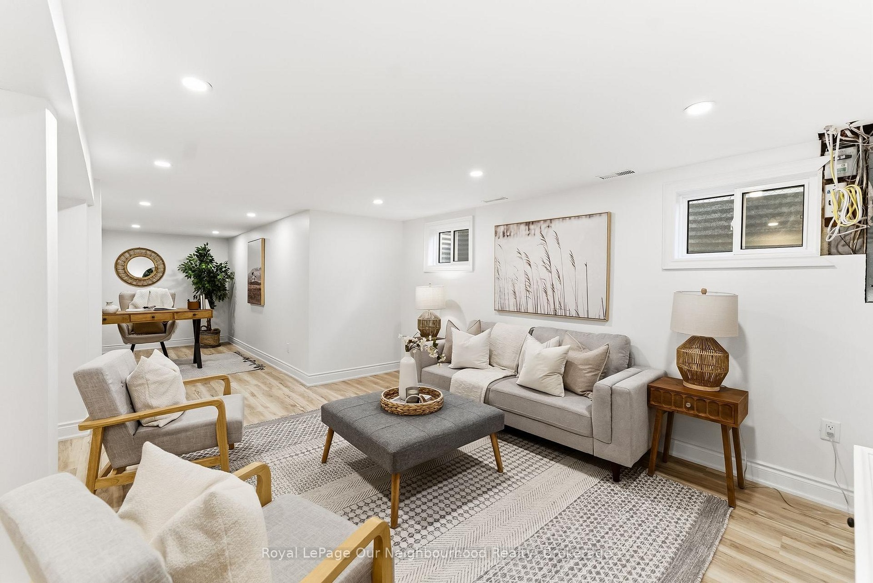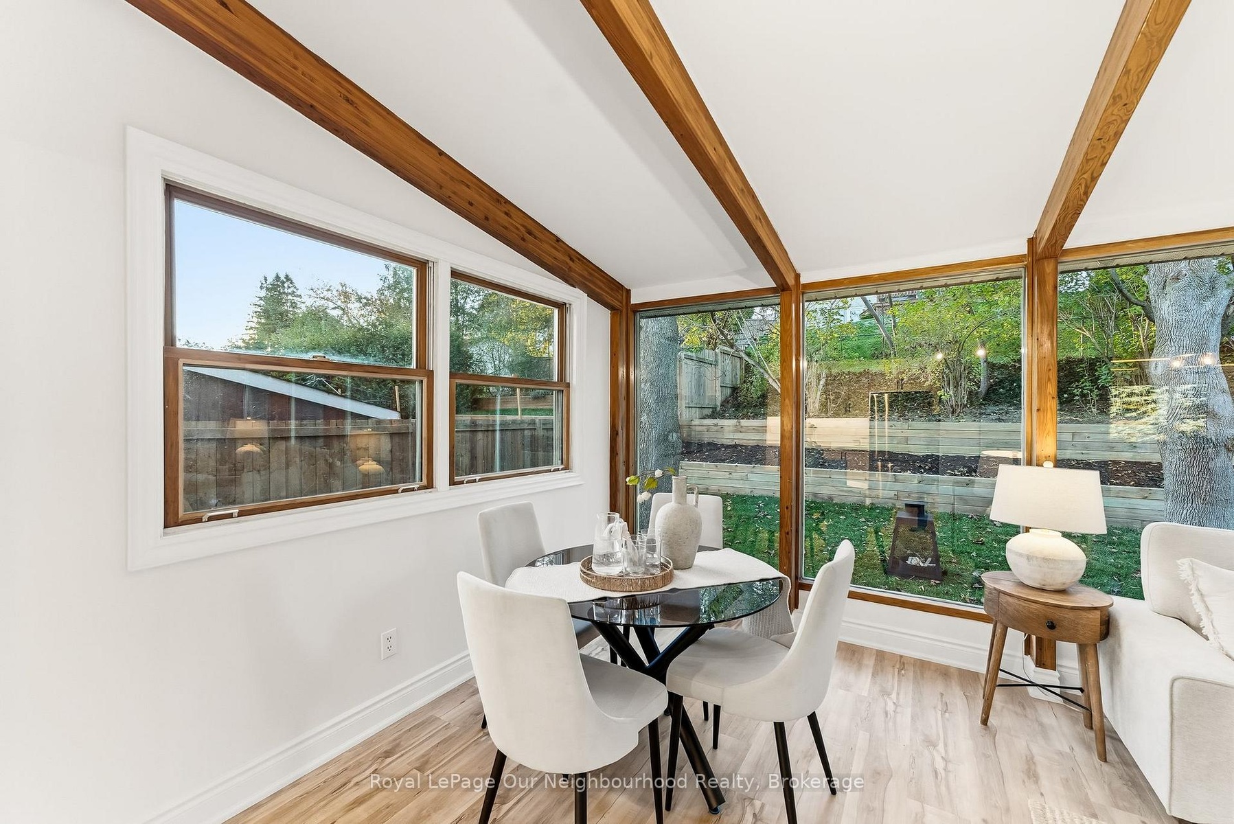 Freshly updated and ready for your family! This exceptionally clean home combines modern design, comfort, and value - a true showstopper on a budget. Ideally located in East Peterborough, close to parks, dog parks, Little Lake, Beavermead Park, the Otonabee River, shopping, and quick access to Hwy 115. Step into the bright white kitchen featuring quartz countertops and backsplash, a hidden walk-in pantry, and brand-new stainless-steel appliances - perfectly designed for both daily living and entertaining. The open-concept living area showcases a waffle ceiling with LED lighting and durable vinyl click flooring, adding both style and practicality. You'll fall in love with the stunning sunroom, highlighted by laminated wood beams, floor-to-ceiling windows, and a cozy gas fireplace - creating a warm, light-filled retreat to enjoy year-round. Upstairs, the primary bedroom offers two separate closets and direct access to a beautifully renovated 4-piece bathroom featuring sconce lighting over a quartz countertop vanity, pot lights, and 24"x24" Carrara-style ceramic tiles throughout - an elegant, spa-like space designed for relaxation. The finished lower level provides a spacious recreation room ideal for a family area, home gym, or office. With modern updates, low-maintenance finishes, and timeless character throughout, this home delivers true move-in-ready comfort.