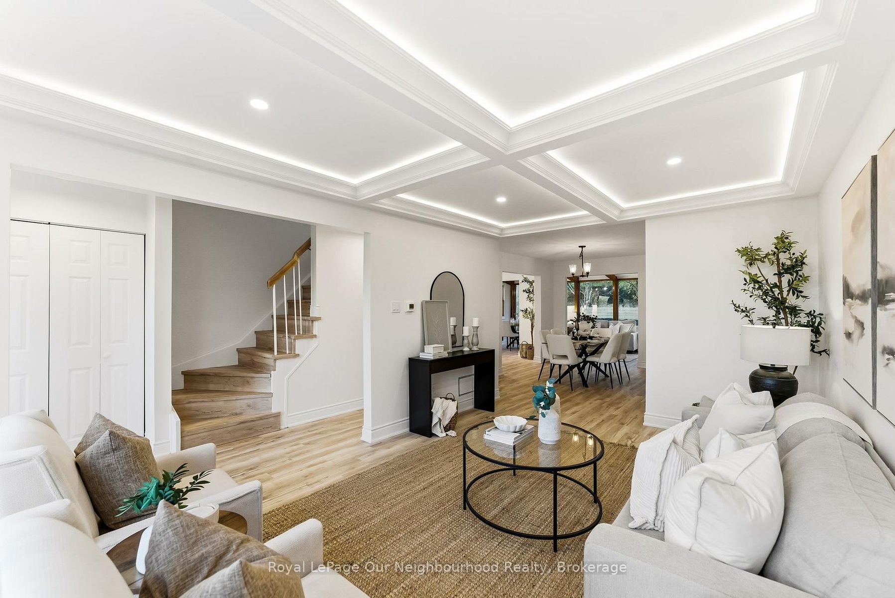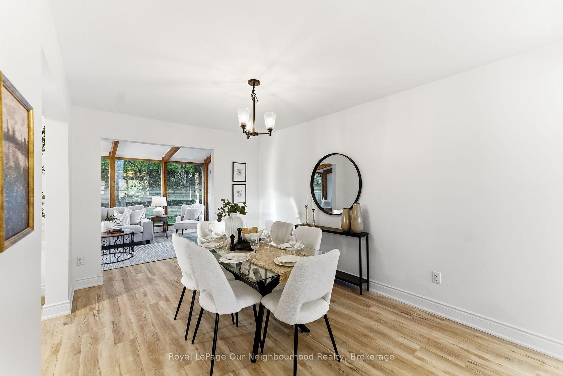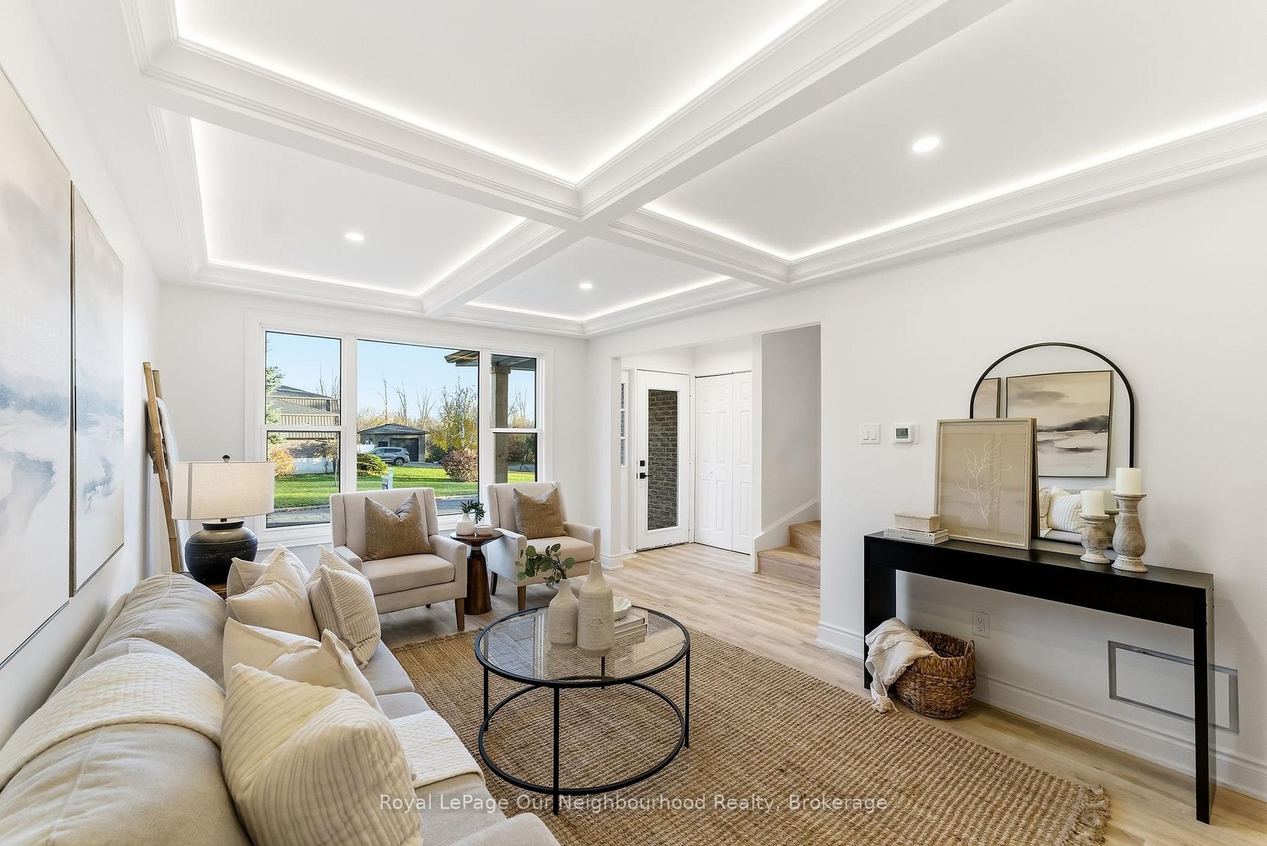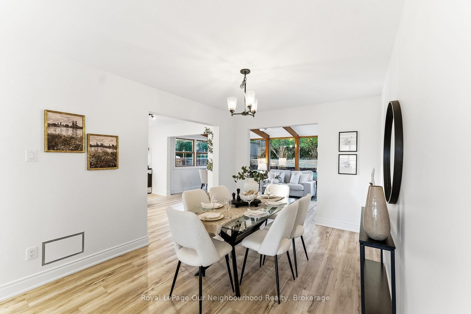 Freshly updated and ready for your family! This exceptionally clean home combines modern design, comfort, and value - a true showstopper on a budget. Ideally located in East Peterborough, close to parks, dog parks, Little Lake, Beavermead Park, the Otonabee River, shopping, and quick access to Hwy 115. Step into the bright white kitchen featuring quartz countertops and backsplash, a hidden walk-in pantry, and brand-new stainless-steel appliances - perfectly designed for both daily living and entertaining. The open-concept living area showcases a waffle ceiling with LED lighting and durable vinyl click flooring, adding both style and practicality. You'll fall in love with the stunning sunroom, highlighted by laminated wood beams, floor-to-ceiling windows, and a cozy gas fireplace - creating a warm, light-filled retreat to enjoy year-round. Upstairs, the primary bedroom offers two separate closets and direct access to a beautifully renovated 4-piece bathroom featuring sconce lighting over a quartz countertop vanity, pot lights, and 24"x24" Carrara-style ceramic tiles throughout - an elegant, spa-like space designed for relaxation. The finished lower level provides a spacious recreation room ideal for a family area, home gym, or office. With modern updates, low-maintenance finishes, and timeless character throughout, this home delivers true move-in-ready comfort.