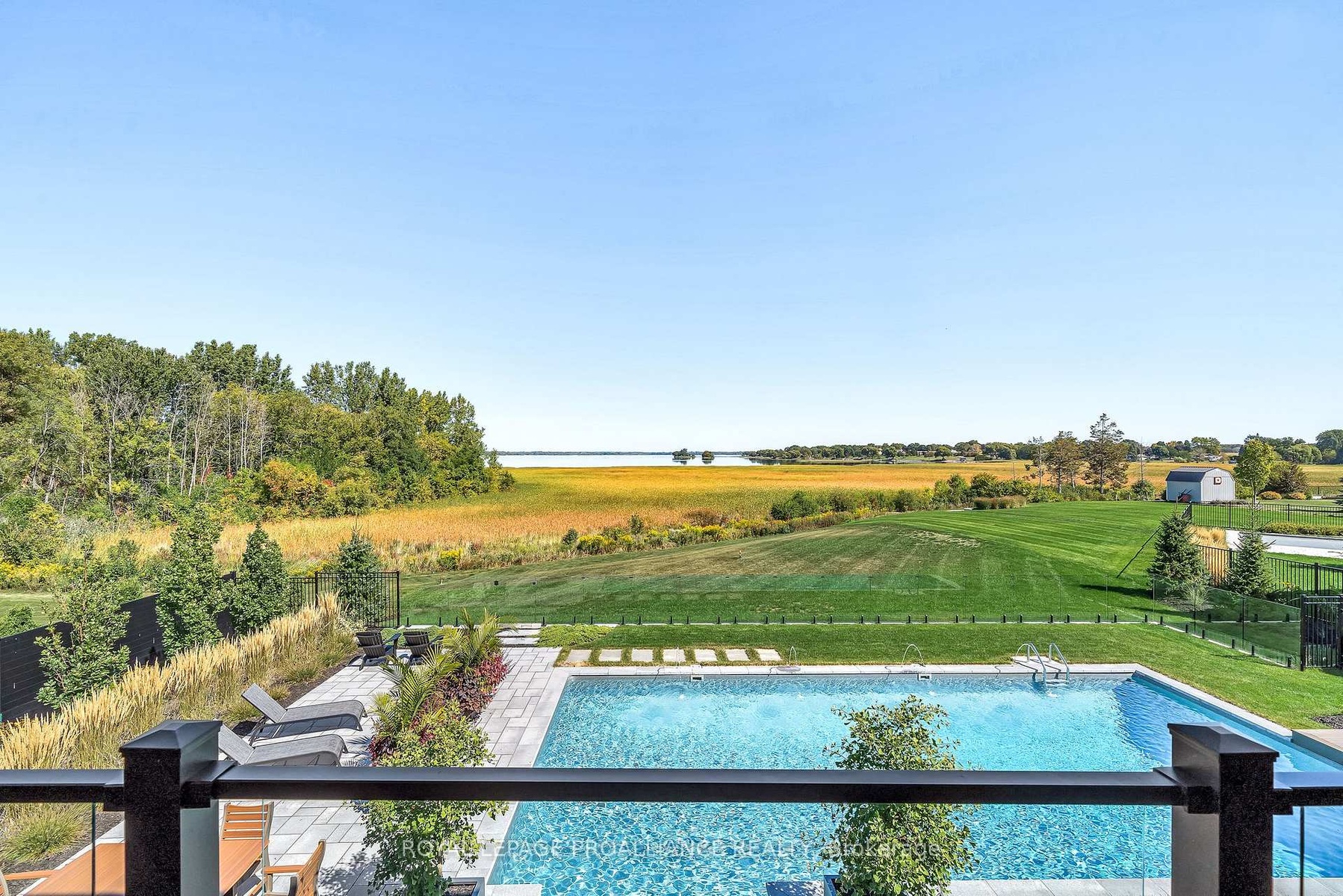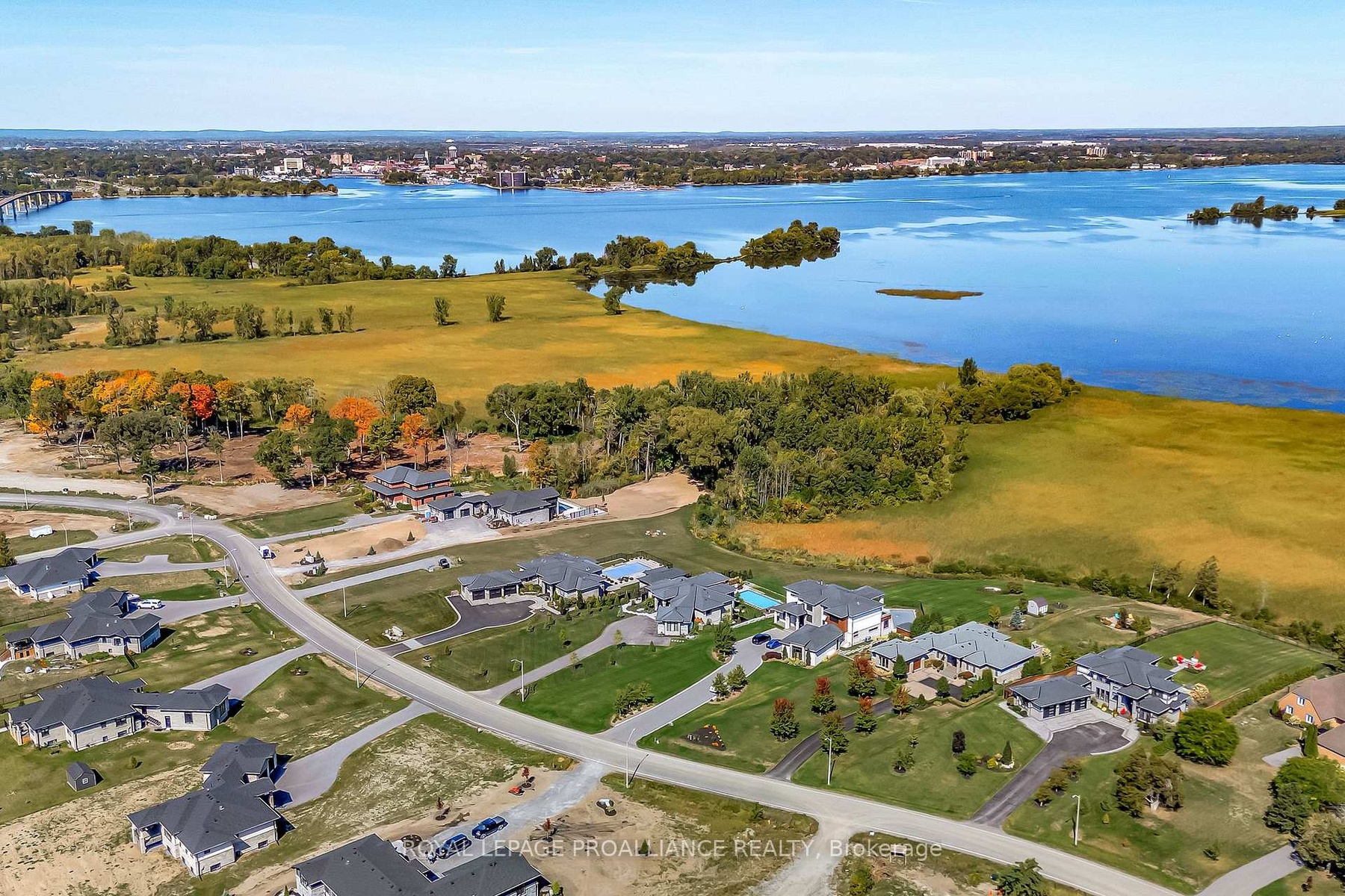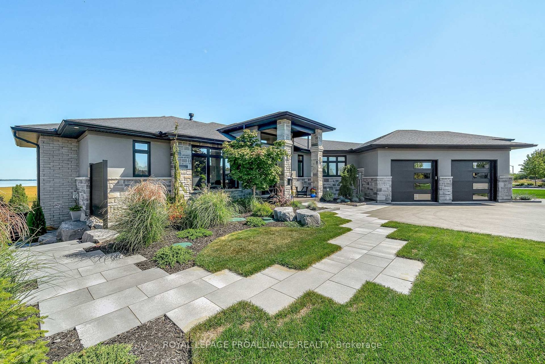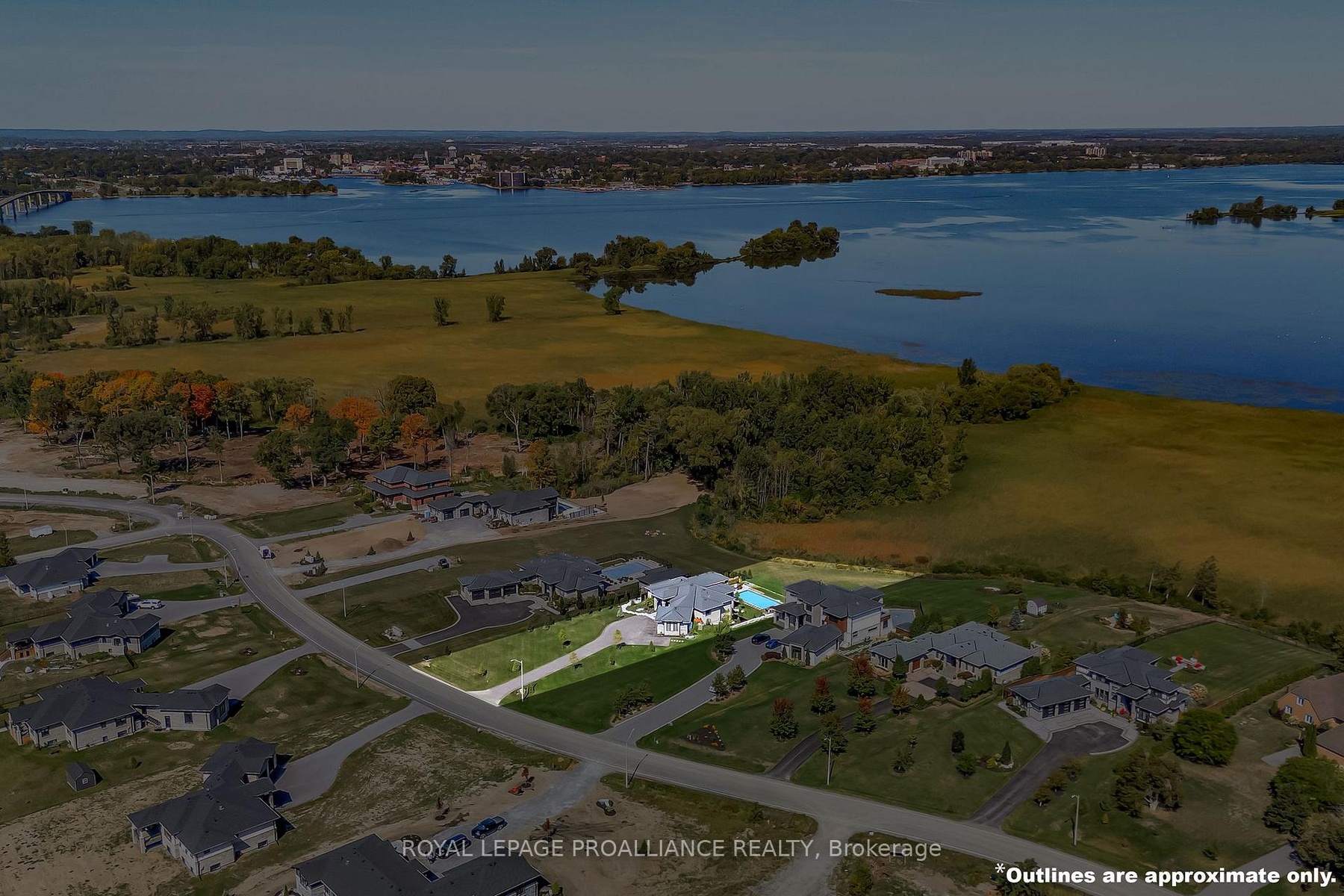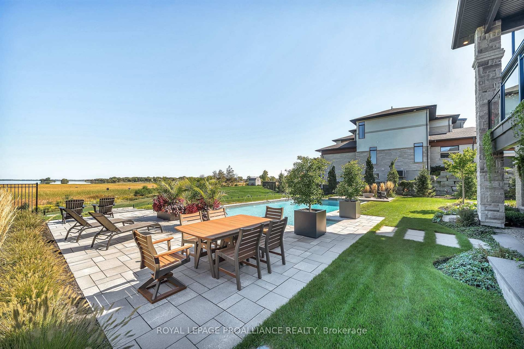 Incomparable home, with keen attention to the interplay of design and lifestyle, and strikingly completed by immaculate landscaping, including resort-style outdoor pool area and pristine surrounds, this stunning 3 bed 3 bath walkout home is an inimitable property in an uncompromising location in prestigious "Watermark on the Bay". Soak in the daily beauty of the ever-changing landscape of Bay of Quinte views, framed by expansive water-view windows at every opportunity. 11" coffered ceiling, and a soaring stone fireplace comfortably defines the striking living space- beautifully balancing grand entertaining with warm sophistication.Gorgeous kitchen designed with true attention to functionality and family, with each element adding ease of use and clean craftsmanship. Serving as the true heart of the home, it seamlessly connects to a generous dining area or versatile den, with garden door to the expansive elevated deck.The primary suite spans the north side of the home, a private retreat with serene views, walk-in closet with built-ins, a custom 5-pc ensuite, and patio door to the deck. Two additional bedrooms rest on the south side of the home, one with ensuite privilege to a well-appointed 3-pc bath.A beautiful home office, spacious mudroom/laundry, with access to a private south facing patio, and door to the double garage with car lift, completes the main floor.Walkout lower level offers the opportunity to add generous living space, bedrooms and a full bath, while extending indoor-outdoor living with access to the covered hot tub and stunning backyard.Meticulously landscaped with ease of maintenance and privacy in mind the curated outdoor spaces compliment the natural surroundings and create a gracious setting for outdoor living and entertaining. Situated just inside Prince Edward County only minutes to the City of Belleville. An undoubtedly rare and uncompromising lifestyle of sophistication, privacy, and distinction awaits. Feel At Home on Navigation Drive.