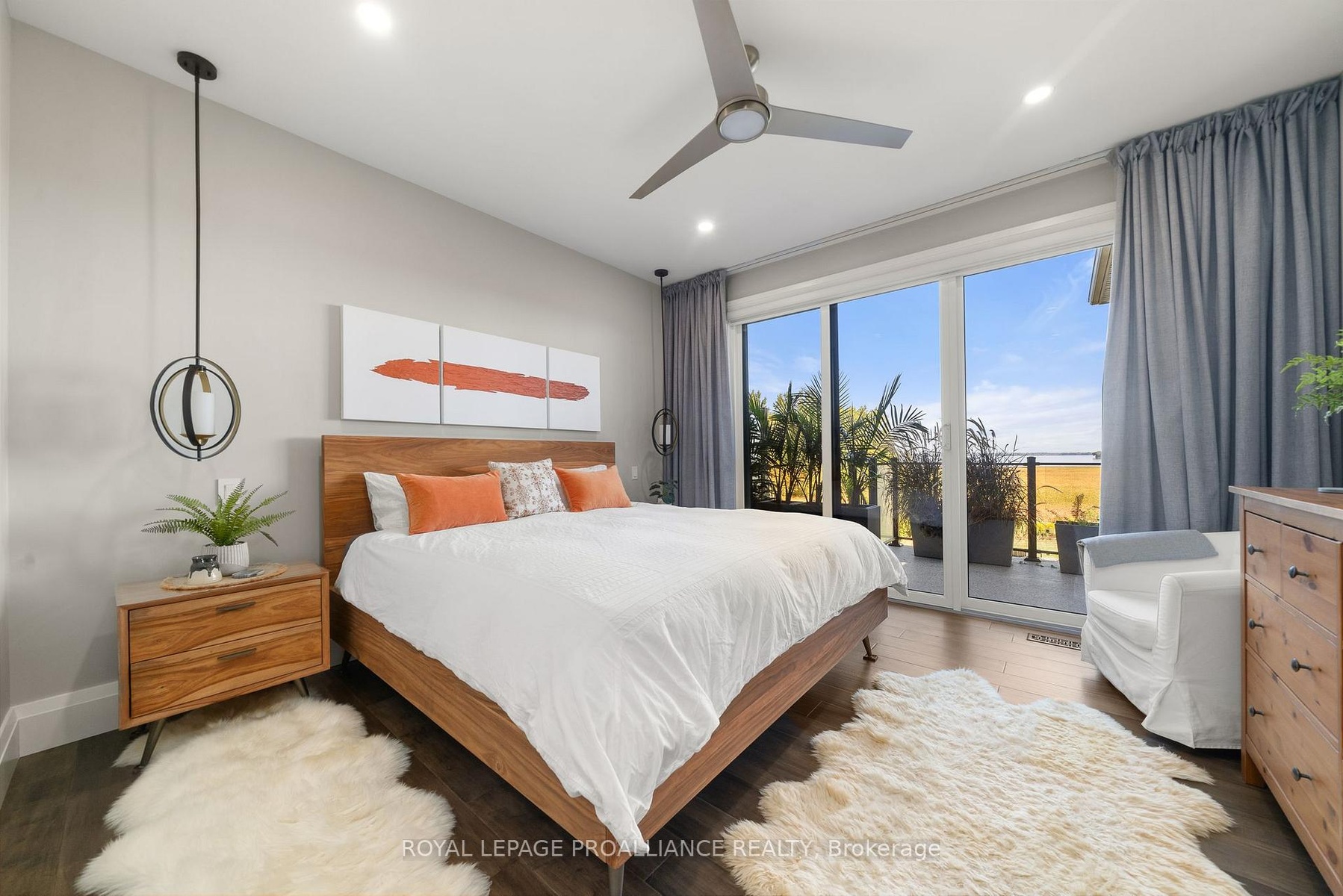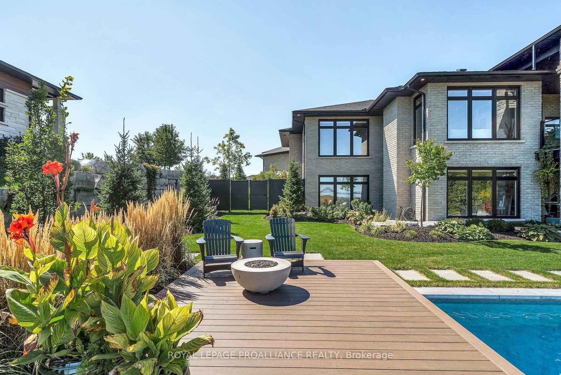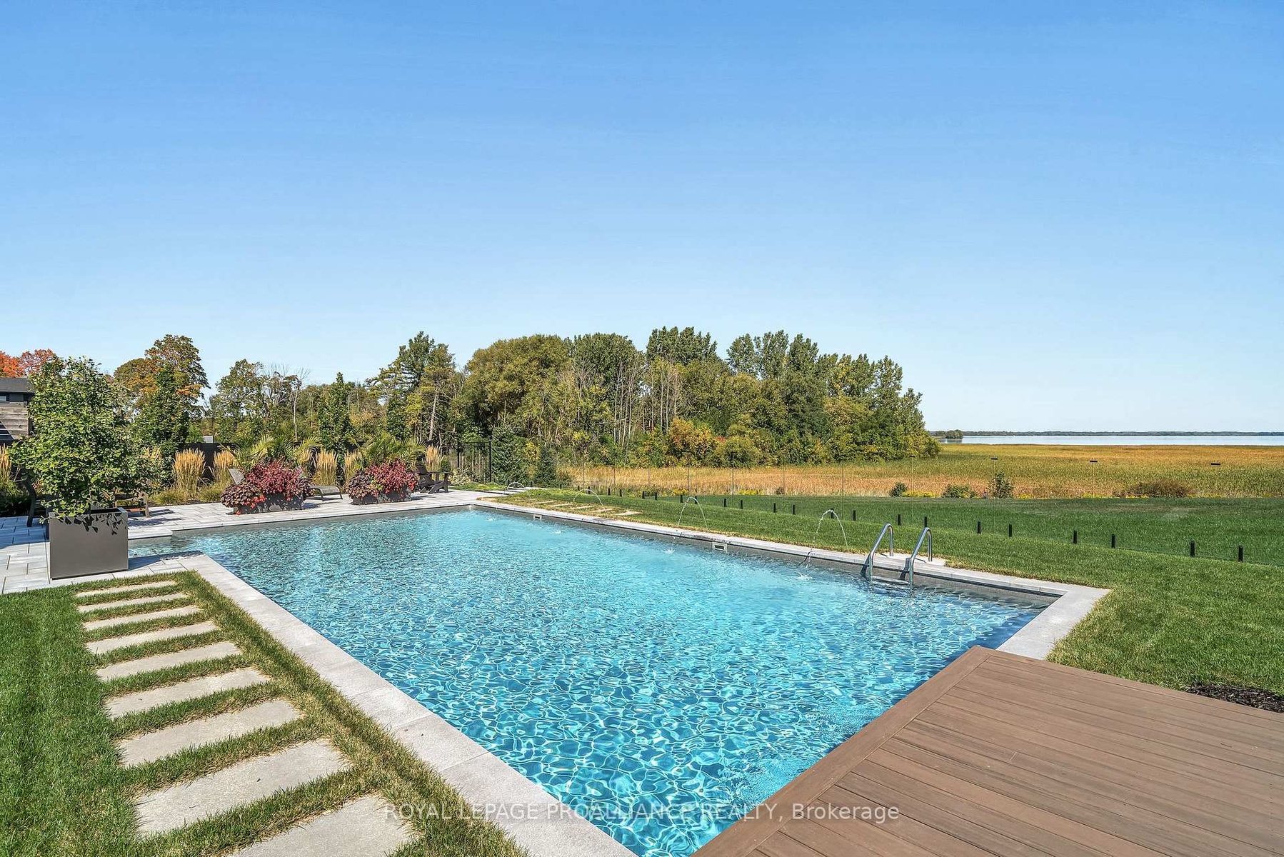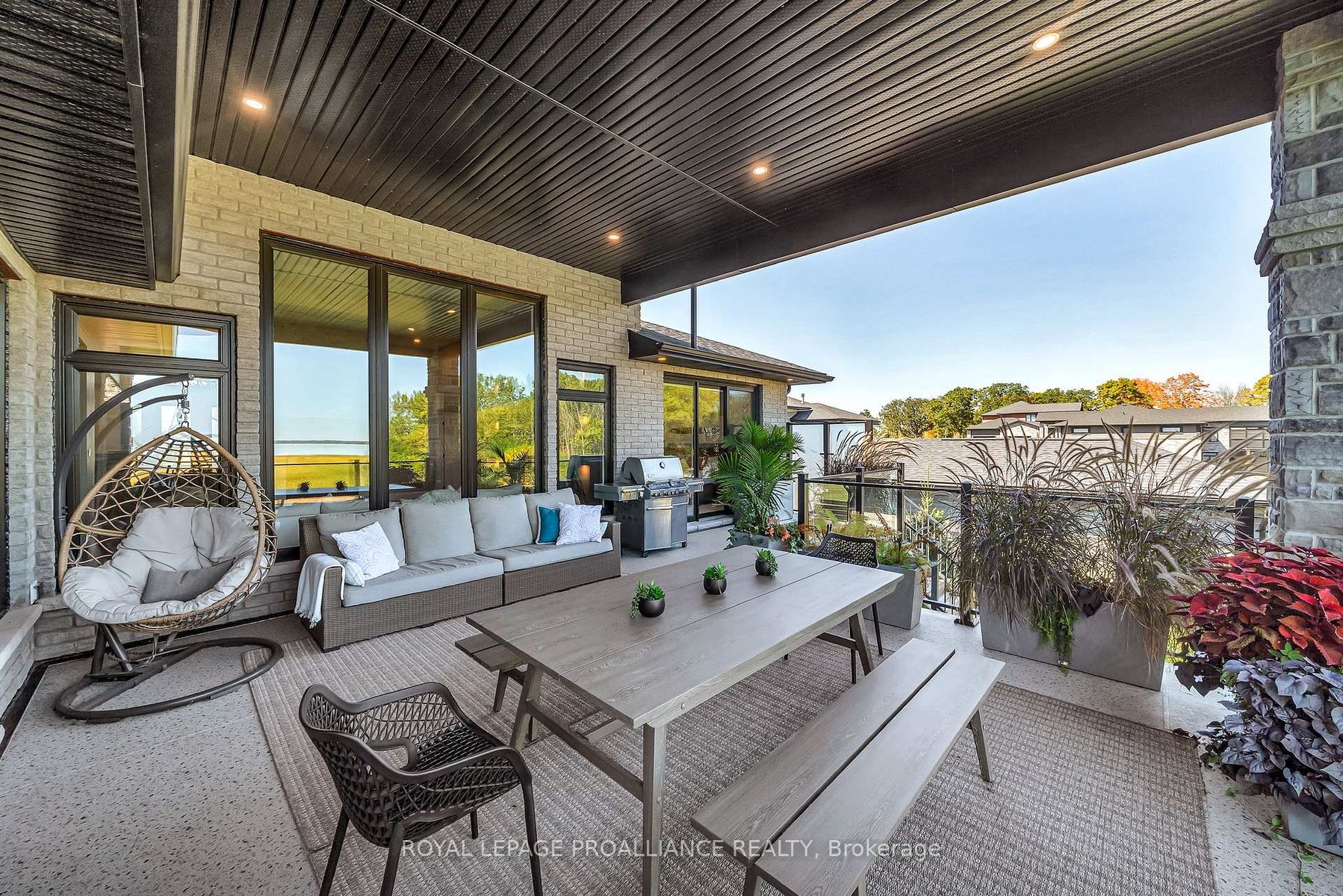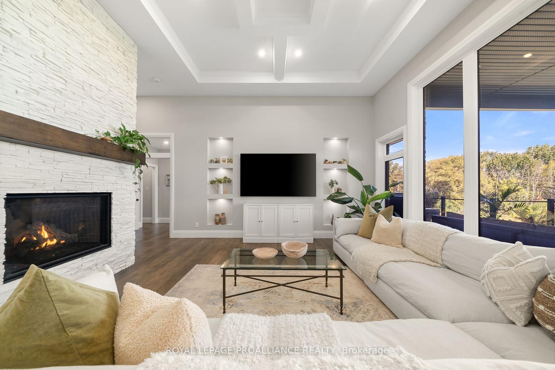 Incomparable home, with keen attention to the interplay of design and lifestyle, and strikingly completed by immaculate landscaping, including resort-style outdoor pool area and pristine surrounds, this stunning 3 bed 3 bath walkout home is an inimitable property in an uncompromising location in prestigious "Watermark on the Bay". Soak in the daily beauty of the ever-changing landscape of Bay of Quinte views, framed by expansive water-view windows at every opportunity. 11" coffered ceiling, and a soaring stone fireplace comfortably defines the striking living space- beautifully balancing grand entertaining with warm sophistication.Gorgeous kitchen designed with true attention to functionality and family, with each element adding ease of use and clean craftsmanship. Serving as the true heart of the home, it seamlessly connects to a generous dining area or versatile den, with garden door to the expansive elevated deck.The primary suite spans the north side of the home, a private retreat with serene views, walk-in closet with built-ins, a custom 5-pc ensuite, and patio door to the deck. Two additional bedrooms rest on the south side of the home, one with ensuite privilege to a well-appointed 3-pc bath.A beautiful home office, spacious mudroom/laundry, with access to a private south facing patio, and door to the double garage with car lift, completes the main floor.Walkout lower level offers the opportunity to add generous living space, bedrooms and a full bath, while extending indoor-outdoor living with access to the covered hot tub and stunning backyard.Meticulously landscaped with ease of maintenance and privacy in mind the curated outdoor spaces compliment the natural surroundings and create a gracious setting for outdoor living and entertaining. Situated just inside Prince Edward County only minutes to the City of Belleville. An undoubtedly rare and uncompromising lifestyle of sophistication, privacy, and distinction awaits. Feel At Home on Navigation Drive.