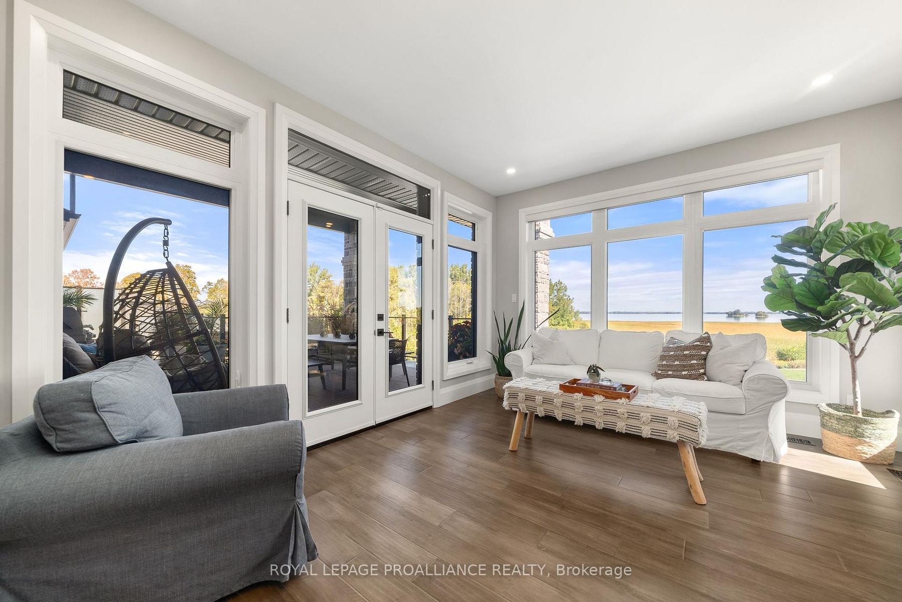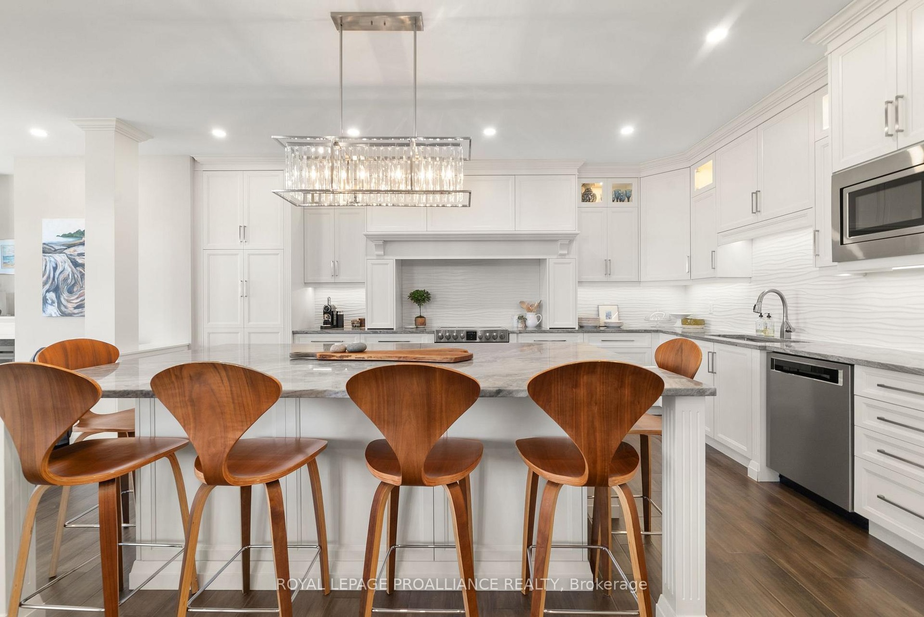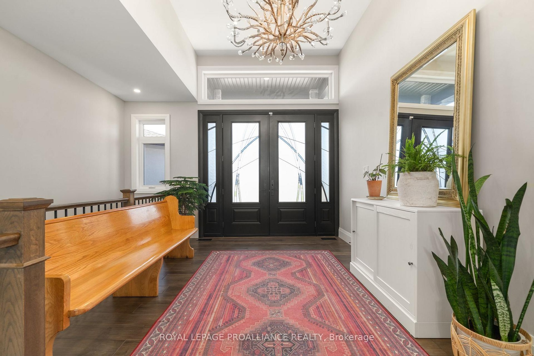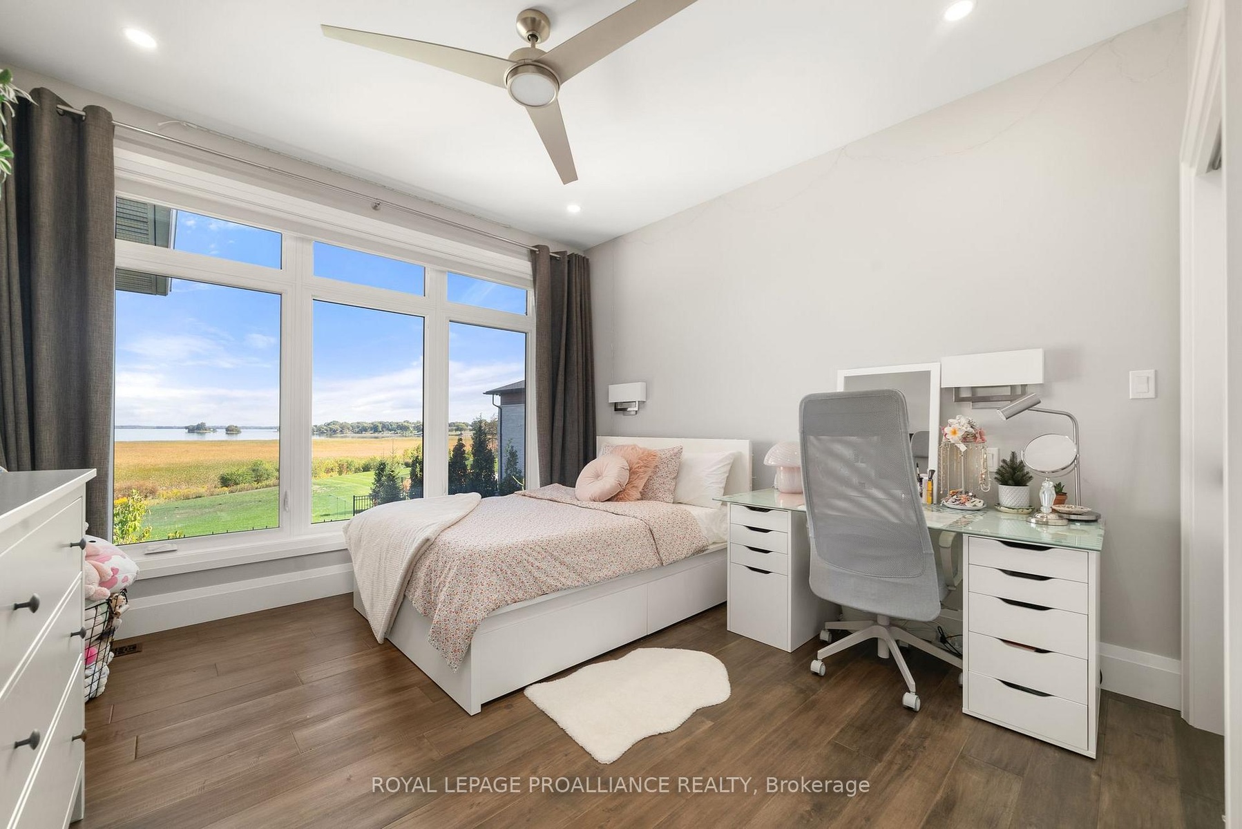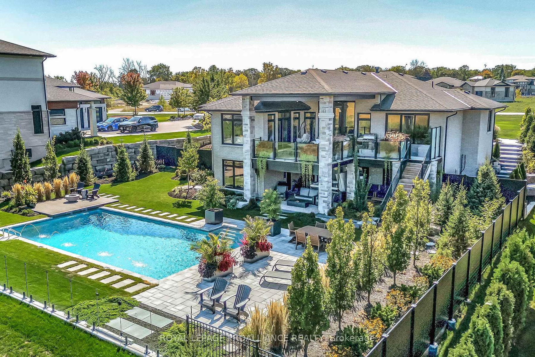 Incomparable home, with keen attention to the interplay of design and lifestyle, and strikingly completed by immaculate landscaping, including resort-style outdoor pool area and pristine surrounds, this stunning 3 bed 3 bath walkout home is an inimitable property in an uncompromising location in prestigious "Watermark on the Bay". Soak in the daily beauty of the ever-changing landscape of Bay of Quinte views, framed by expansive water-view windows at every opportunity. 11" coffered ceiling, and a soaring stone fireplace comfortably defines the striking living space- beautifully balancing grand entertaining with warm sophistication.Gorgeous kitchen designed with true attention to functionality and family, with each element adding ease of use and clean craftsmanship. Serving as the true heart of the home, it seamlessly connects to a generous dining area or versatile den, with garden door to the expansive elevated deck.The primary suite spans the north side of the home, a private retreat with serene views, walk-in closet with built-ins, a custom 5-pc ensuite, and patio door to the deck. Two additional bedrooms rest on the south side of the home, one with ensuite privilege to a well-appointed 3-pc bath.A beautiful home office, spacious mudroom/laundry, with access to a private south facing patio, and door to the double garage with car lift, completes the main floor.Walkout lower level offers the opportunity to add generous living space, bedrooms and a full bath, while extending indoor-outdoor living with access to the covered hot tub and stunning backyard.Meticulously landscaped with ease of maintenance and privacy in mind the curated outdoor spaces compliment the natural surroundings and create a gracious setting for outdoor living and entertaining. Situated just inside Prince Edward County only minutes to the City of Belleville. An undoubtedly rare and uncompromising lifestyle of sophistication, privacy, and distinction awaits. Feel At Home on Navigation Drive.