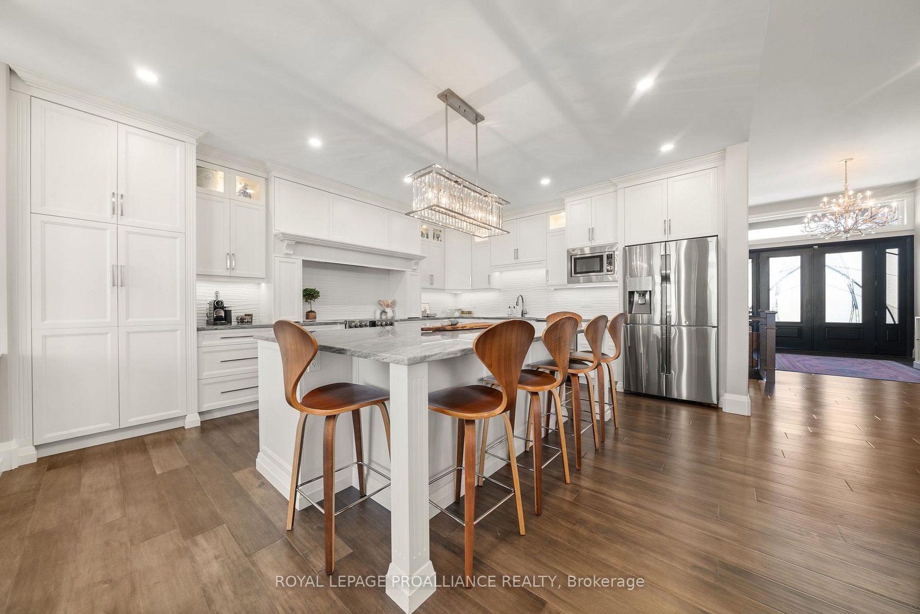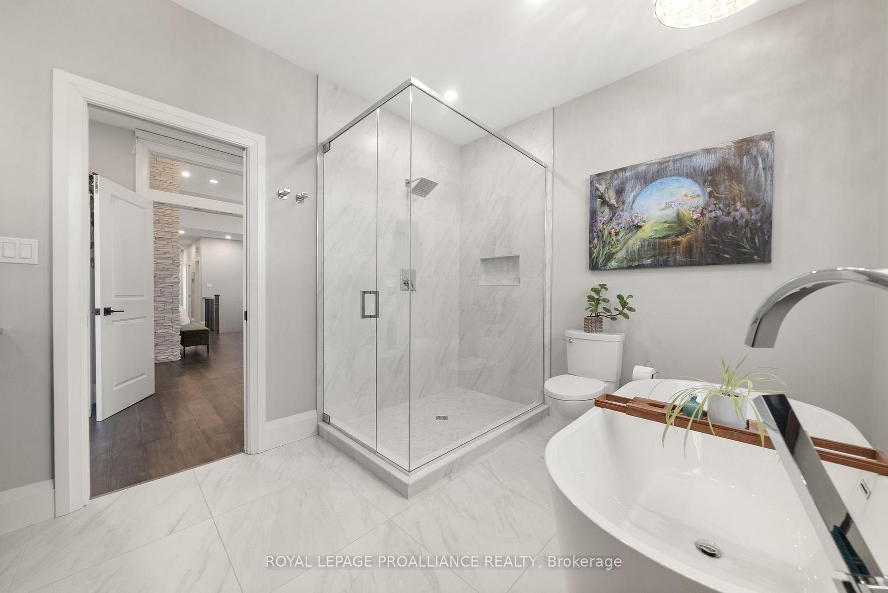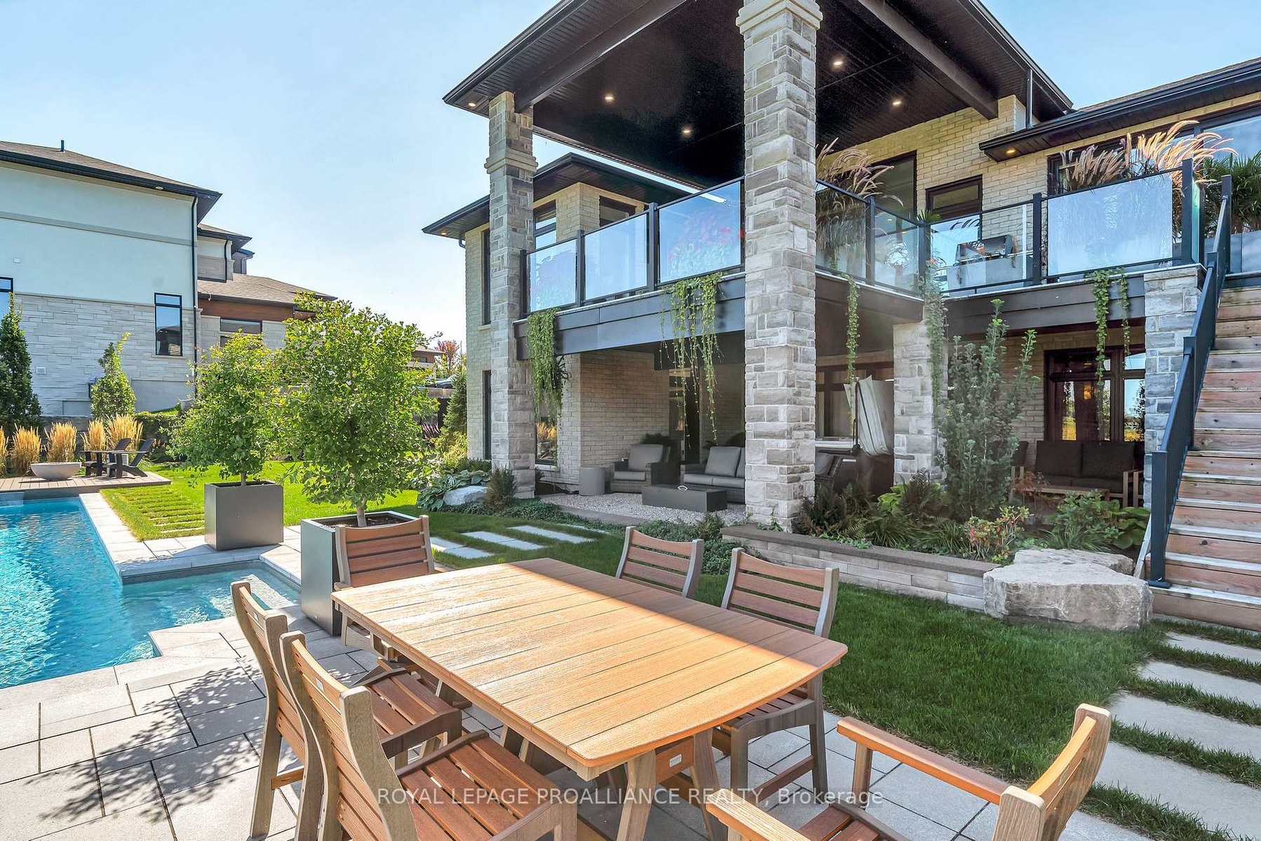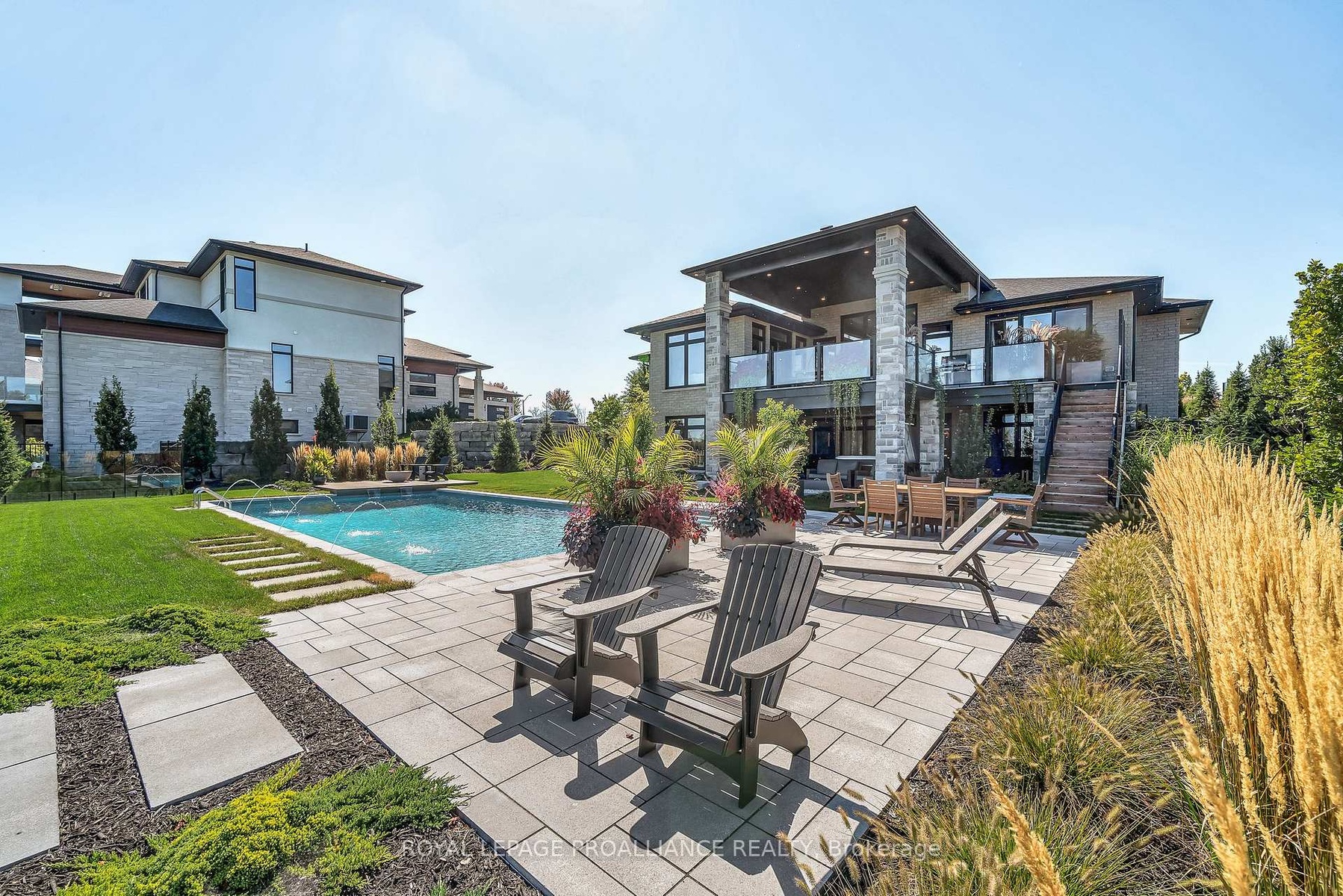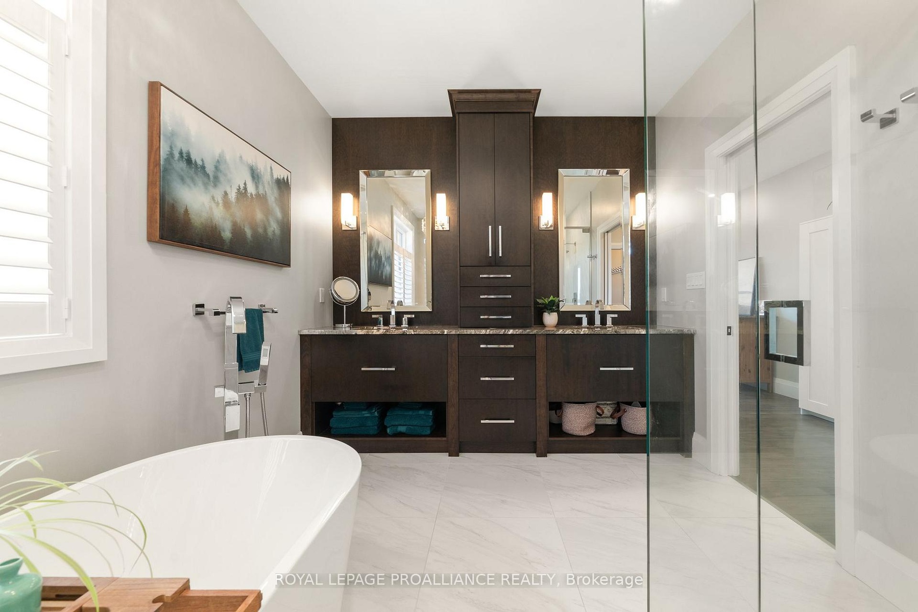 Incomparable home, with keen attention to the interplay of design and lifestyle, and strikingly completed by immaculate landscaping, including resort-style outdoor pool area and pristine surrounds, this stunning 3 bed 3 bath walkout home is an inimitable property in an uncompromising location in prestigious "Watermark on the Bay". Soak in the daily beauty of the ever-changing landscape of Bay of Quinte views, framed by expansive water-view windows at every opportunity. 11" coffered ceiling, and a soaring stone fireplace comfortably defines the striking living space- beautifully balancing grand entertaining with warm sophistication.Gorgeous kitchen designed with true attention to functionality and family, with each element adding ease of use and clean craftsmanship. Serving as the true heart of the home, it seamlessly connects to a generous dining area or versatile den, with garden door to the expansive elevated deck.The primary suite spans the north side of the home, a private retreat with serene views, walk-in closet with built-ins, a custom 5-pc ensuite, and patio door to the deck. Two additional bedrooms rest on the south side of the home, one with ensuite privilege to a well-appointed 3-pc bath.A beautiful home office, spacious mudroom/laundry, with access to a private south facing patio, and door to the double garage with car lift, completes the main floor.Walkout lower level offers the opportunity to add generous living space, bedrooms and a full bath, while extending indoor-outdoor living with access to the covered hot tub and stunning backyard.Meticulously landscaped with ease of maintenance and privacy in mind the curated outdoor spaces compliment the natural surroundings and create a gracious setting for outdoor living and entertaining. Situated just inside Prince Edward County only minutes to the City of Belleville. An undoubtedly rare and uncompromising lifestyle of sophistication, privacy, and distinction awaits. Feel At Home on Navigation Drive.