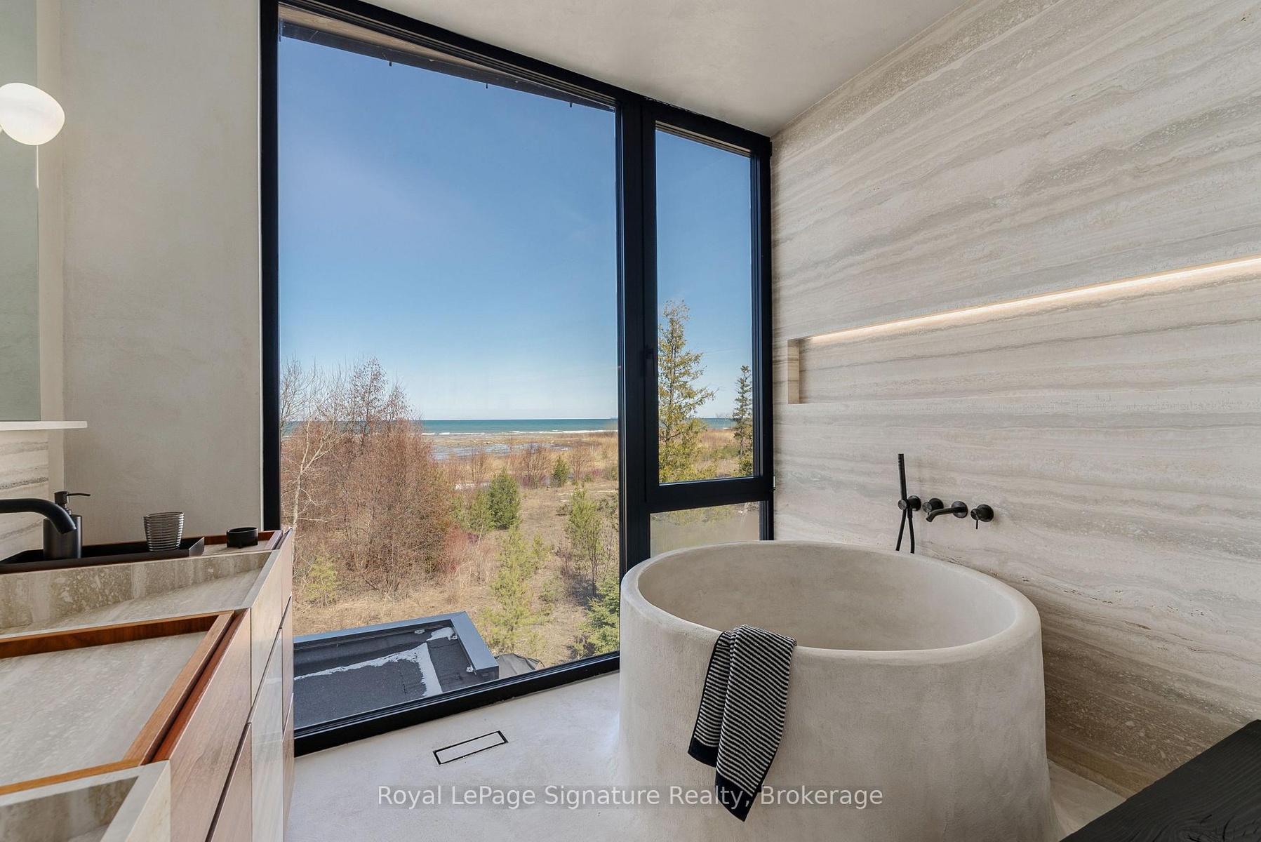 Spend your ski season in luxury at this exceptional, newly built home in the heart of The Blue Mountains - located just steps from Georgian Peaks Ski Club. Designed with both comfort and style in mind, this property offers the perfect blend of convenience, sophistication, and stunning views of the slopes and Georgian Bay. The open-concept main floor is filled with natural light, featuring floor-to-ceiling windows that frame the snow-covered hills beyond. A custom chef's kitchen flows seamlessly into the dining and living areas, where a striking wood-burning fireplace creates a warm and inviting atmosphere - ideal for relaxing after a day on the slopes. Heated polished concrete floors run throughout the main level, ensuring cozy comfort all winter long. Upstairs, four spacious bedrooms provide room for family and guests, each offering peaceful views of Georgian Peaks or the surrounding winter landscape. The primary suite is a true retreat, featuring a walk-in closet, spa-like five-piece ensuite, and a serene meditation loft for quiet moments between ski days. A second-floor family room and dedicated laundry add to the home's functionality and ease. This fully automated home features a state-of-the-art Lutron system for effortless control of lighting and ambiance, along with a smart snow melt system to keep the driveway and walkway clear. A heated garage with boot drying system, ample storage, and a mudroom with an additional washer/dryer make coming and going with ski gear a breeze. Experience the ultimate Blue Mountains ski season in a home that combines modern luxury with unmatched proximity to the lifts! List price per month and all inclusive