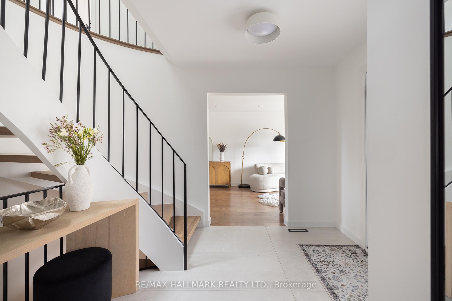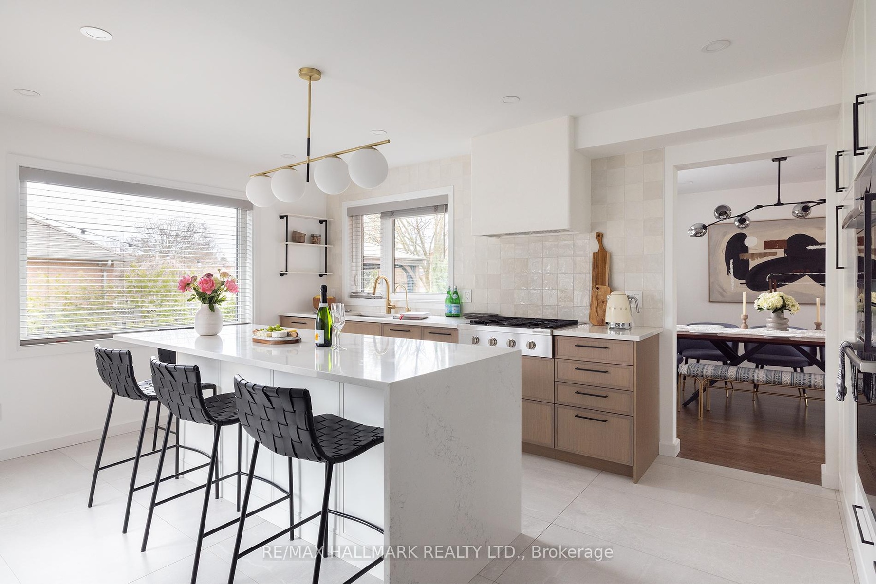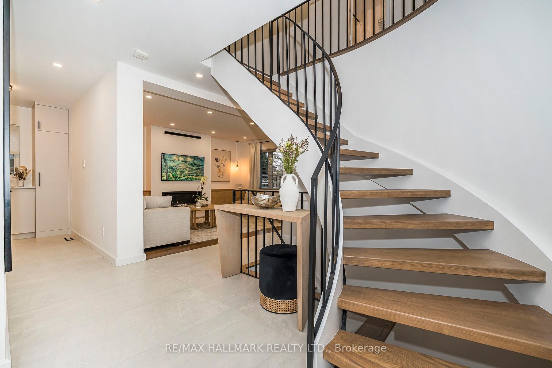 3,032SF of livable space and near $400K in renos. This stunning home was updated over a six-year period and offers three-plus-one bedrooms, four bathrooms and is situated on a corner lot. Tasteful modern updates were completed in neutral tones and high-end finishes. You enter the home into an inviting foyer with heated ceramic flooring and floating circular staircase with oak risers. To the left, a main floor powder room and separate laundry room with garage access and to the right, an open-concept living and dining room with large windows that let in natural light and views of mature trees and greenery. The main floor family room, visible from the foyer is open to the kitchen and has a cozy gas fireplace. The kitchen, completed in 2021, is a showstopper that features custom-built cabinetry, in a two-tone oak and white finish, with integrated fridge and built-in dishwasher. The sleek central island has a quartz waterfall countertop and provides extra counter space and area for seating. The kitchen has a water filter, custom tile backsplash and high-end appliances. A sliding glass door leads to a large deck overlooking the landscaped backyard. The bright and airy second floor features a skylight at the top of the stairs. All three bedrooms have custom closets and the primary is complete with ensuite and soaker tub making it the perfect personal retreat. An additional bedroom can be found in the spacious basement and it includes a semi-ensuite, built-in desk and walk-in closet. The dedicated recreational room has a wet bar, custom cabinetry, quartz counter and wall backsplash complete with fridge and built-in dishwasher. This home offers central air conditioning, a two-car garage and rough-in for an electric vehicle charger. There are pot lights in every room and in the soffits surrounding the exterior which provides downlighting and enhanced visibility. The home was updated with energy-efficient windows in 2018 (main floor) and 2022 (basement). CHECK OUT THE VIDEO!