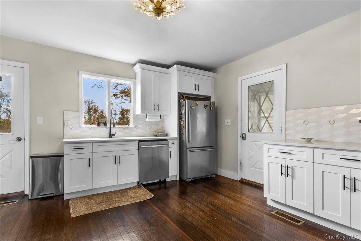 Welcome to this beautiful colonial located in the Goshen Central School District. This 2460 SF home is perfectly set on a little over 1 acre overlooking the Otter Kill Creek. You will fall in love with this home as soon as you enter with its warm feeling and rustic charm. On the first floor you will find the spacious living room , family room, huge bright formal dining room and large windows that flow seamlessly into the gorgeous kitchen with stunning cabinetry and countertops, hardwood floors and stainless steel appliances. In addition the first floor offers the convenience of a half bathroom. Continue to the second floor you will find the spacious owners suite along with 3 additional bedrooms. There is a full walk up unfinished attic that is ideal for additional storage or for increased livable space. For the car enthusiast, contractor, handyman or art collector you can enjoy an oversized detached garage . Updates include roof, heat, AC, kitchen, bathrooms, hardwood floors, electric and septic system. Enjoy the private rear porch and yard complete with a firepit area overlooking the flowing creek . Enjoy kayaking right out your back yard. Commuters will love the location just minutes from the Metro-North train station, making traveling to NYC very convenient. Just minutes from all major NYC commuting channels, award winning restaurants, wineries, farm stands and the areas best shopping. Seller says sell !!!