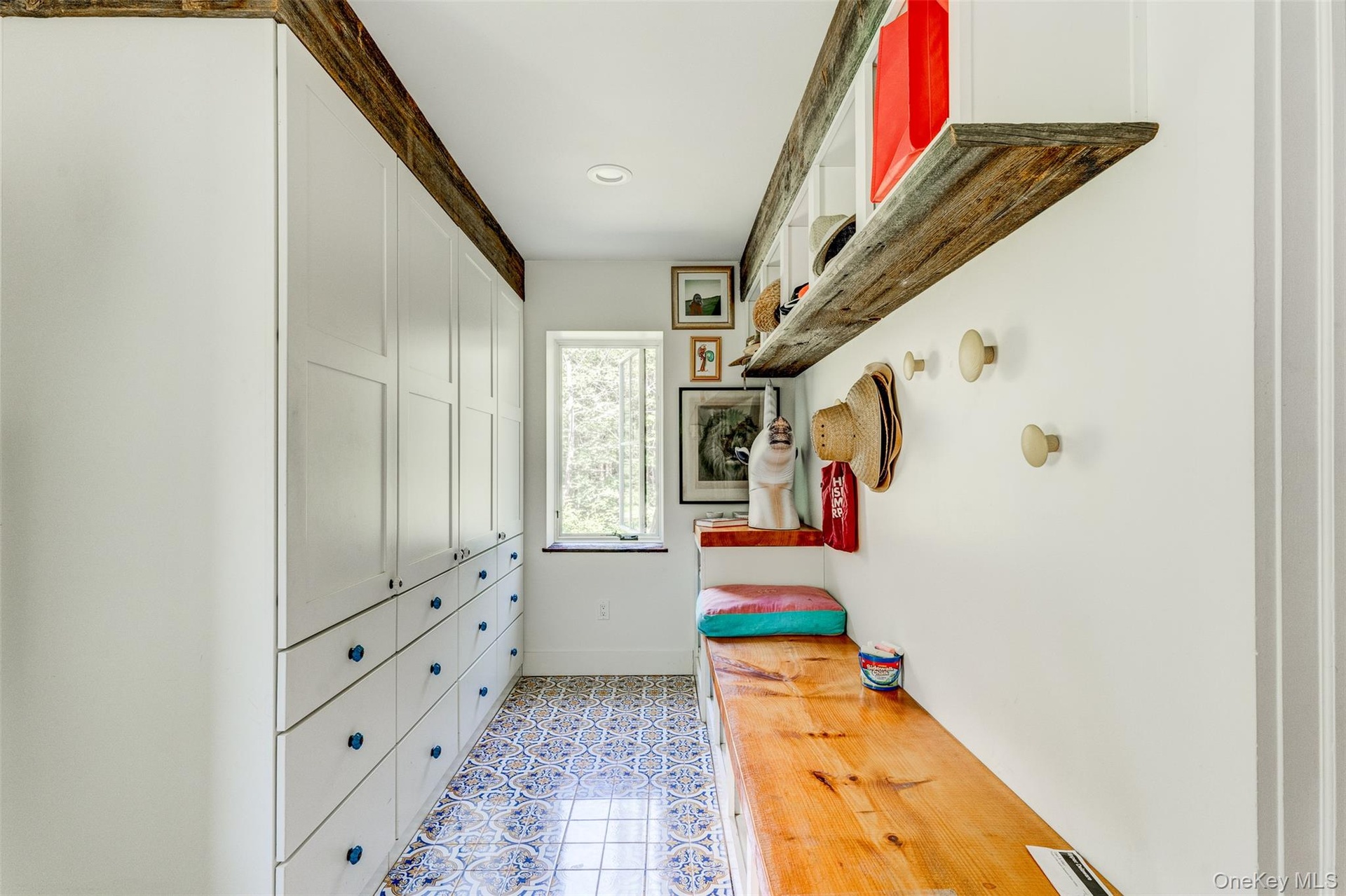- Mudroom featuring light tile patterned floors and recessed lighting