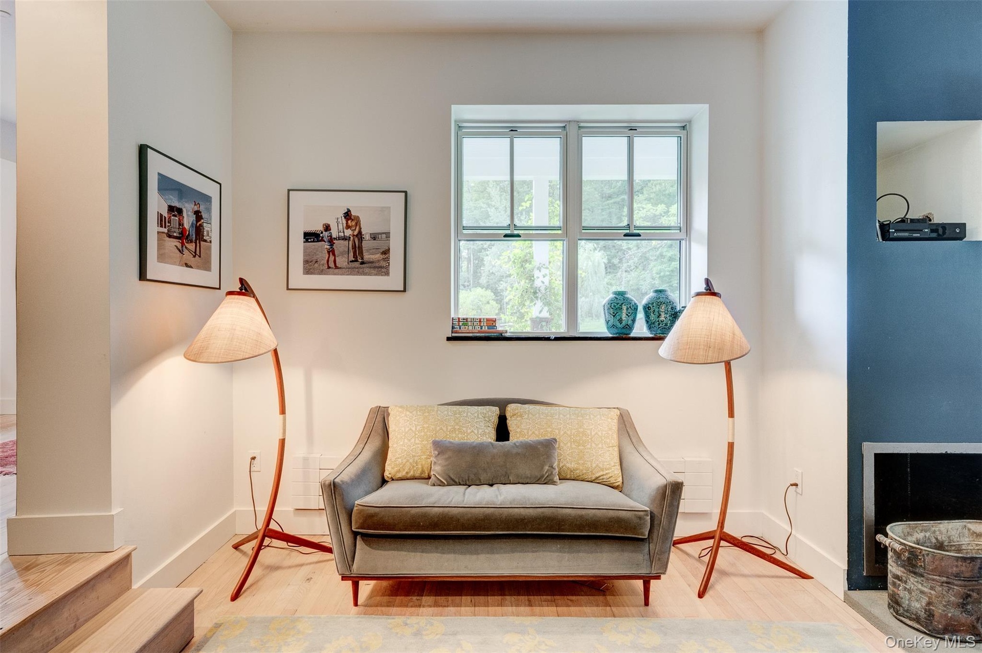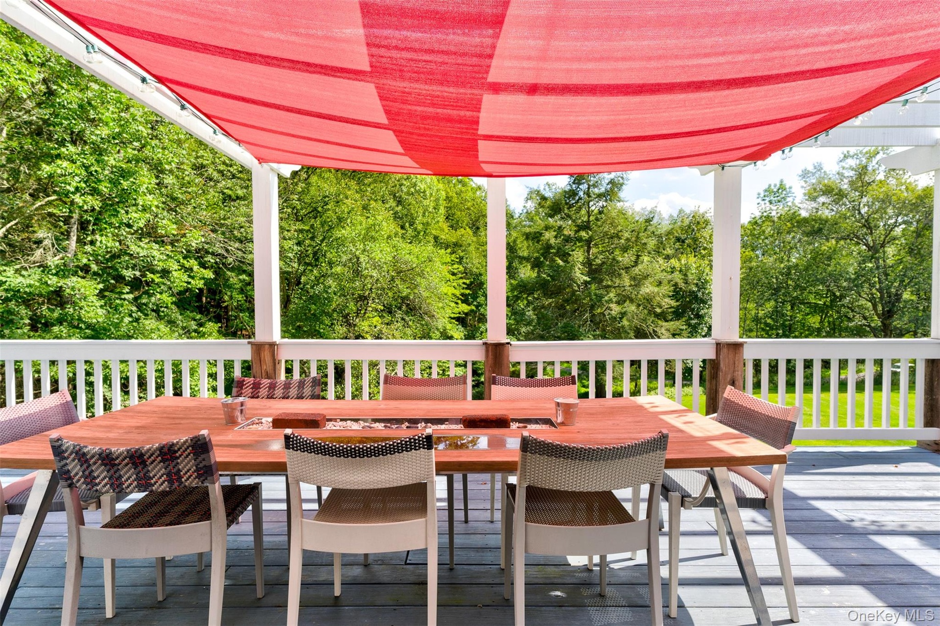The sunken living room features a high-efficiency wood-burning fireplace and a cozy movie watching on a wall-mounted TV. The open-design kitchen is perfect for dinner parties, with four barstools where guests can sit, sip cocktails, and chat. Adjacent to the kitchen, the dining area has sliding doors that lead to the dining porch. A trellis allows wisteria to form natural shade on warm summer days, and a grill stands at the ready. The 7 bedrooms are spread across 3 floors. The primary suite on the 2nd floor has beautiful light and a deep soaking tub, ideal for unwinding after a stressful day lounging by the pool or after a winter hike. Four other BRs line the long hall.
