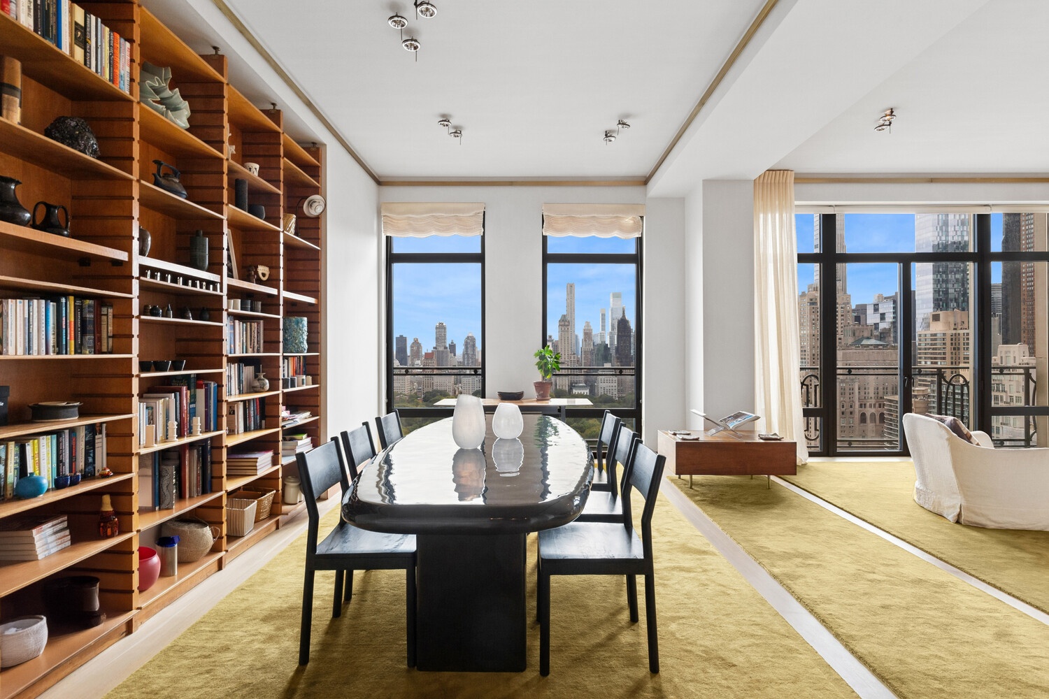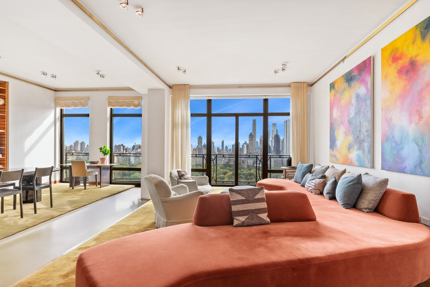 Masterfully designed by Axel Vervoordt, this residence blends sophistication with comfort, making it ideal for both everyday living and grand entertaining. A gracious entry gallery opens into a spectacular living room and library featuring brass moldings, custom built-ins, pocket doors, and Juliette balconies overlooking Central Park's Great Lawn. The primary suite is a true retreat, showcasing dramatic west-facing views, an oversized Calcutta marble bathroom with soaking tub, glass-enclosed shower, dual vanity, and an expansive walk-in closet with additional built-ins. The secondary suite offers equally impressive western views and a limestone-clad en-suite bath. Additional highlights include a powder room, white oak floors, custom moldings, brass accents, automated shades, integrated sound system, and a humidification system. The chef's kitchen is outfitted with top-of-the-line appliances including Sub-Zero, Bosch, and Thermador, paired with black Corian countertops and bespoke cabinetry.