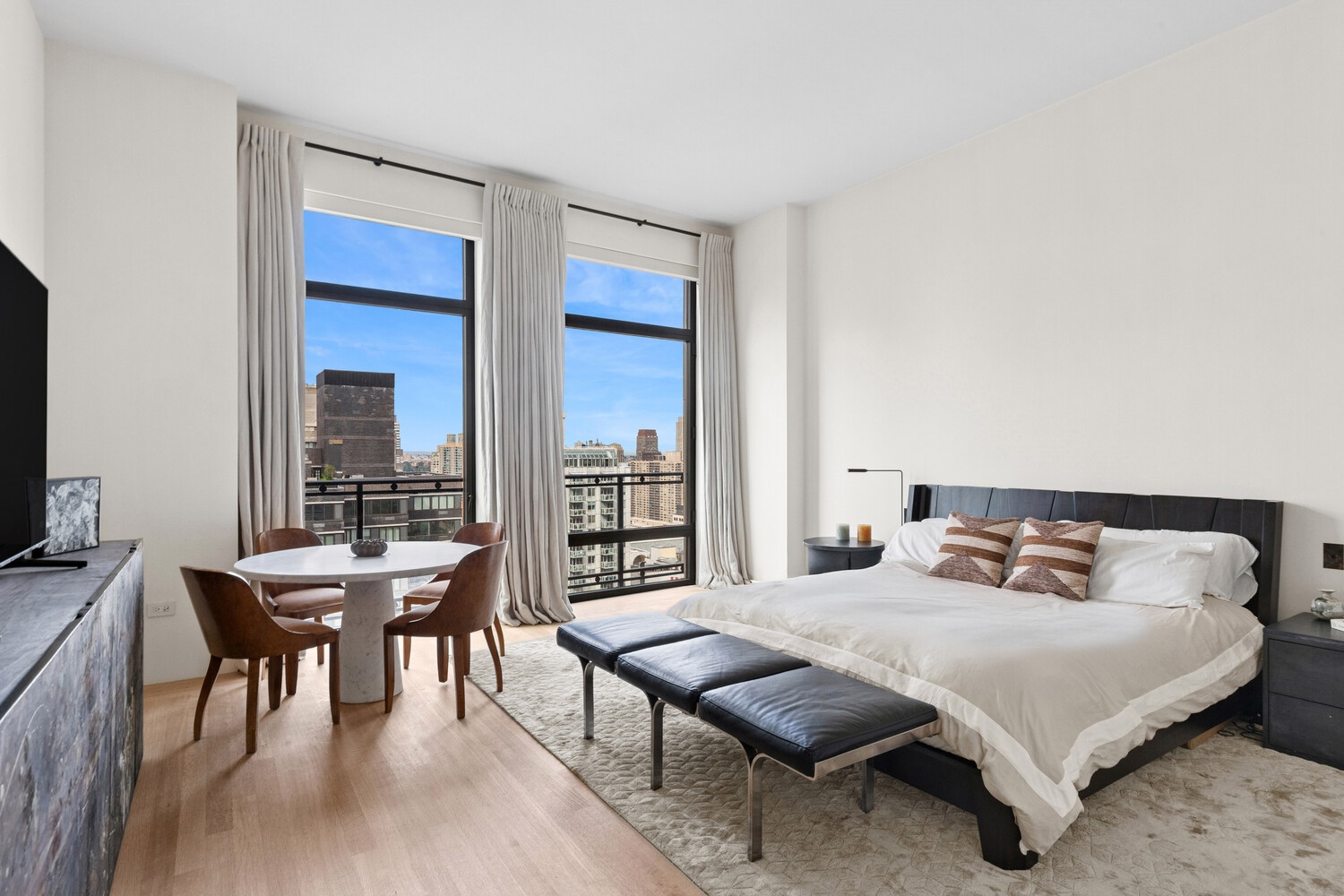 Perched on the 26th floor with sweeping views of Central Park, this expansive two-bedroom, two-and-a-half-bathroom home spans 2,367 square feet of refined living space. Soaring 11-foot ceilings, eastern and western exposures, and floor-to-ceiling windows frame breathtaking panoramas of Central Park and the city skyline.