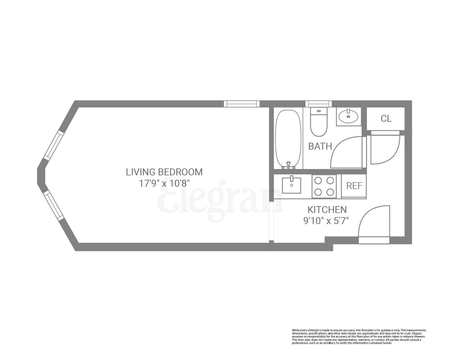 The home boasts beautiful hardwood floors, exposed brick walls, and a fully equipped galley kitchen. The windowed bathroom is complete with a full bathtub and classic subway tile, adding to the apartment’s prewar charm and functionality.