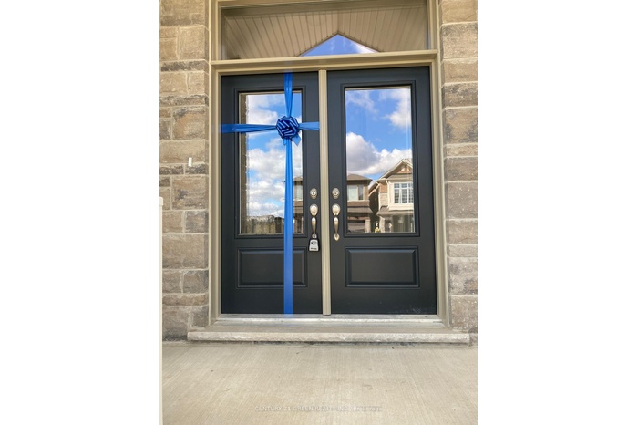 Welcome to 283 Rosenberg Way, a brand new, never-lived-in 4-bedroom, 4-bathroom home boasting approximately 2,600 sq. ft. of beautifully upgraded living space in Wildflower-one of Kitchener's most desirable new communities. Built by Mattamy Homes and situated on a premium ravine lot with tranquil pond views, this home offers a rare blend of luxury, comfort, and functionality. The thoughtfully designed layout features a separate family room and a spacious great room with walk-out balcony, perfect for relaxing or entertaining. The main floor showcases upgraded hardwood flooring and a gourmet kitchen with quartz countertops, a large center island, modern cabinetry, gas stove, and brand-new stainless steel appliances. An elegant electric fireplace adds warmth to the living space. Upstairs, the home offers four generously sized bedrooms, including a luxurious primary suite with spa-like ensuite, double sinks, and walk-in closet. A second bedroom features a private ensuite, while the third and fourth bedrooms are generous sizes. The upgraded hardwood staircase and second-floor laundry with stainless steel appliances add convenience and elegance. With premium finishes throughout and easy access to Highway 401, parks, schools, and amenities, this move-in-ready home is a must-see in a thriving community.