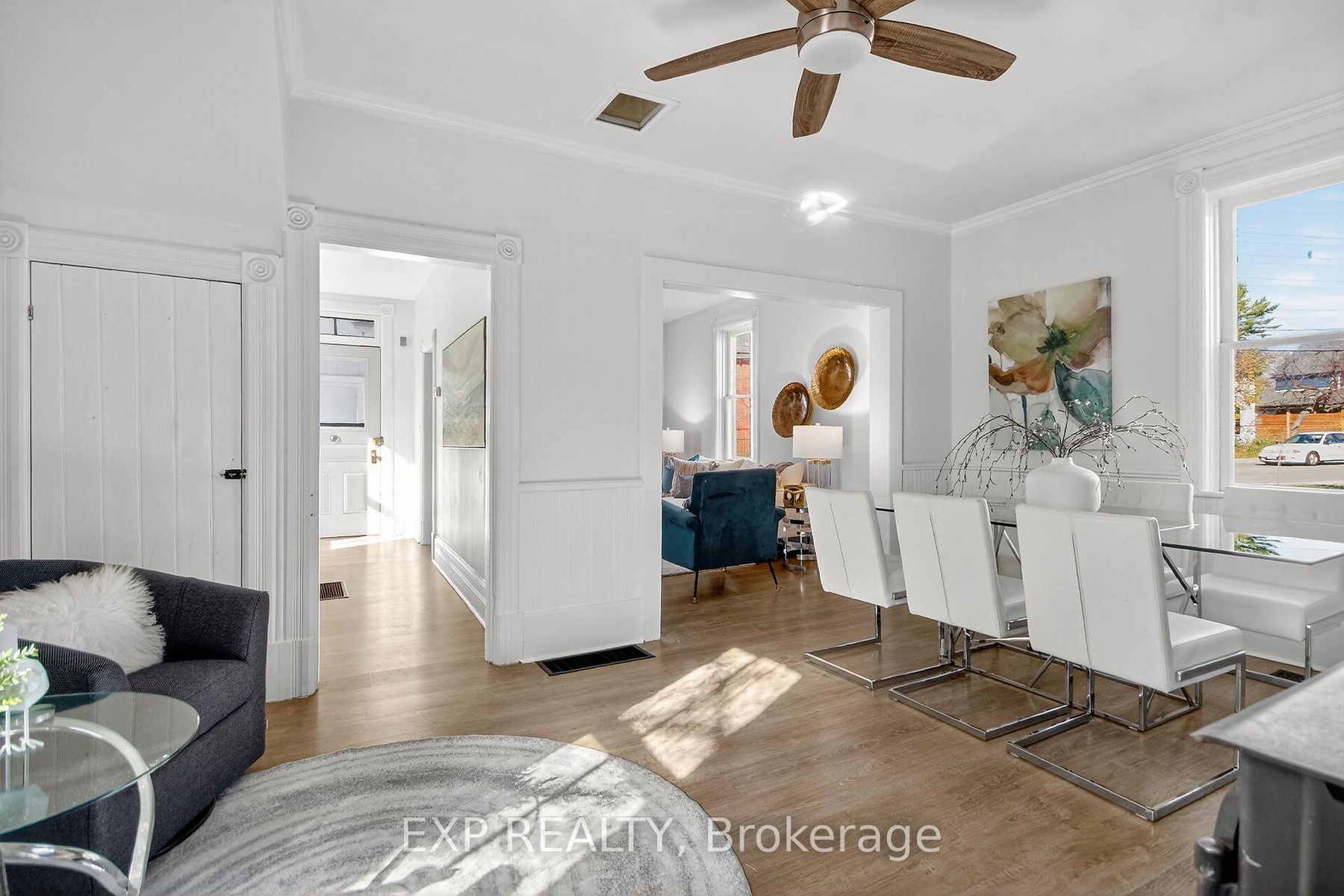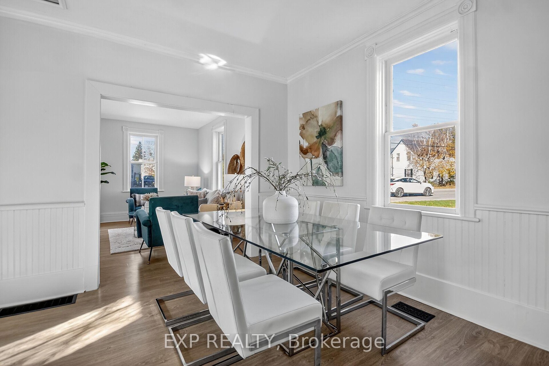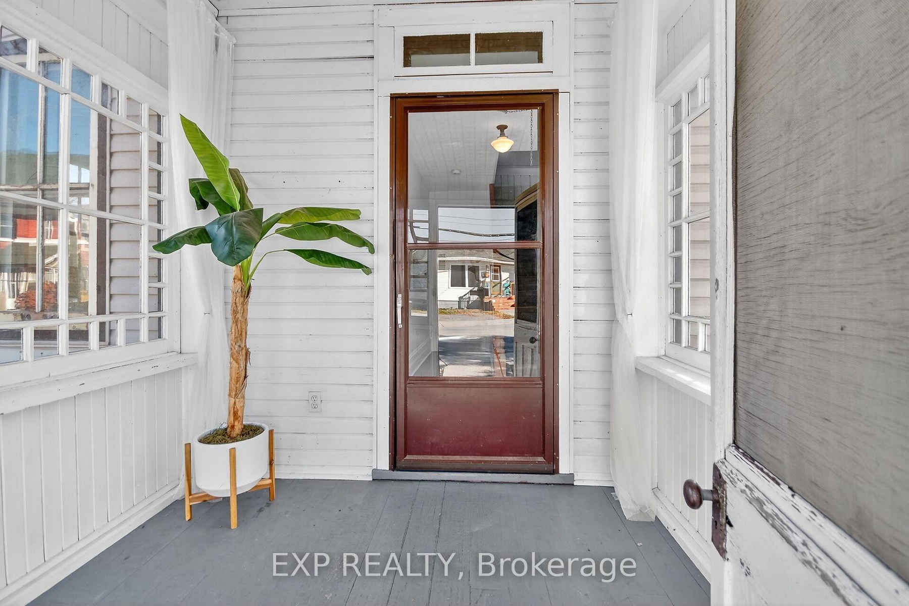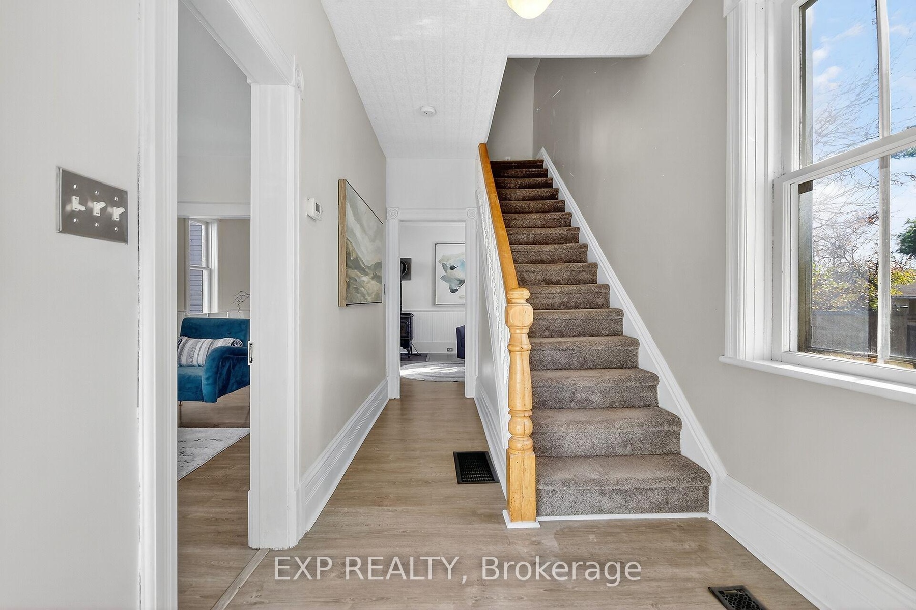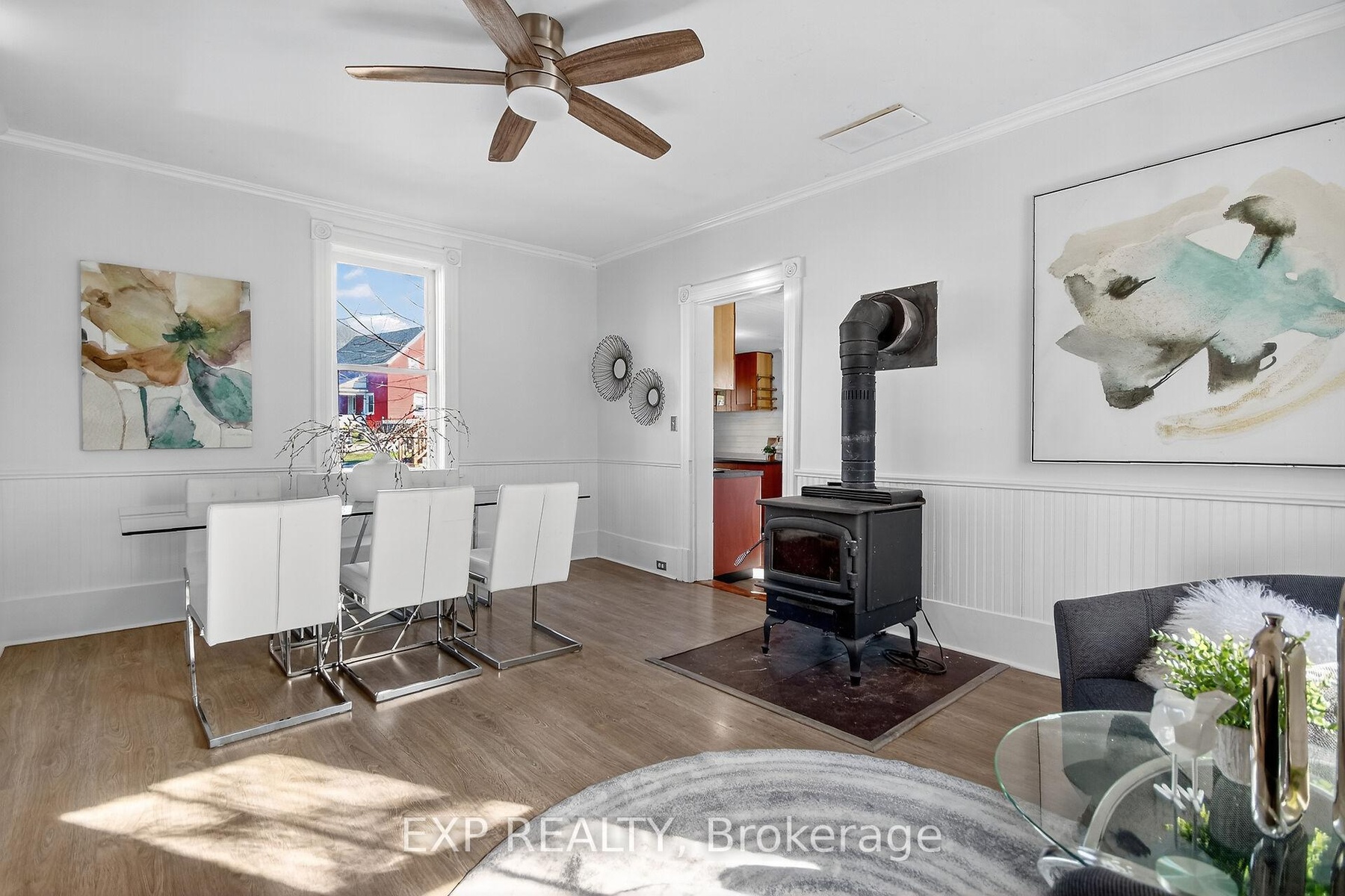 Experience the timeless appeal of 95 Main Street, a charming 1900 Victorian home in the vibrant heart of Almonte. Rich with original character, this vintage home features wide baseboards, lofty ceilings, and a classic 3-season front porch-perfect for morning coffees and warm welcomes. Inside, modern comforts embrace historic charm: easy-care vinyl flooring runs throughout the main level, complemented by newly replaced windows that fill each space with natural light.The open, sunlit living room flows into a large dining area anchored by a cozy wood-burning stove-a perfect gathering spot on winter evenings. The homey kitchen is equipped with stainless steel appliances and convenient in-unit laundry, while the attached shed offers added storage and handy backyard access. Upstairs, unwind in a vintage-inspired bath with a claw-foot tub and pedestal sink. The bright, spacious primary bedroom boasts high ceilings and plentiful storage, and two additional bedrooms (one with a closet, the second without). Plush comfortable carpeting throughout the second floor. Outside, find tandem parking for four vehicles and a fully fenced, generous yard with a large deck-an ideal retreat for children and pets. Moments from the OVR Trail, library, and the shops and cafes of Mill Street, this is Almonte living at its best. Welcome to 95 Main Street ~ a beautiful blend of history, comfort, and community.