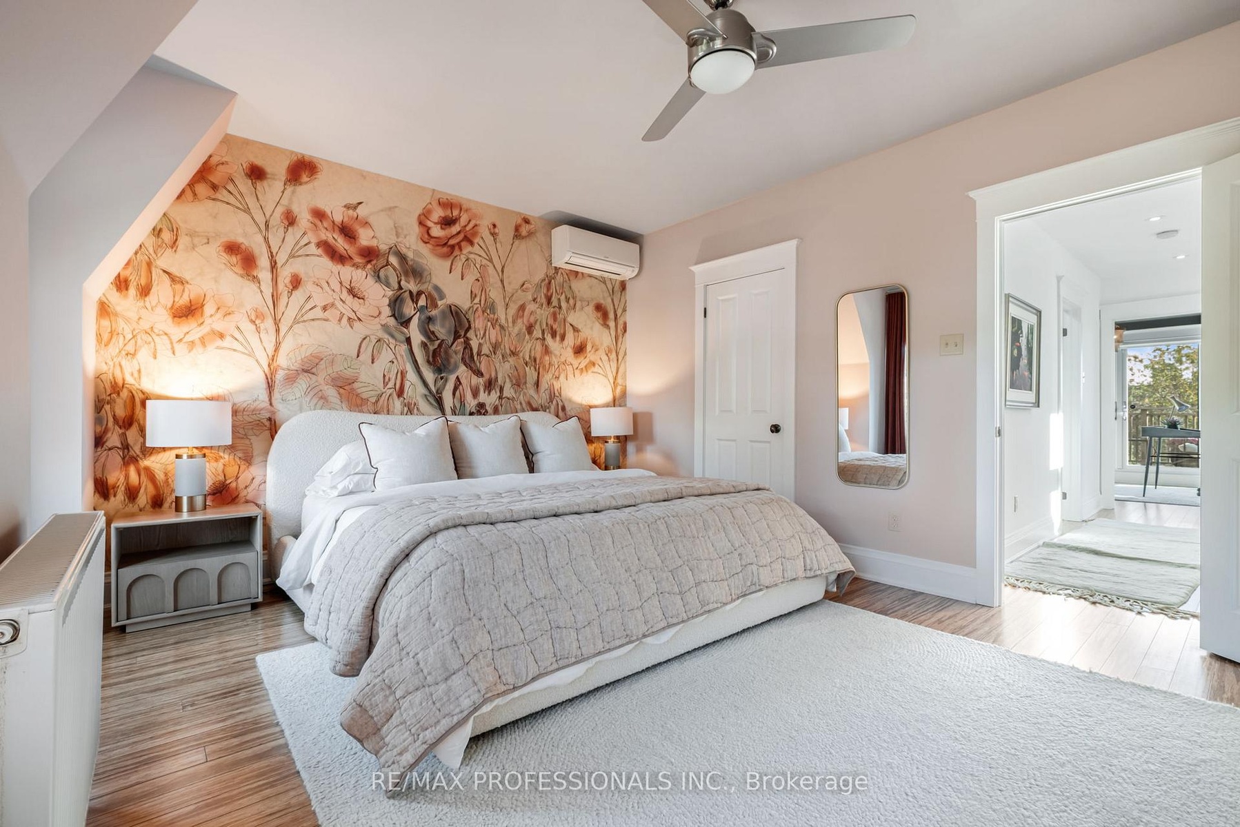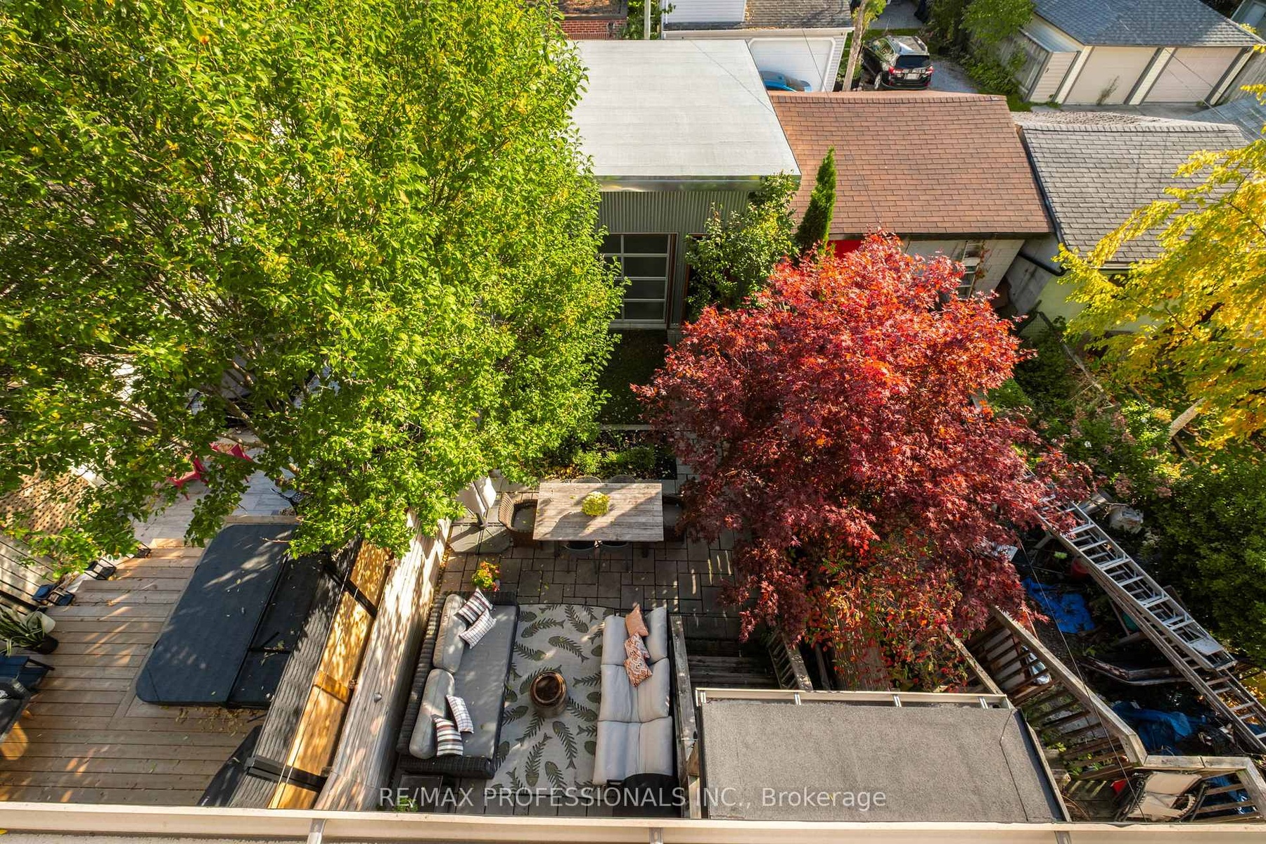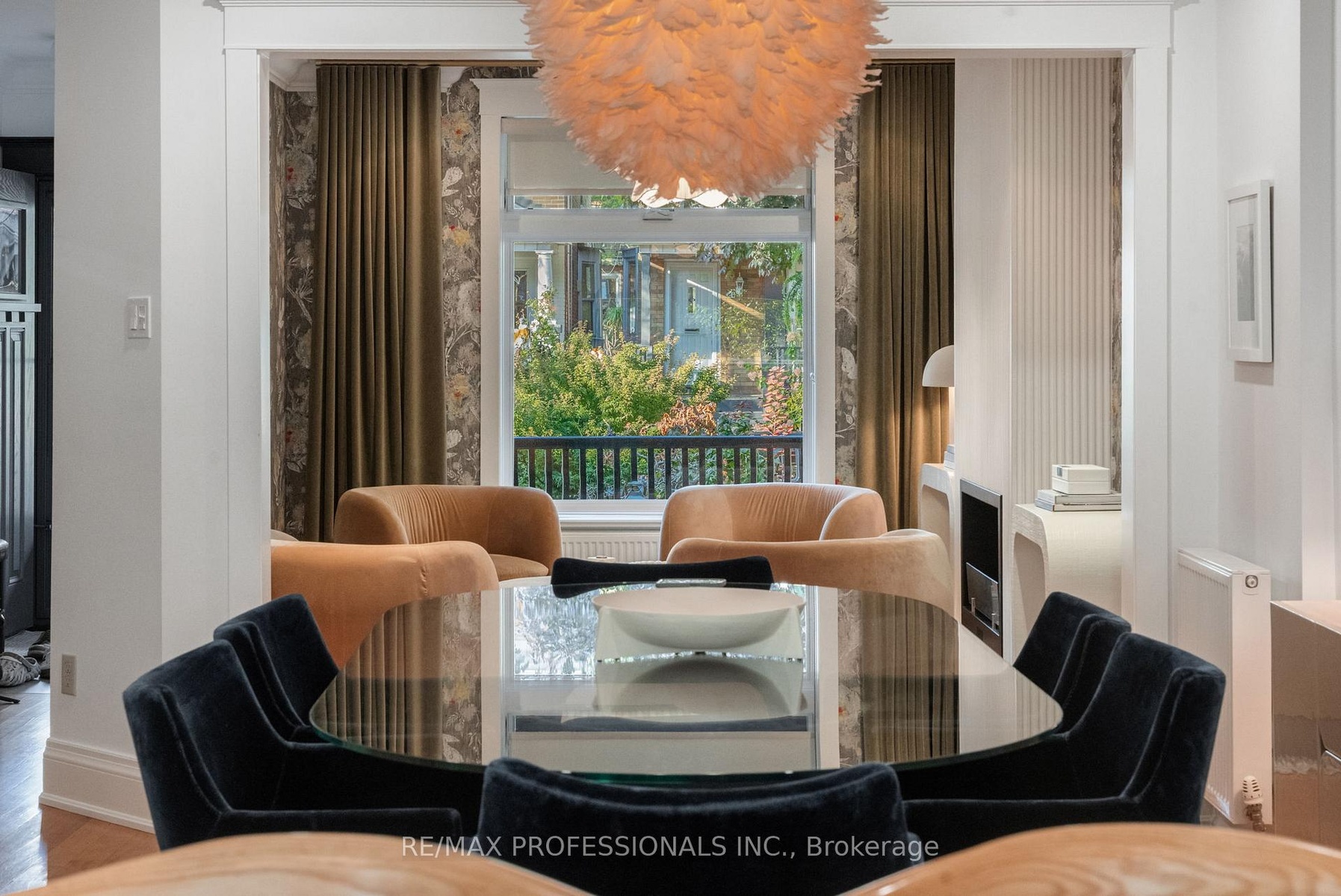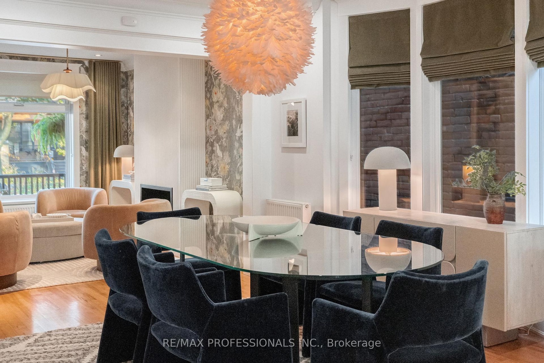 In the Heart of Roncesvalles Village, this masterfully renovated detached home blends designer luxury with everyday comfort. Step inside to a stunning open-concept main floor where custom plastered fluting, seamlessly integrated into the new bio-fuel fireplace, and elegant lighting create an elevated yet welcoming atmosphere. Designer cork wallpaper and custom window treatments add texture and warmth. The chef's kitchen shines with artisanal tile backsplash, refaced cabinetry, custom fluting details, a custom built pantry, high-end stainless appliances, and a peninsula with seating-perfect for casual dining or entertaining in style. The second floor offers two spacious bedrooms, convenient laundry, and a spa-inspired 4-piece bath with claw-foot tub and separate glass shower. Upstairs, the third floor hosts two additional bedrooms, including a luxurious prime suite with designer wallpaper, custom window treatments, a walk-through closet, and California Closet wardrobe, all connected to a large semi-ensuite 4-piece bath. The second bedroom/office features floor-to-ceiling glass doors opening to a private deck overlooking the backyard and downtown skyline, flooding the space with natural light. The fully finished basement adds a versatile recreation area and guest bedroom/den, plus a spacious 3-piece bath, custom built-in cupboards, and extra storage room-ideal for family, guests, or a home gym. Outside, enjoy a private backyard oasis with gas BBQ line and a rare double-car garage with double doors accessing the backyard, ample storage and lane access, Recent upgrades include a new owned tankless water heater, AC/heat pumps, sump pump with battery backup, and 2024exterior parging. Professionally remodeled since 2021, this home combines timeless craftsmanship, modern comfort, and the best of Roncesvalles living-steps to schools, TTC, High Park, shops, and cafés.