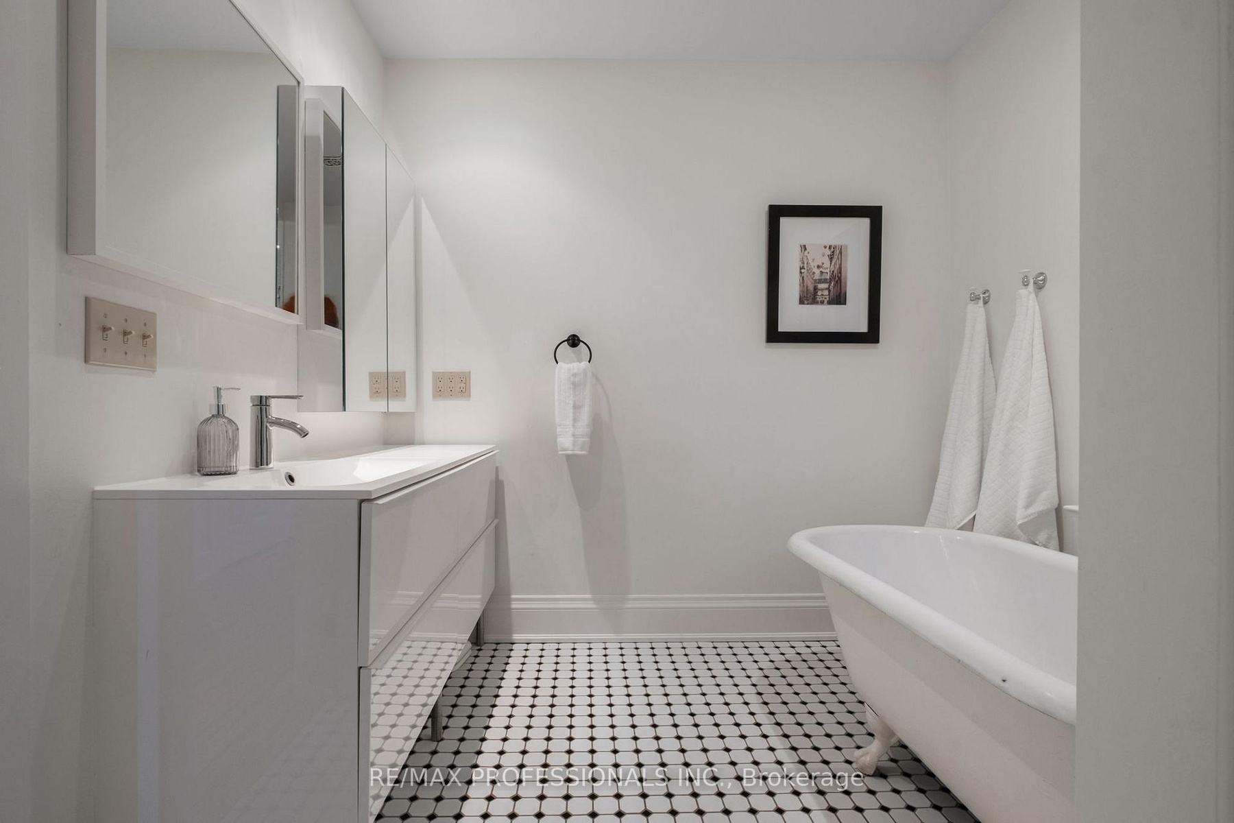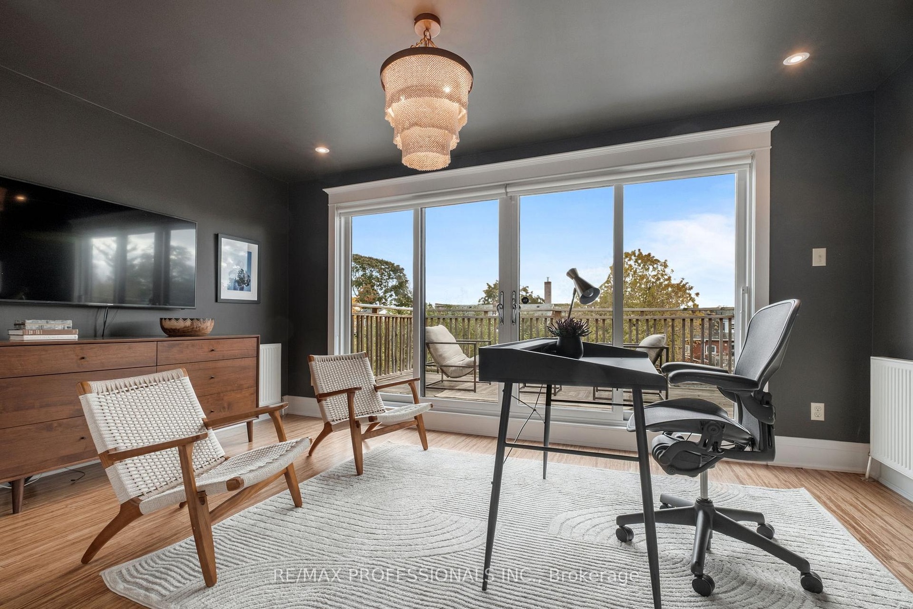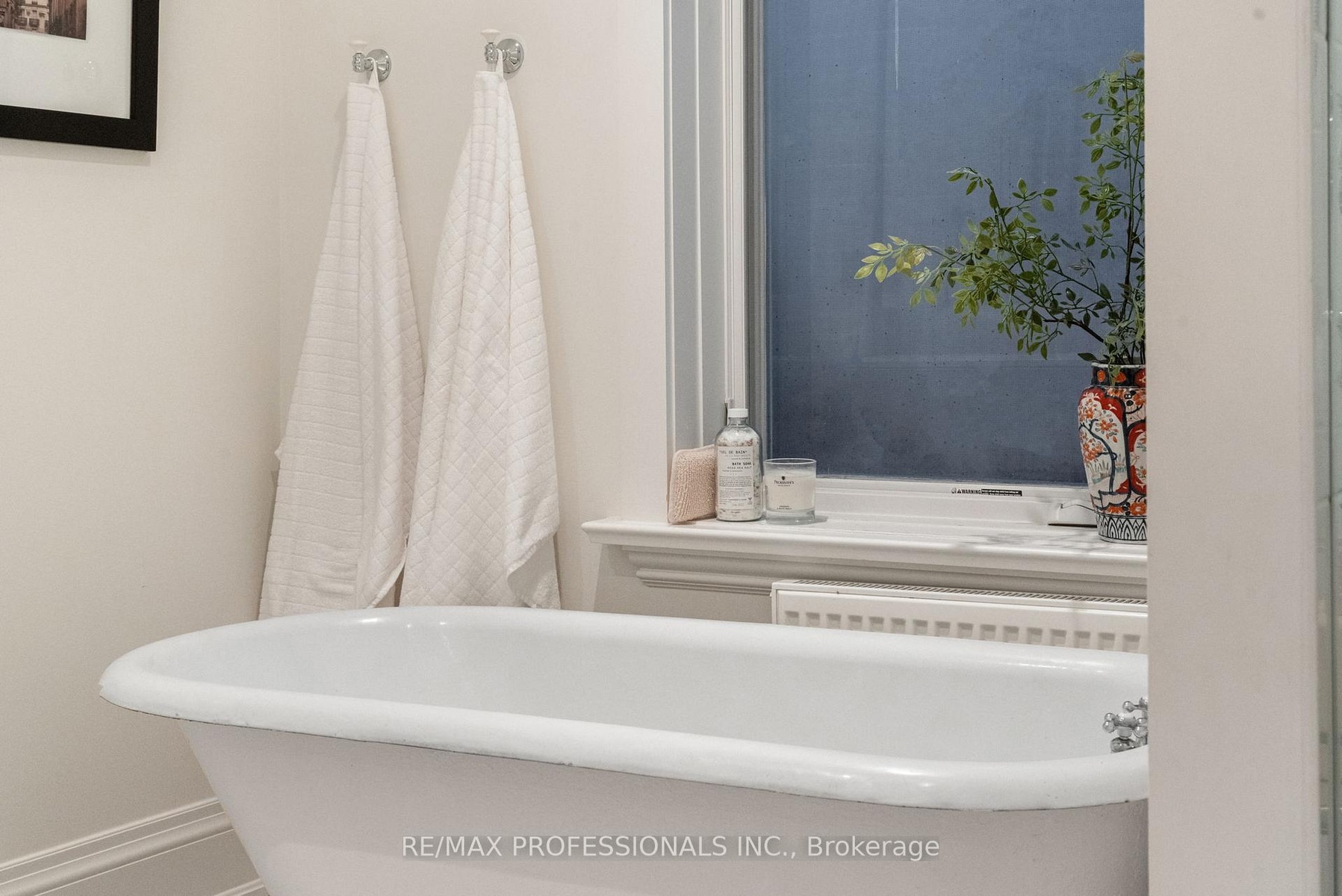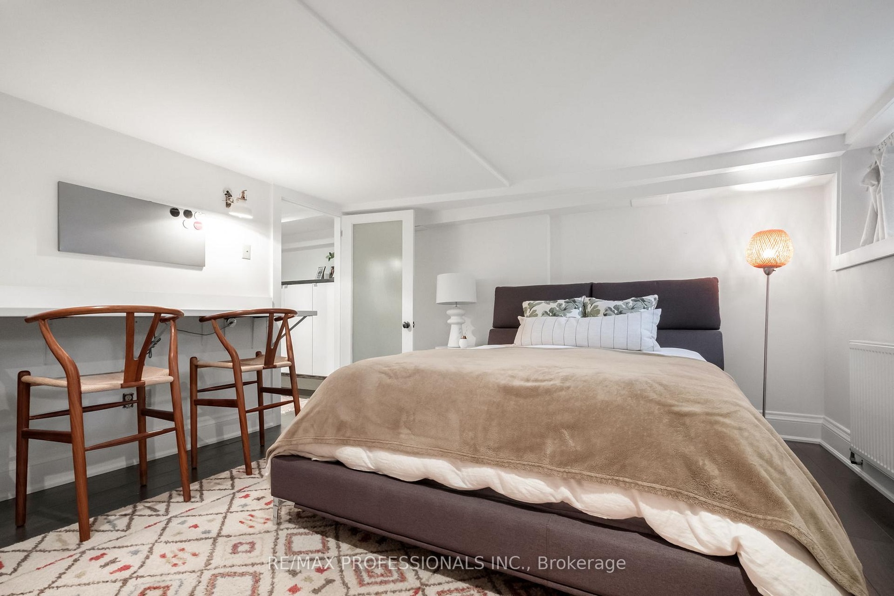 In the Heart of Roncesvalles Village, this masterfully renovated detached home blends designer luxury with everyday comfort. Step inside to a stunning open-concept main floor where custom plastered fluting, seamlessly integrated into the new bio-fuel fireplace, and elegant lighting create an elevated yet welcoming atmosphere. Designer cork wallpaper and custom window treatments add texture and warmth. The chef's kitchen shines with artisanal tile backsplash, refaced cabinetry, custom fluting details, a custom built pantry, high-end stainless appliances, and a peninsula with seating-perfect for casual dining or entertaining in style. The second floor offers two spacious bedrooms, convenient laundry, and a spa-inspired 4-piece bath with claw-foot tub and separate glass shower. Upstairs, the third floor hosts two additional bedrooms, including a luxurious prime suite with designer wallpaper, custom window treatments, a walk-through closet, and California Closet wardrobe, all connected to a large semi-ensuite 4-piece bath. The second bedroom/office features floor-to-ceiling glass doors opening to a private deck overlooking the backyard and downtown skyline, flooding the space with natural light. The fully finished basement adds a versatile recreation area and guest bedroom/den, plus a spacious 3-piece bath, custom built-in cupboards, and extra storage room-ideal for family, guests, or a home gym. Outside, enjoy a private backyard oasis with gas BBQ line and a rare double-car garage with double doors accessing the backyard, ample storage and lane access, Recent upgrades include a new owned tankless water heater, AC/heat pumps, sump pump with battery backup, and 2024exterior parging. Professionally remodeled since 2021, this home combines timeless craftsmanship, modern comfort, and the best of Roncesvalles living-steps to schools, TTC, High Park, shops, and cafés.