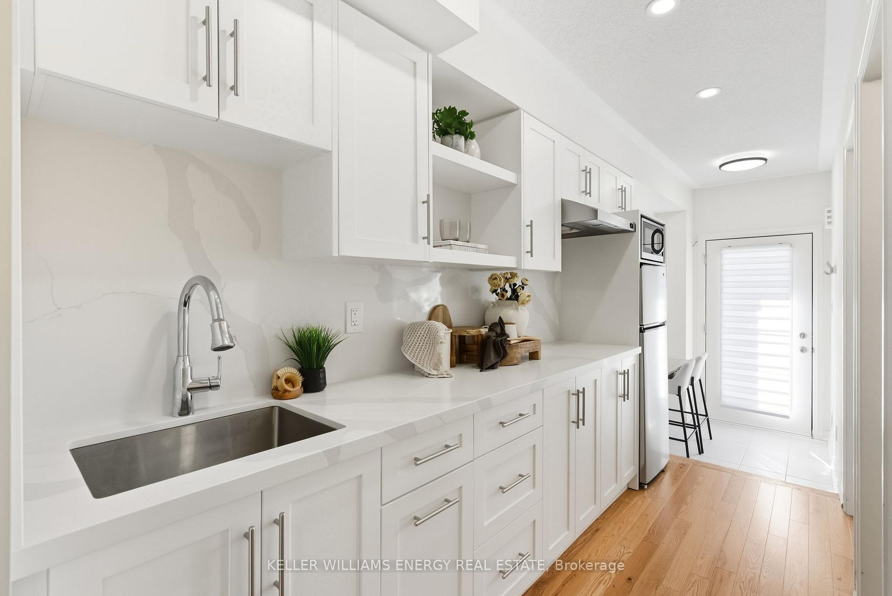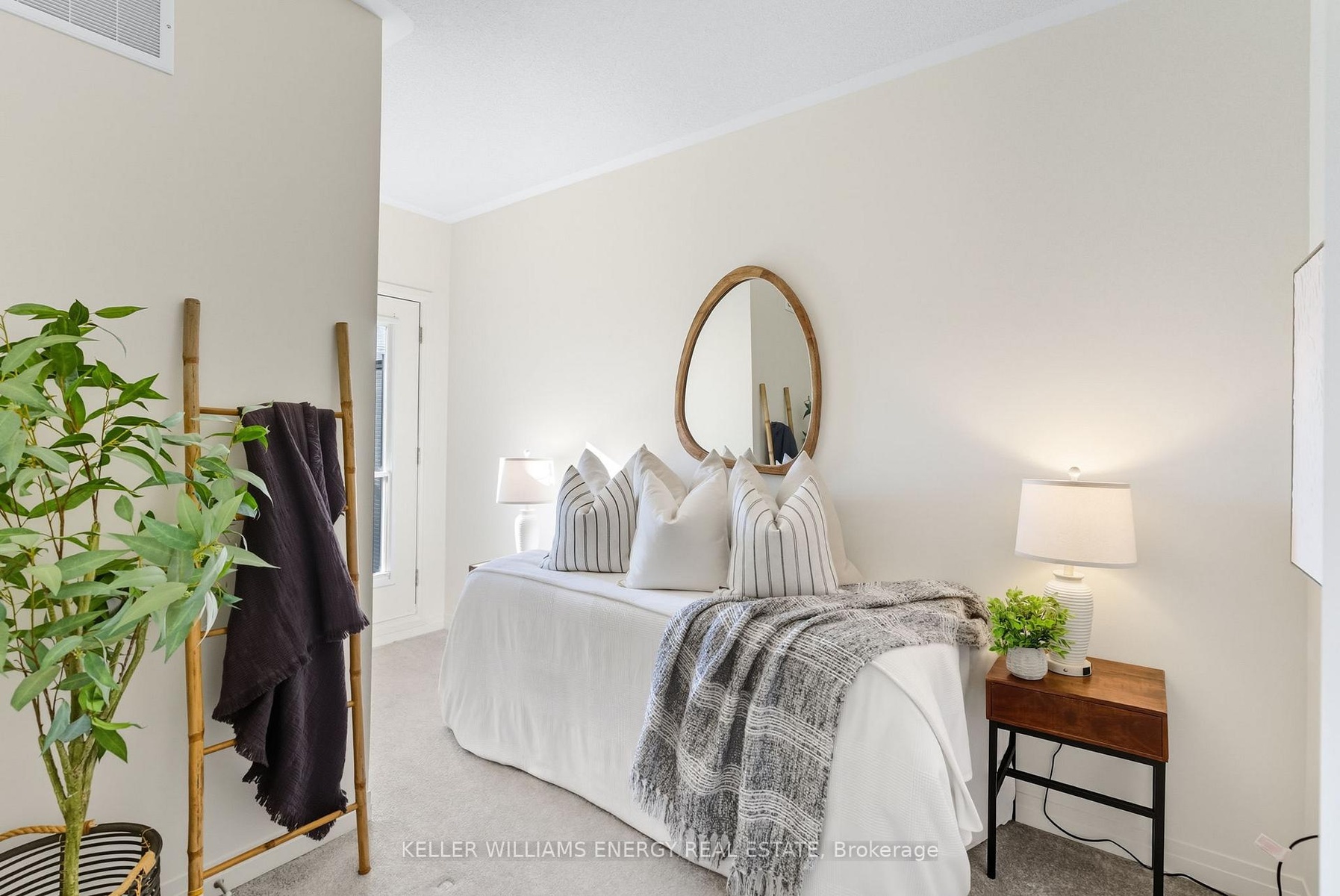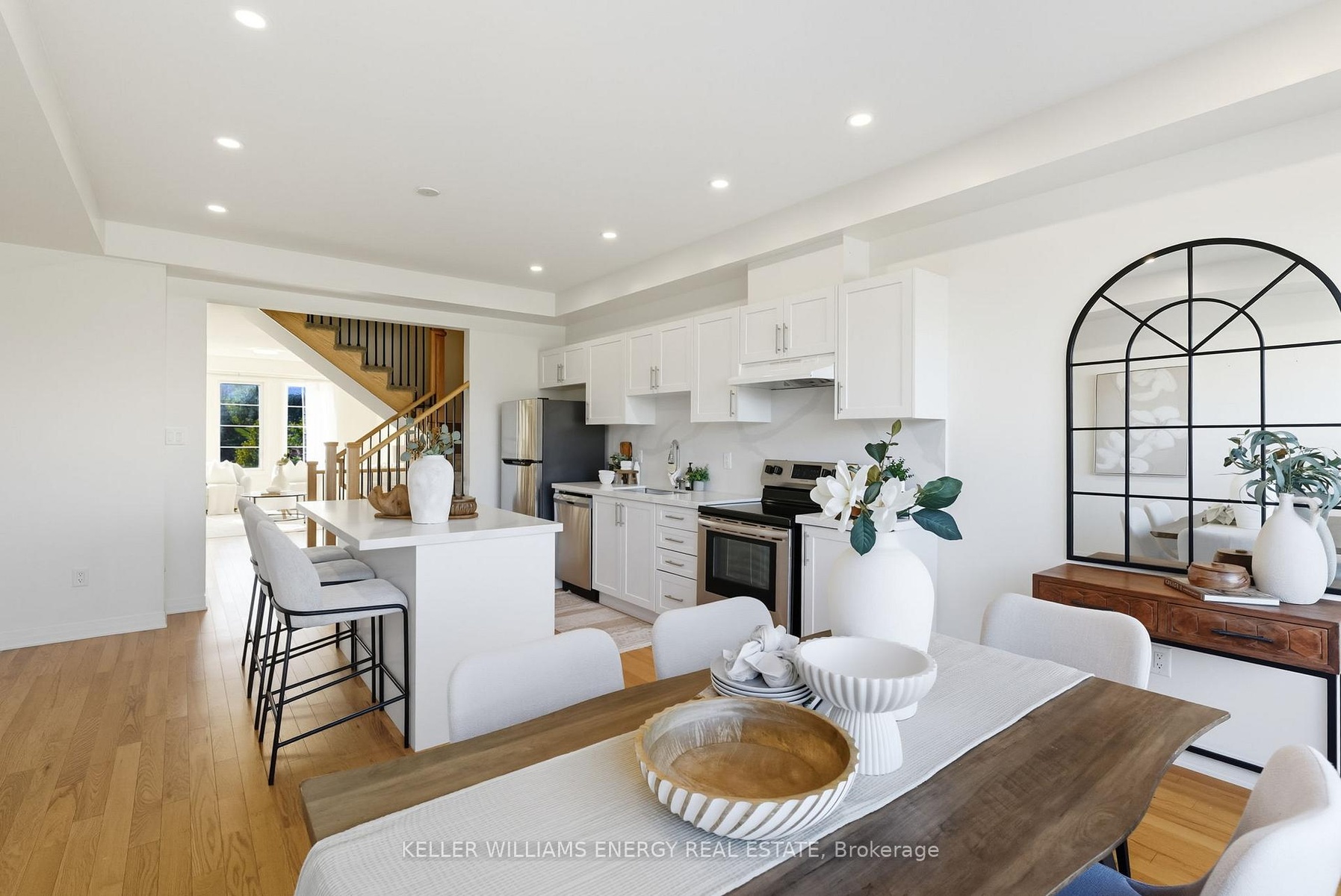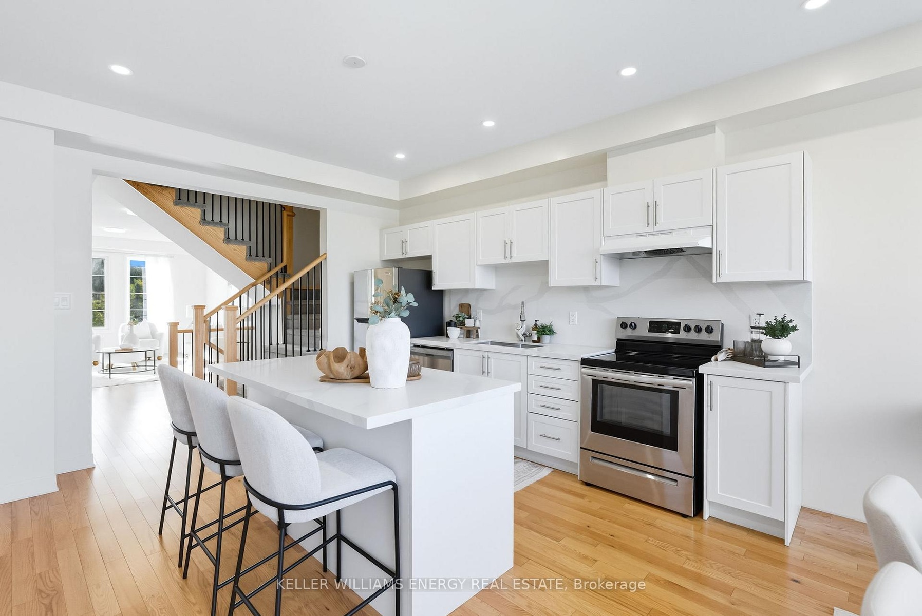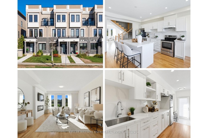 Welcome to this versatile 4-bedroom, 3-bathroom townhouse in one of Bowmanville's most desirable communities, perfect for end-users, investors, and multi-generational families alike.The ground level offers a self-contained unit with its own private entrance, complete with a bedroom, full bathroom, laundry, and a modern kitchenette featuring quartz countertops. Already licensed for Airbnb and averaging $1,900/month, this space provides excellent income potential or the ideal in-law suite.Upstairs, the bright and open main level is filled with natural light and 9-foot ceilings. The modern kitchen boasts quartz countertops, stainless steel appliances, a large island, pot lights, and a walkout to a balcony overlooking a peaceful parkette. The living area features large windows and a cozy fireplace, creating a welcoming space to entertain or unwind.The upper level offers three generously sized bedrooms with soaring ceilings and two full bathrooms. The primary retreat includes a walk-in closet and a stylish 4-piece ensuite, while another bedroom enjoys its own private balcony.Additional highlights include an attached garage, a private driveway, and low POTL fees. A sought-after location near schools, shopping, and transit routes makes this property a smart choice for both living and investing.