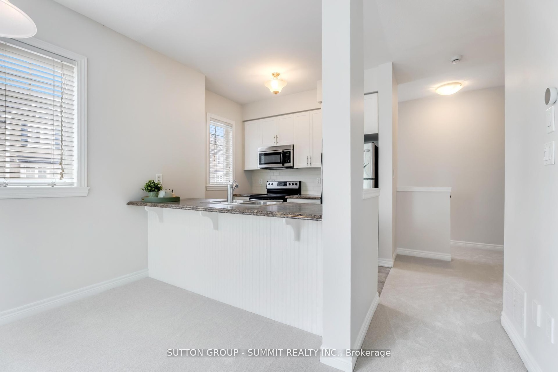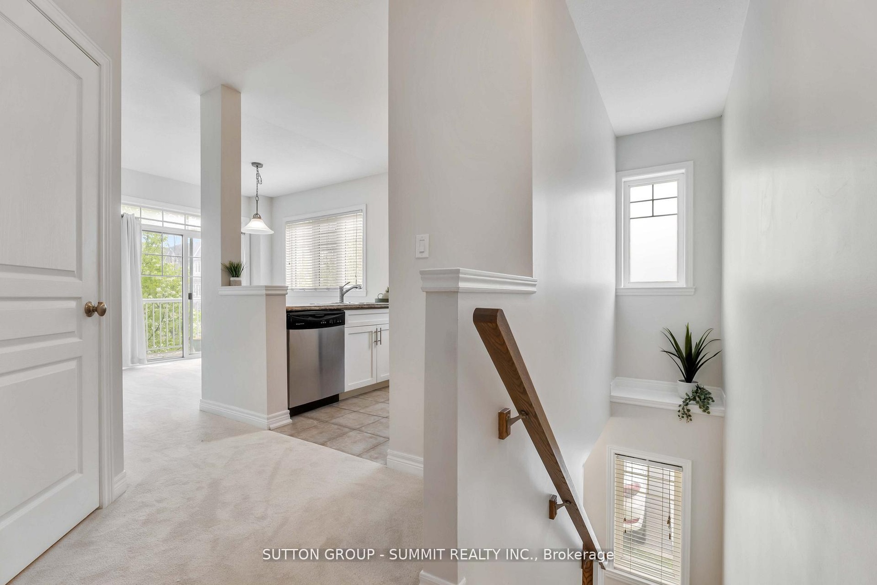 This spacious end-unit townhouse is located in a sought-after lakefront beach community.Offering 8 additional windows and lake views that truly set it apart from the rest. Step inside to a welcoming ground floor with a generous foyer, ample storage, and convenient inside access to the single-car garage. The second level is perfect for both relaxing and entertaining,featuring a sun-filled living room, a kitchen with a breakfast bar, and a dining area that opens to a balcony. Upstairs, you'll find three comfortable bedrooms and a 4-piece bathroom.Just steps to the beach boardwalk, you'll love tranquil lakeside living, morning strolls, and a strong sense of community. Enjoy ample visitor parking and easy highway access. Freshly painted and carpeted in 2025. No pets, no smokers. Credit check, employment letter, references. Tenant pays utilities. R.S.A.