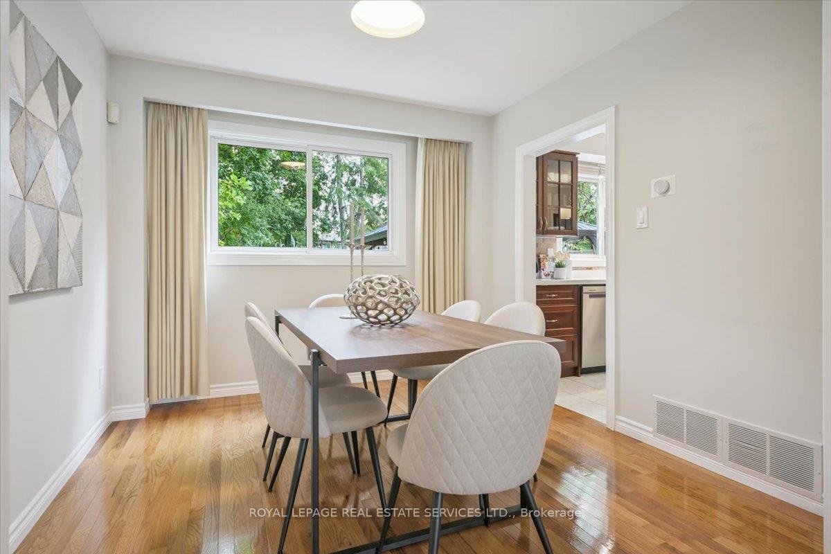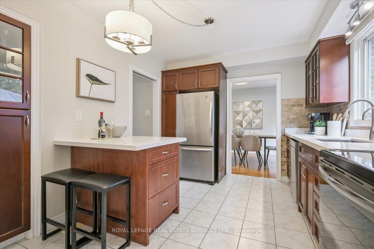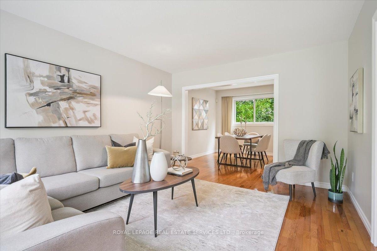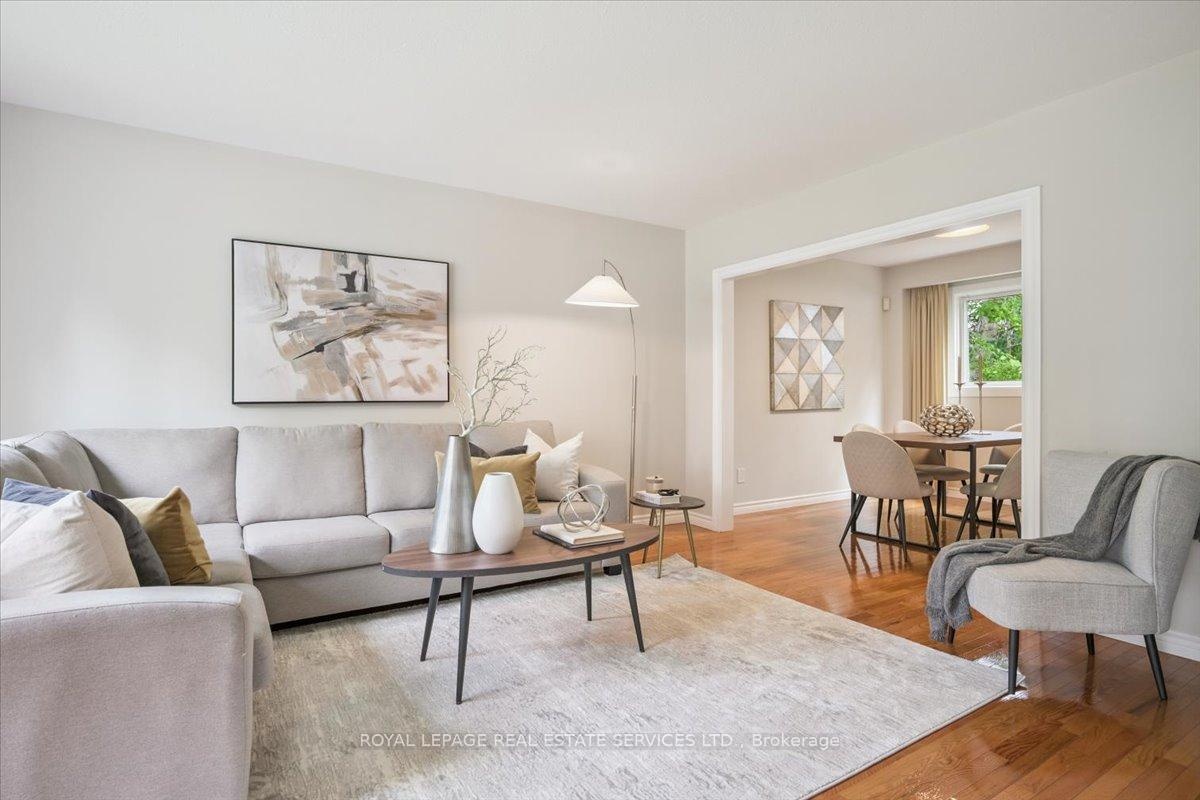 Discover this fantastic 4-bedroom, 3-bathroom home, offering over 2,500 sq. ft. of total living space in the family-friendly and highly sought-after neighbourhood of Sheridan Homelands. Nestled on a private, 67 by 120-foot treed lot, this property boasts exceptional curb appeal and an unbeatable location. Step inside, where classic charm meets modern updates on the bright main floor. Gleaming hardwood floors flow from the spacious living and dining areas into a beautifully renovated kitchen-the true heart of the home. This stunning space features quartz countertops, a peninsula quartz island, stainless steel appliances, and a walkout to the backyard. The cozy family room, complete with a wood-burning fireplace and French doors, opens onto a large stone patio, creating a seamless indoor-outdoor flow perfect for entertaining. Upstairs, the hardwood continues throughout four generous bedrooms. The primary suite is a private retreat offering a double closet and a 3-piece ensuite. A well-appointed 4-piece main bathroom serves the 3 additional spacious bedrooms. The finished basement adds valuable living space with a large recreation room, a separate laundry room, and ample storage. Offering exceptional privacy, the substantial, fully-enclosed backyard presents a canvas for recreation and relaxation. Enjoy an active lifestyle with Thornlodge Park, Sheridan Tennis Club, pickleball courts, and the South Common Recreation Centre all just a short walk away. Benefit from a premium location neighbouring Oakville, with easy access to the QEW and 403. You are just moments from the Clarkson GO Station, top-rated schools, the University of Toronto (UTM), shopping, and the Port Credit Marina. This home is thoughtfully designed for a comfortable family living in a truly exceptional community.