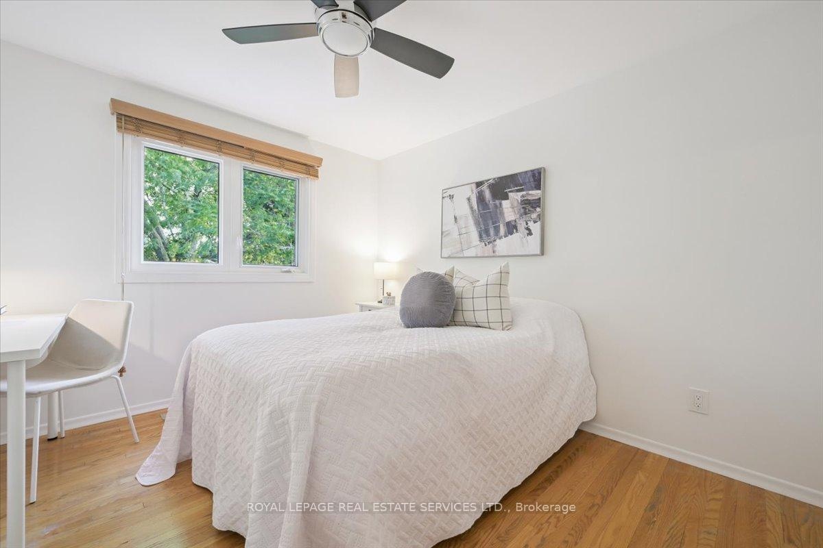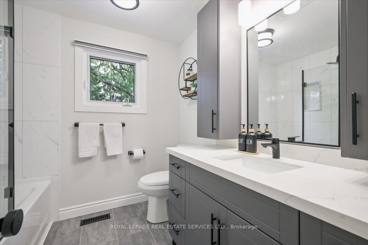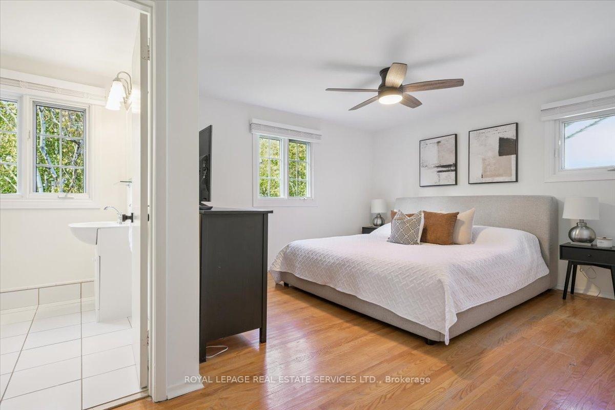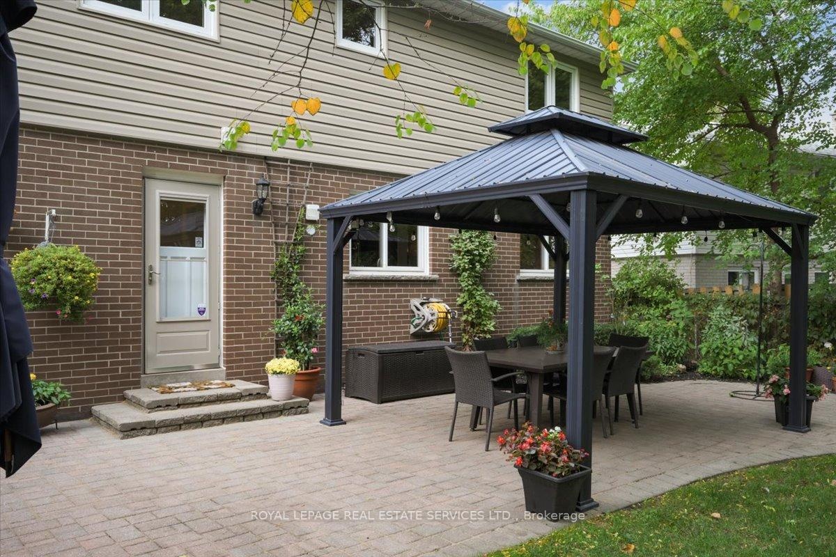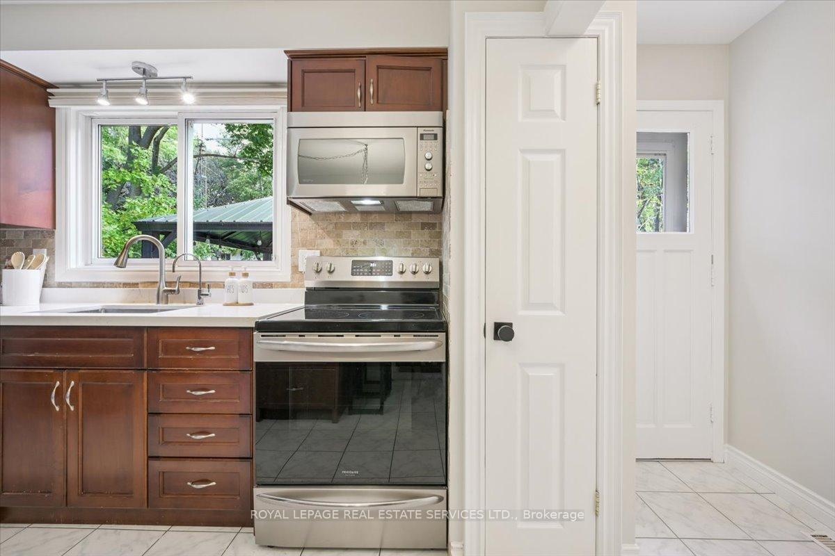 Discover this fantastic 4-bedroom, 3-bathroom home, offering over 2,500 sq. ft. of total living space in the family-friendly and highly sought-after neighbourhood of Sheridan Homelands. Nestled on a private, 67 by 120-foot treed lot, this property boasts exceptional curb appeal and an unbeatable location. Step inside, where classic charm meets modern updates on the bright main floor. Gleaming hardwood floors flow from the spacious living and dining areas into a beautifully renovated kitchen-the true heart of the home. This stunning space features quartz countertops, a peninsula quartz island, stainless steel appliances, and a walkout to the backyard. The cozy family room, complete with a wood-burning fireplace and French doors, opens onto a large stone patio, creating a seamless indoor-outdoor flow perfect for entertaining. Upstairs, the hardwood continues throughout four generous bedrooms. The primary suite is a private retreat offering a double closet and a 3-piece ensuite. A well-appointed 4-piece main bathroom serves the 3 additional spacious bedrooms. The finished basement adds valuable living space with a large recreation room, a separate laundry room, and ample storage. Offering exceptional privacy, the substantial, fully-enclosed backyard presents a canvas for recreation and relaxation. Enjoy an active lifestyle with Thornlodge Park, Sheridan Tennis Club, pickleball courts, and the South Common Recreation Centre all just a short walk away. Benefit from a premium location neighbouring Oakville, with easy access to the QEW and 403. You are just moments from the Clarkson GO Station, top-rated schools, the University of Toronto (UTM), shopping, and the Port Credit Marina. This home is thoughtfully designed for a comfortable family living in a truly exceptional community.
