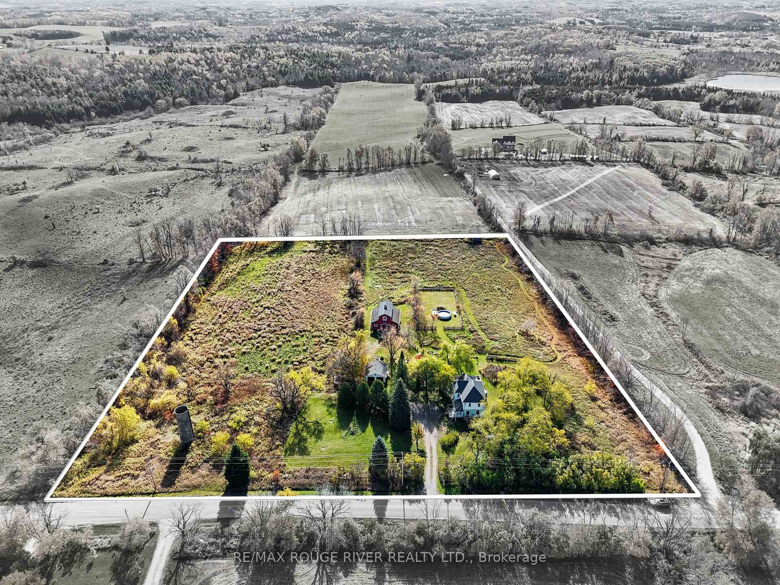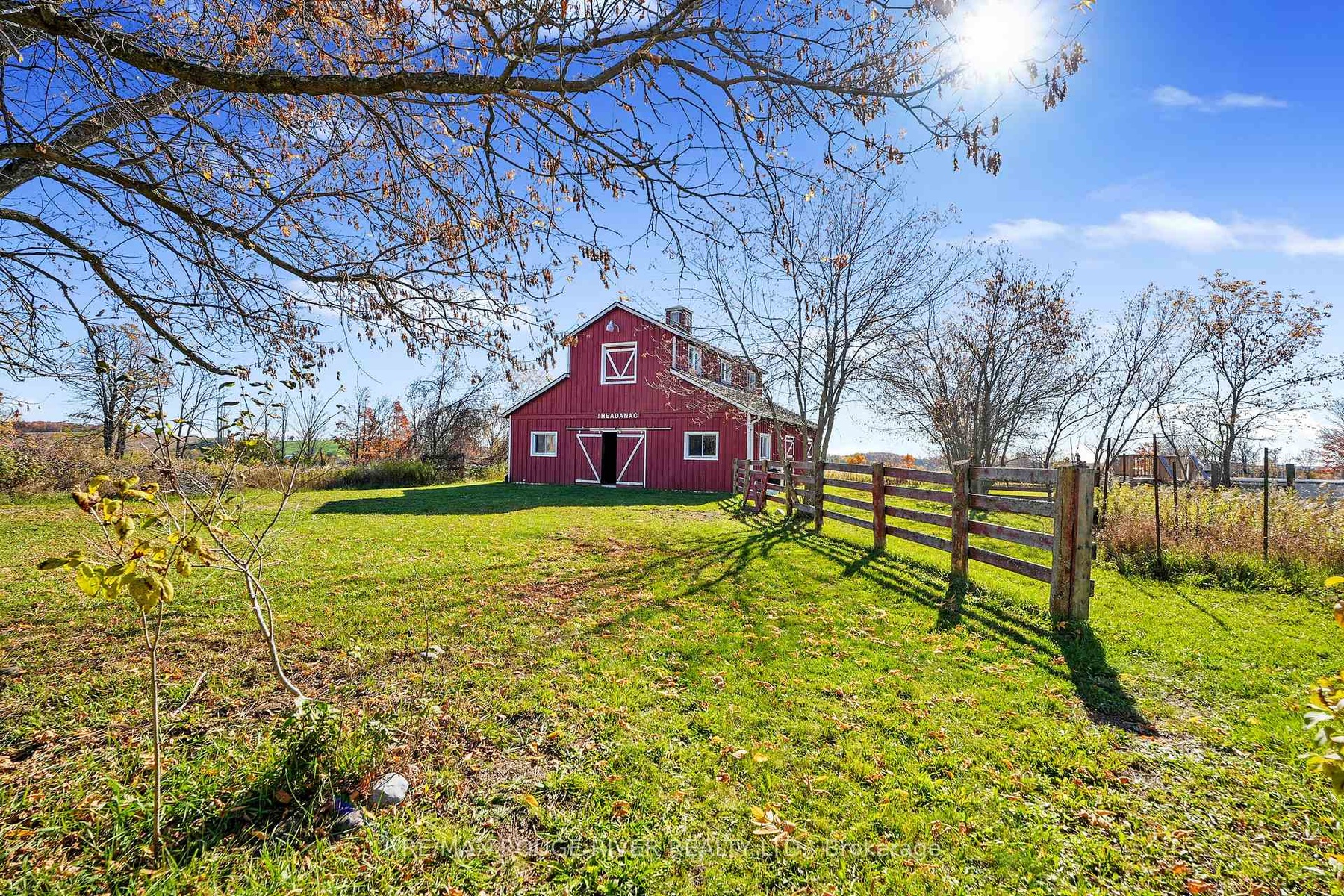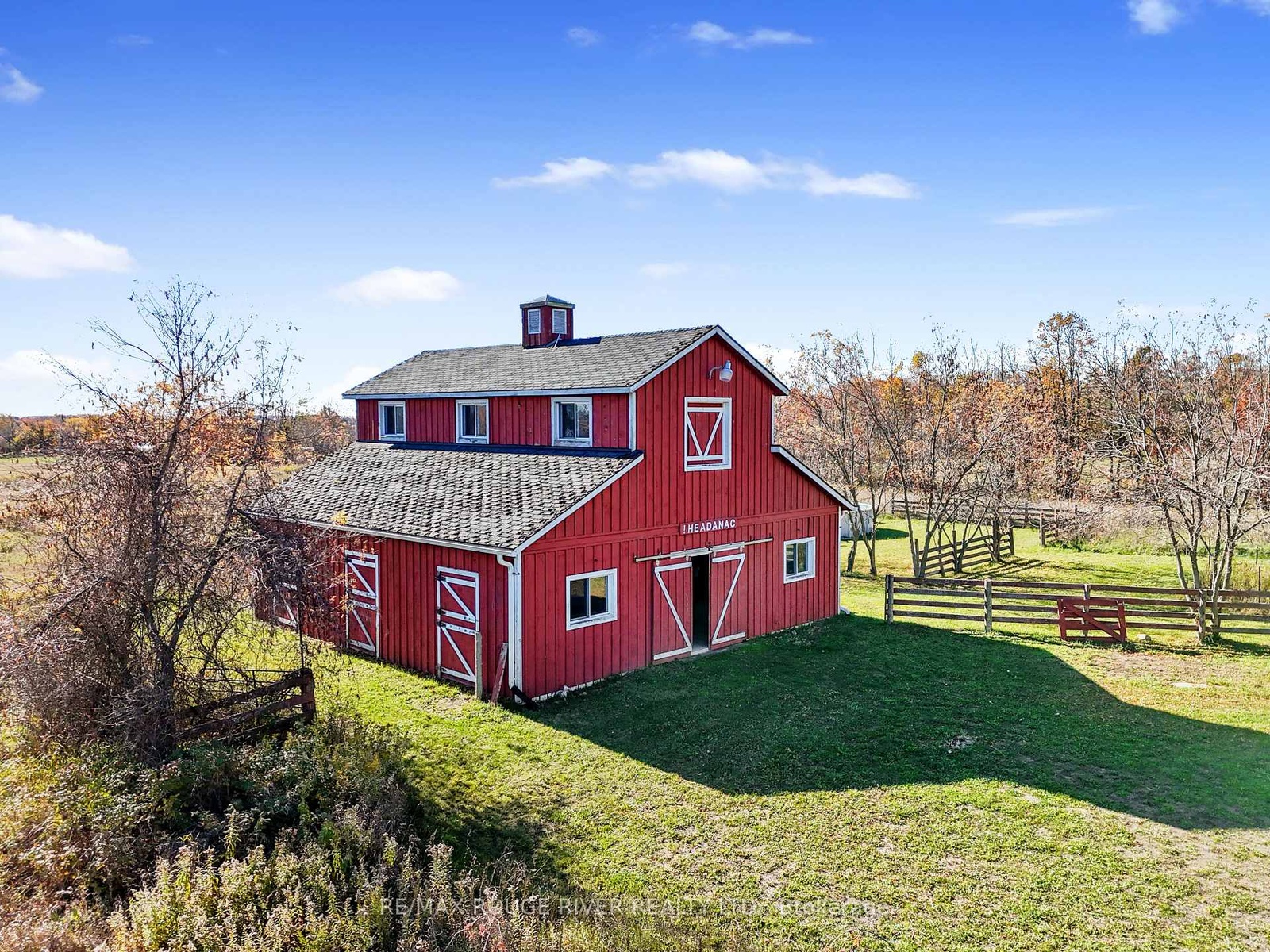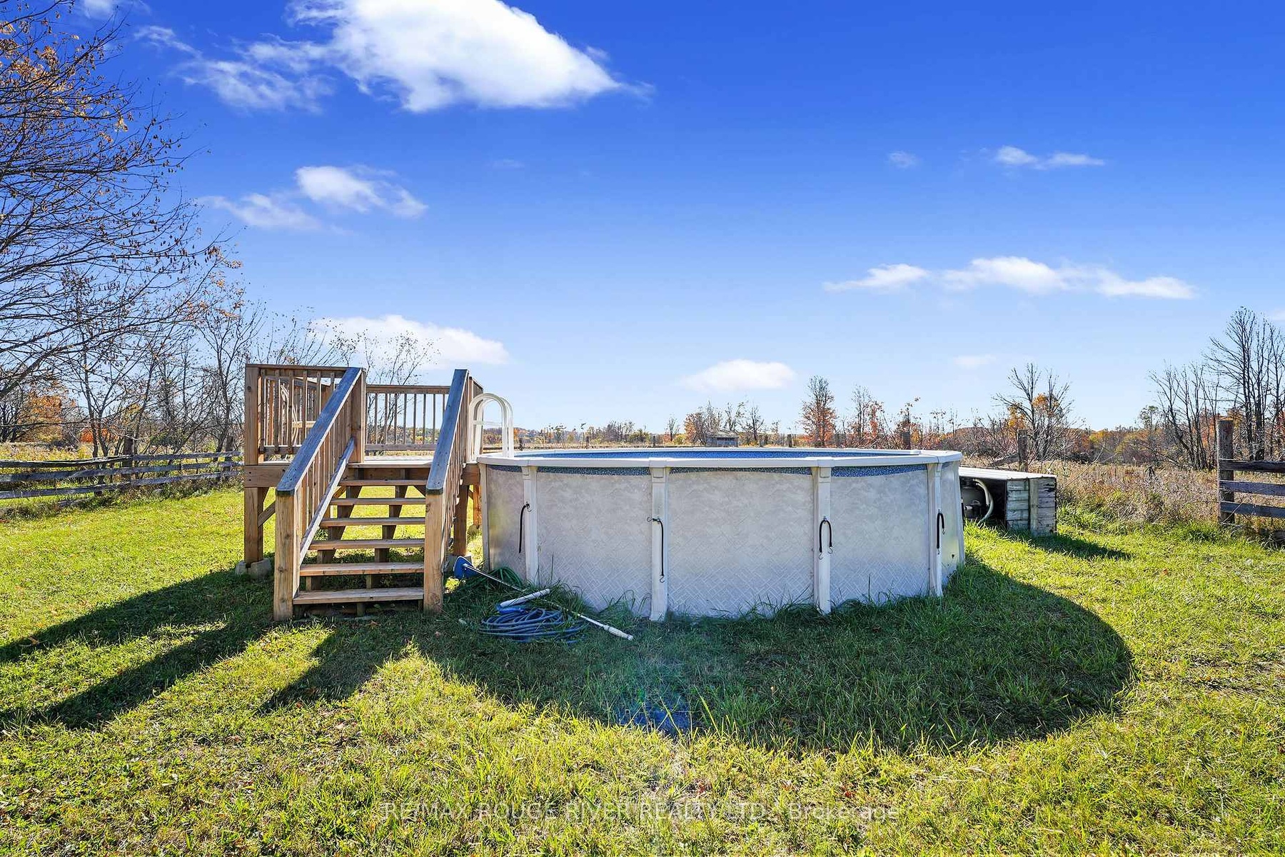 Discover your ideal peaceful retreat on this enchanting 7+ acre hobby farm, where the beauty of nature and tranquility come together to create the perfect homestead. This charming century-old farmhouse features 4 spacious bedrooms and 2 baths, making it an inviting sanctuary for families or those seeking a serene lifestyle. The property boasts a stunning 5-stall barn w/hydro + water, a detached 2-car garage, a recently installed above-ground pool, a quaint gazebo, and an additional outbuilding for wood storage. Farmhouse is topped with a durable steel roof, recently installed to provide lasting peace of mind. Step inside and be welcomed by the cozy screened-in porch, leading you into the beautifully refreshed eat-in kitchen designed for both comfort and functionality. A convenient combined bathroom/laundry area is located just off the kitchen, adding to the home's practicality. Immerse yourself in the spacious family room, filled with natural light and featuring impressive vaulted ceilings, double sliding doors that open to a large deck, a wood-burning fireplace, and breathtaking views of the sprawling landscape. The original farmhouse flooring and elegant architectural arches grace the large dining room and living area, boasting 9-foot ceilings. Ascend the grand solid wood staircase to find 4 sizeable bedrooms, alongside a luxurious 3-piece bathroom complete with a deep soaker tub. Venture up just three steps to discover a magnificent attic space with a tall vaulted ceiling-an ideal bonus area with endless possibilities, spanning approximately 395 square feet. Conveniently located less than 10 minutes from Warkworth, moments to local schools, just an hour from Durham Region, and mere minutes from essential amenities. This remarkable property is a rare gem awaiting your personal touch. Embrace the serene country lifestyle you've always dreamed of!