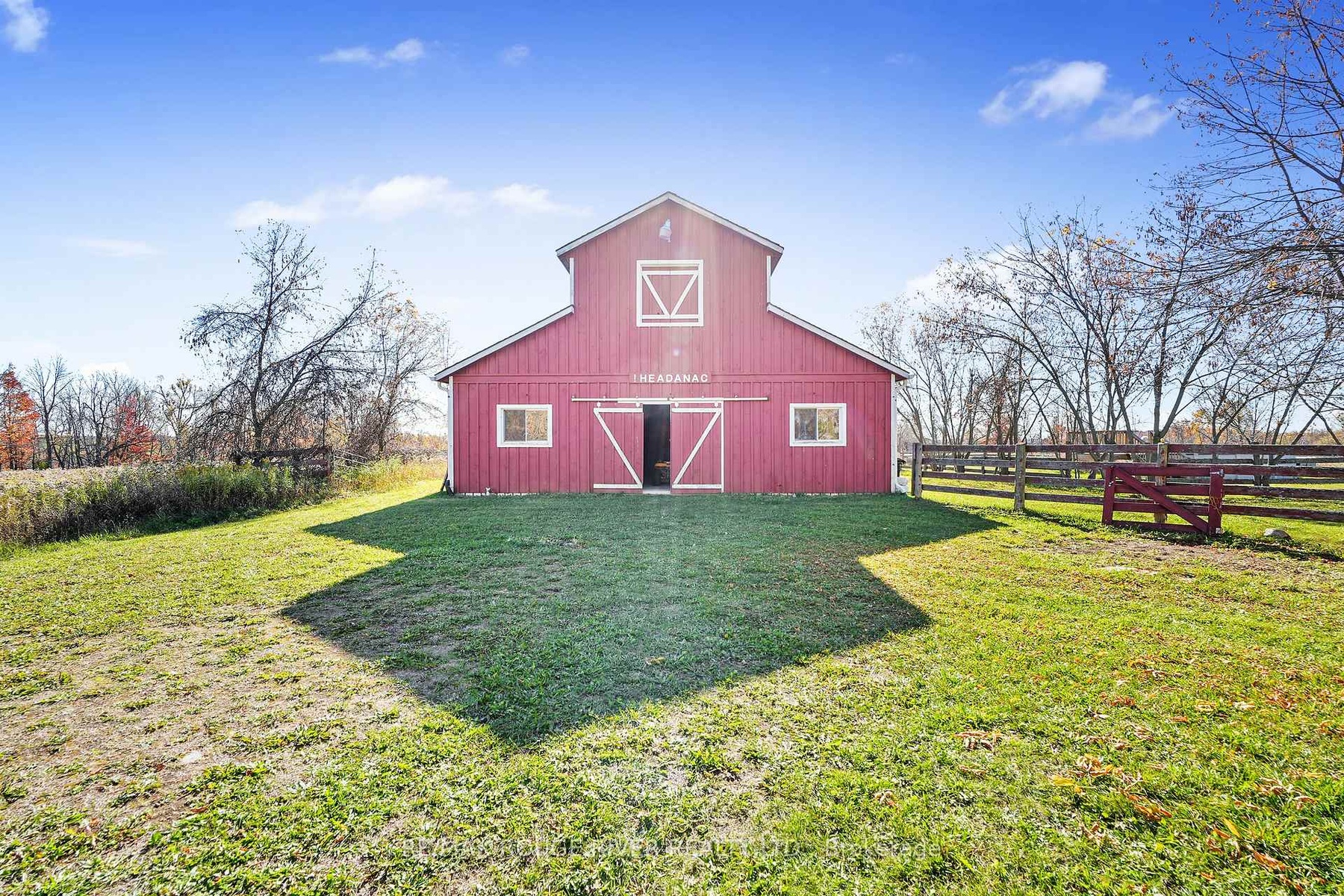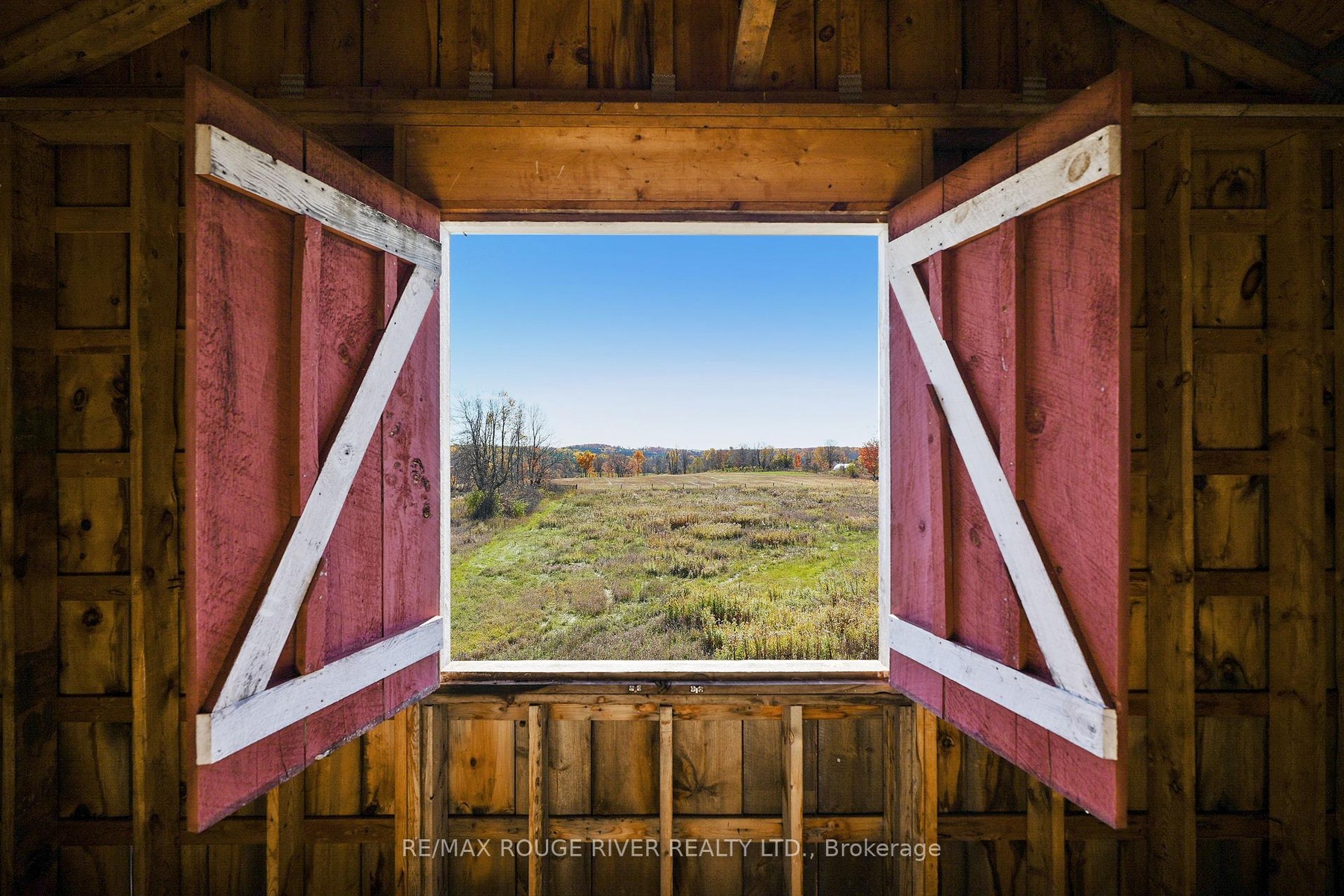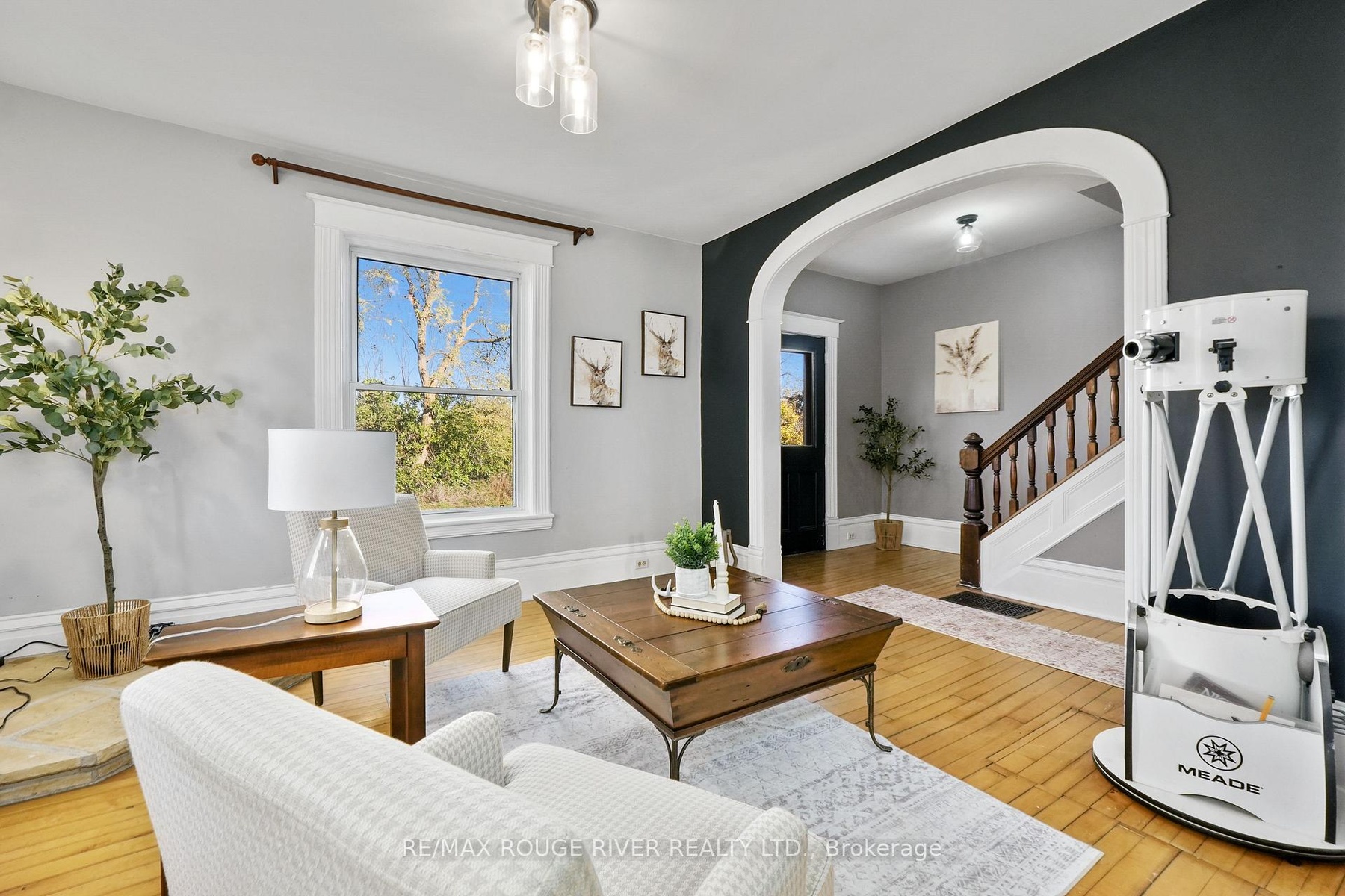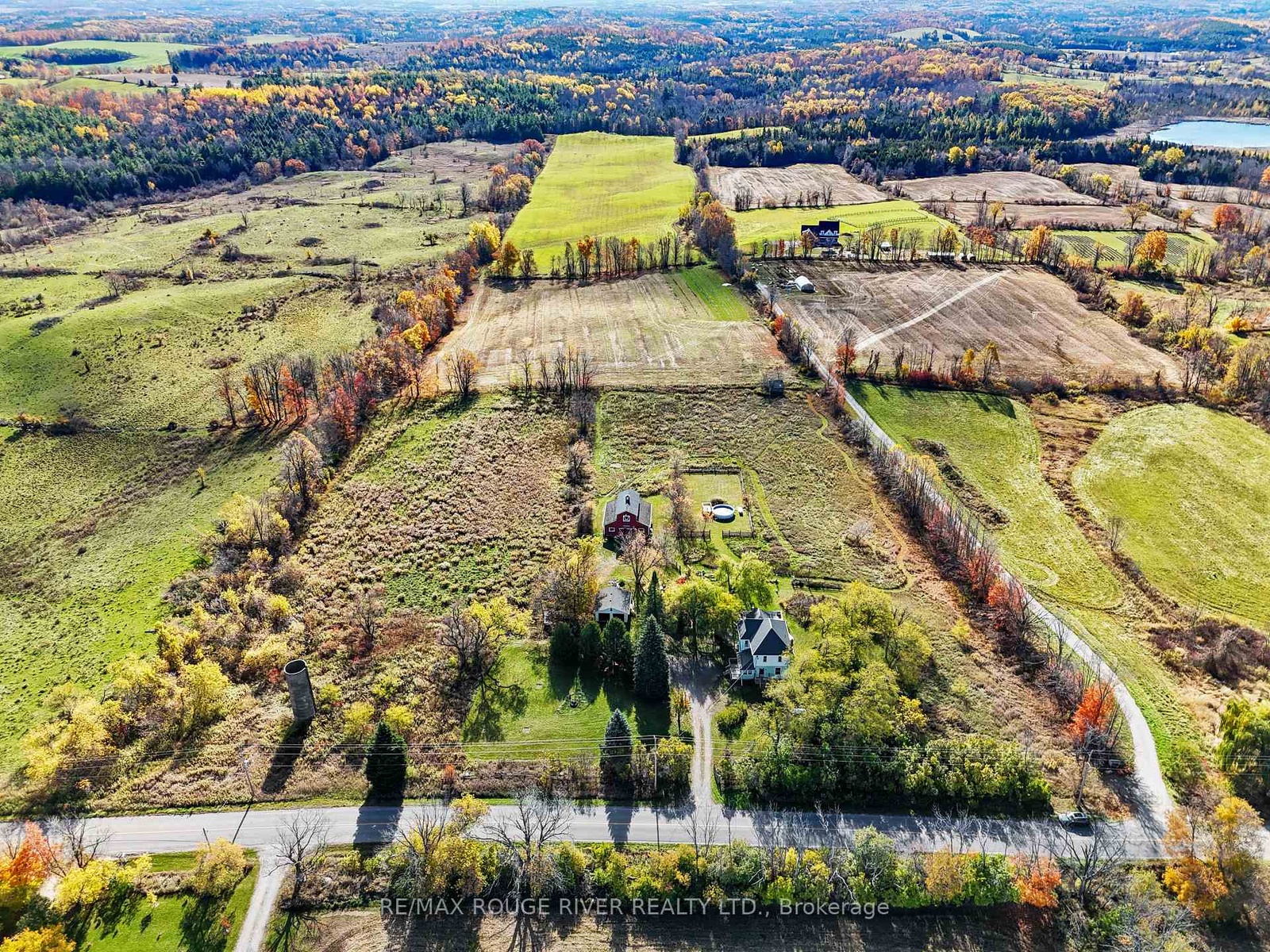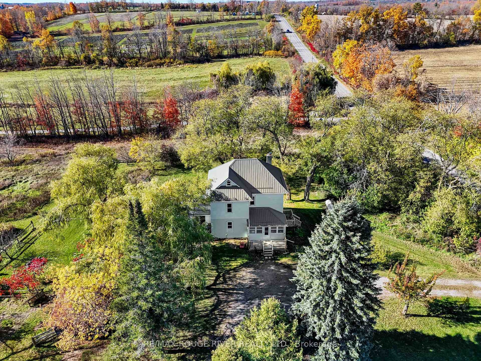 Discover your ideal peaceful retreat on this enchanting 7+ acre hobby farm, where the beauty of nature and tranquility come together to create the perfect homestead. This charming century-old farmhouse features 4 spacious bedrooms and 2 baths, making it an inviting sanctuary for families or those seeking a serene lifestyle. The property boasts a stunning 5-stall barn w/hydro + water, a detached 2-car garage, a recently installed above-ground pool, a quaint gazebo, and an additional outbuilding for wood storage. Farmhouse is topped with a durable steel roof, recently installed to provide lasting peace of mind. Step inside and be welcomed by the cozy screened-in porch, leading you into the beautifully refreshed eat-in kitchen designed for both comfort and functionality. A convenient combined bathroom/laundry area is located just off the kitchen, adding to the home's practicality. Immerse yourself in the spacious family room, filled with natural light and featuring impressive vaulted ceilings, double sliding doors that open to a large deck, a wood-burning fireplace, and breathtaking views of the sprawling landscape. The original farmhouse flooring and elegant architectural arches grace the large dining room and living area, boasting 9-foot ceilings. Ascend the grand solid wood staircase to find 4 sizeable bedrooms, alongside a luxurious 3-piece bathroom complete with a deep soaker tub. Venture up just three steps to discover a magnificent attic space with a tall vaulted ceiling-an ideal bonus area with endless possibilities, spanning approximately 395 square feet. Conveniently located less than 10 minutes from Warkworth, moments to local schools, just an hour from Durham Region, and mere minutes from essential amenities. This remarkable property is a rare gem awaiting your personal touch. Embrace the serene country lifestyle you've always dreamed of!
