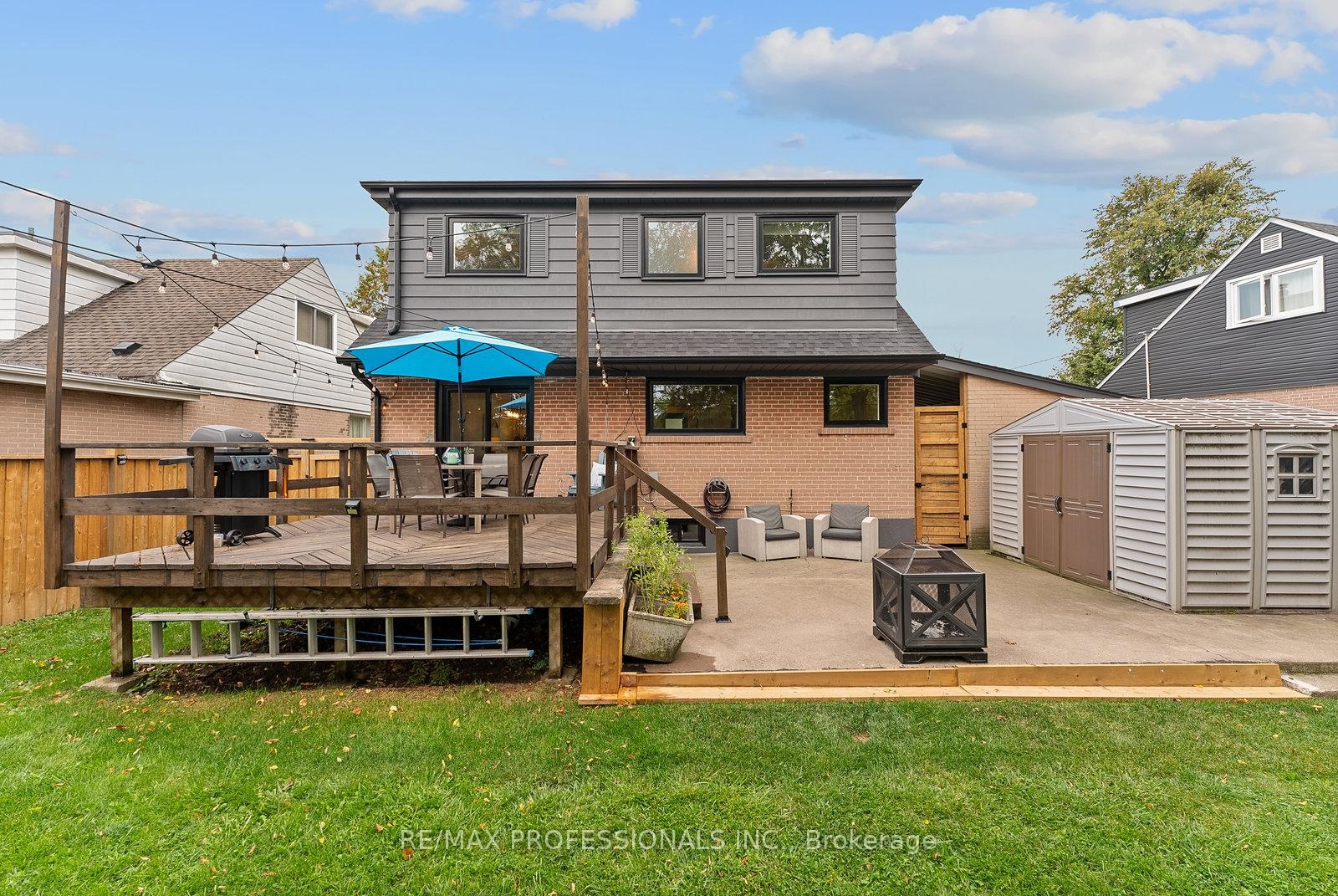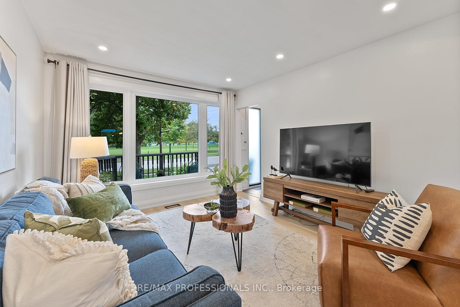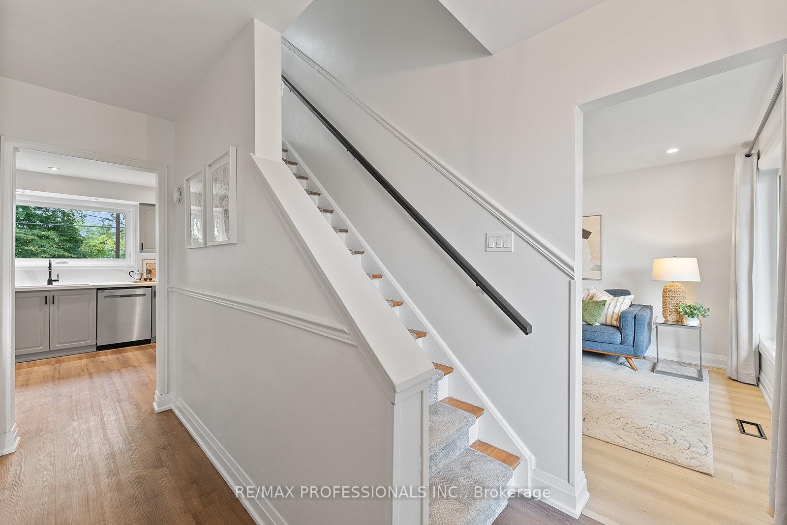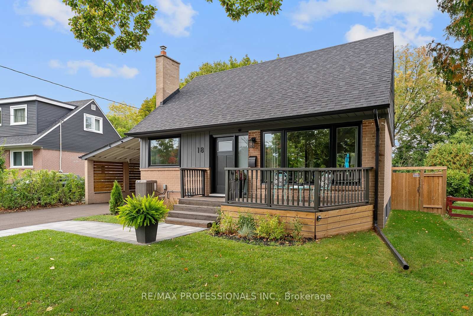 Welcome to 18 Lavington Drive, a beautifully renovated 1.5-storey detached brick home in Etobicoke's Martin Grove Gardens community. Set on a 52 x 108 lot with a charming front porch and great curb appeal, this turnkey home showcases modern upgrades, a functional design, and a sought-after setting directly across from Martingrove Gardens Park. The main floor offers a foyer with coat closet, a bright living room with wide-plank floors, pot lights and a large window facing the park, a dining room with walkout to the backyard, and a renovated kitchen with quartz counters, backsplash, stainless steel appliances, pot lights, double sink & picture window overlooking the yard, plus an updated powder room and a versatile bedroom. Upstairs are two generous bedrooms with walk-in closets, office nooks and large windows, along with a 3-piece bath featuring a glass shower and modern finishes. The lower level includes a spacious recreation room with panelling, broadloom and track lighting, plus a combined laundry/storage area. The backyard is ideal for family living and entertaining, featuring an oversized deck, mature trees, large lawn, concrete patio, new fence (2023), shed and gas BBQ hookup. A carport and freshly repaved private driveway offer parking for three vehicles. Updates include new windows/doors (2025), stylish flooring with Aria vents, new baseboards, upgraded plumbing/electrical, a smart thermostat & more! Perfectly situated across from the revitalized Martingrove Gardens Park with playground, splash pad, tennis, pickleball and baseball areas. Close to local favourites like Montesanto Bakery and Martin Grove Fish & Chips, Westway Centre, Costco, West Deane Park, Weston Golf Club and top schools. Easy access to TTC, Highways 401 & 427 and Pearson Airport! With its modern updates and coveted park-side location, 18 Lavington Dr is move-in ready and offers exceptional value in a mature, family-friendly Etobicoke neighbourhood! OPEN HOUSE SAT Nov 1st 2-4PM!!!