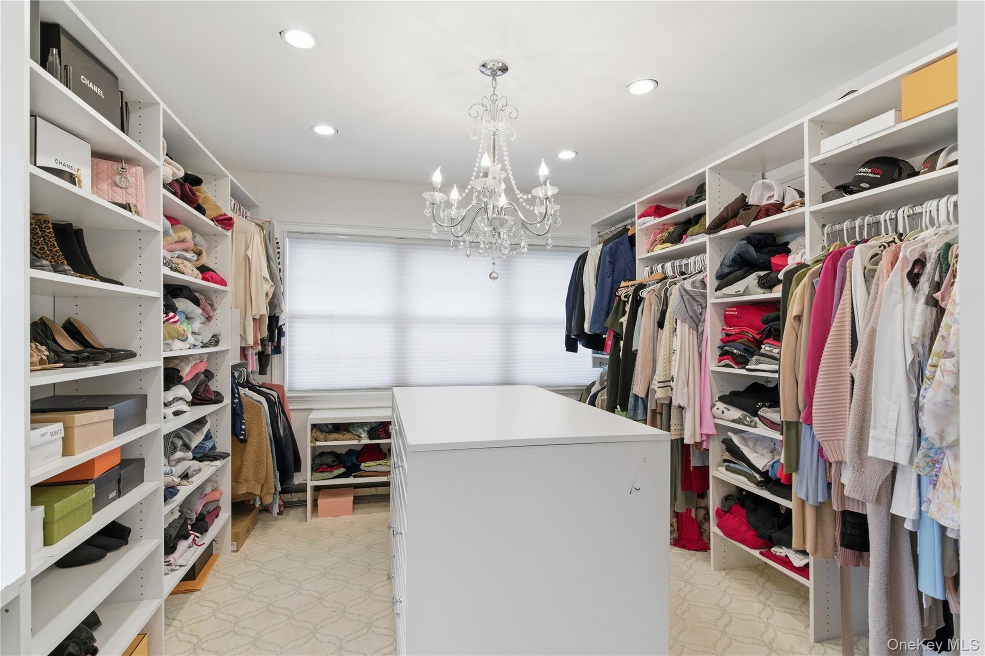- Spacious closet with a chandelier