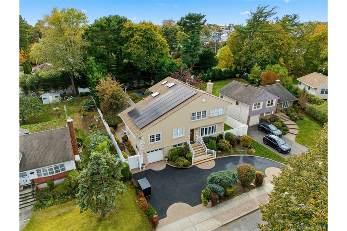 North Syosset Gem! Entertainer’s Paradise with property & pool on a fully fenced .30-acre lot surrounded by mature trees! The ultimate blend of privacy, luxury & location! Over 3,200 square feet, this light & bright home features 6 bedrooms, high ceilings, newly finished hardwood floors, an L-shaped living/dining room, an eat-in Chef’s Kitchen with room for a dining table, cherry cabinetry, peninsula seating, stainless steel appliances including a Wolf stove & direct access to the entertainer’s deck overlooking the sprawling grounds! The grand primary suite spans approximately 30 feet with a lounge area, additional bedroom or home office space, an 18 foot custom walk-in closet, spa bath with steam shower & soaking tub & a Juliette balcony overlooking the expansive property. Four additional bedrooms including a junior en-suite, are complemented by a total of 3.5 baths including one with a dry sauna space. The finished lower level provides the ultimate recreation space or a private gym. Outdoors, enjoy a private resort setting with a new heated saltwater in-ground pool, Jacuzzi hot tub, sports court & playground. A rare opportunity to live, entertain, and unwind in complete tranquility while remaining close to every convenience! Syosset Schools & South Grove Elementary.